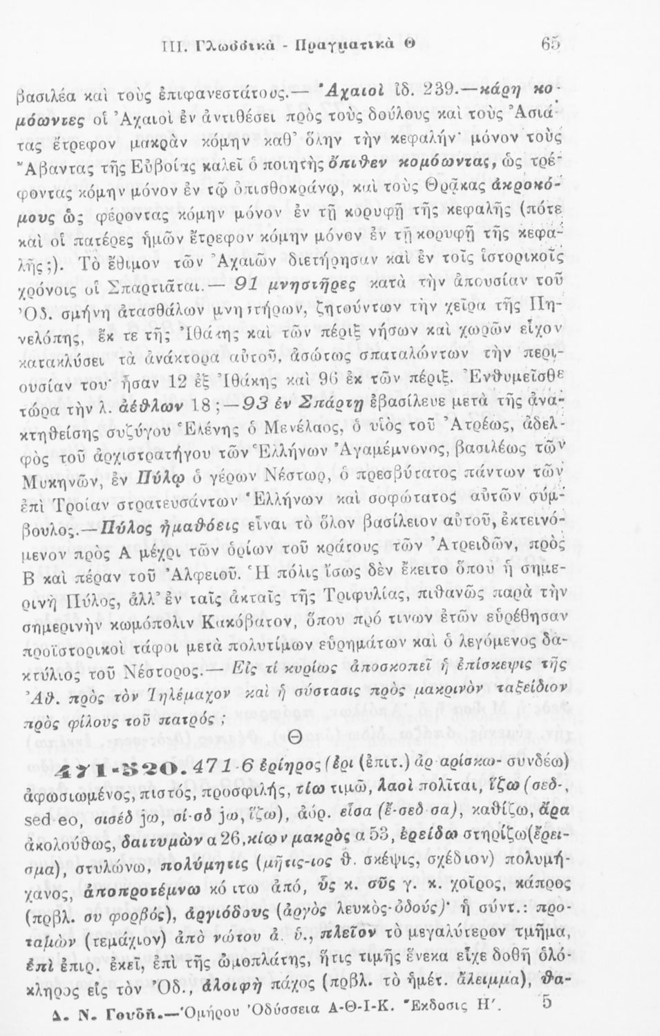 Όμηρος, Δημ. Ν. Γουδής (σχόλια)