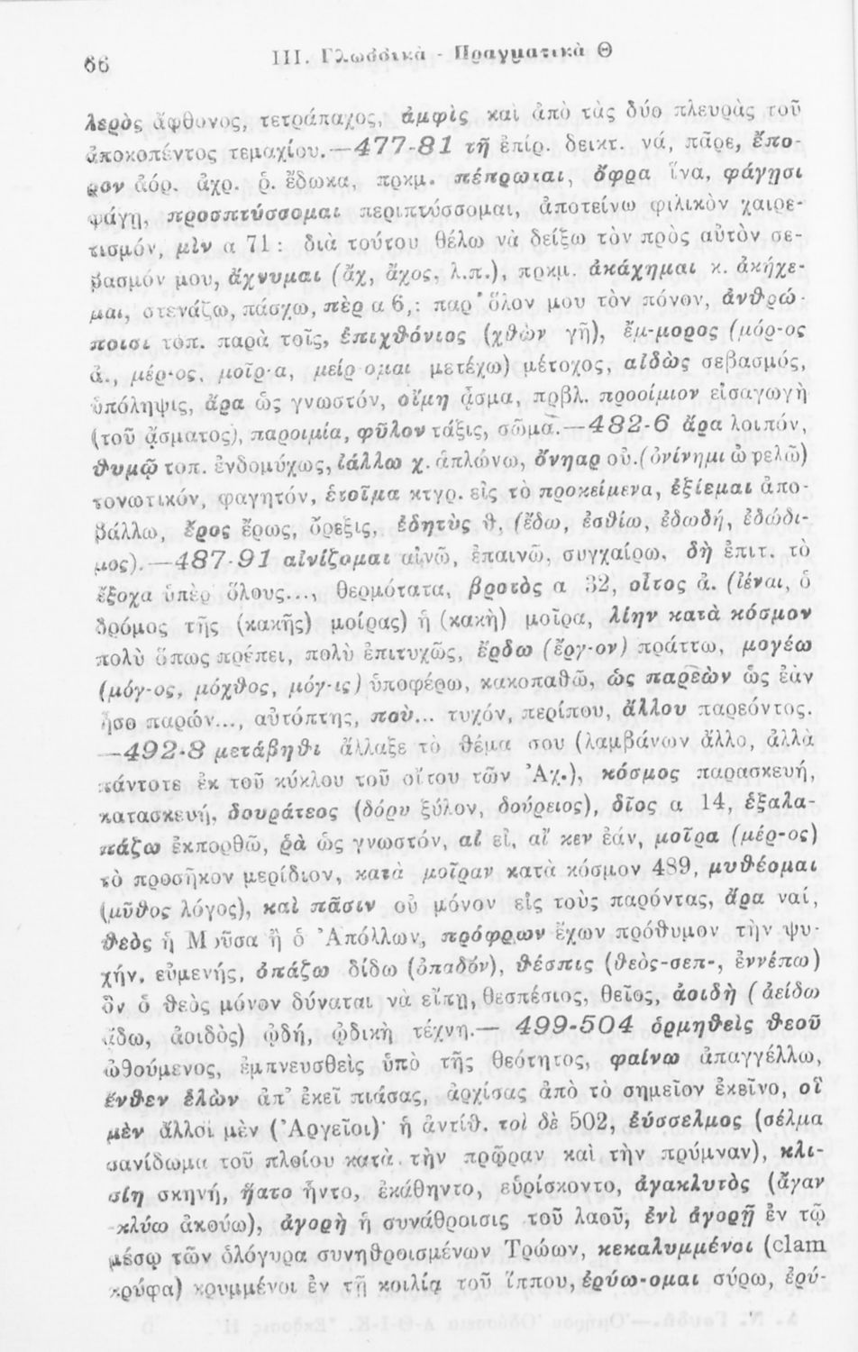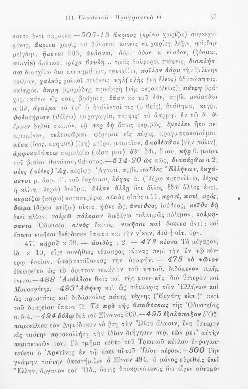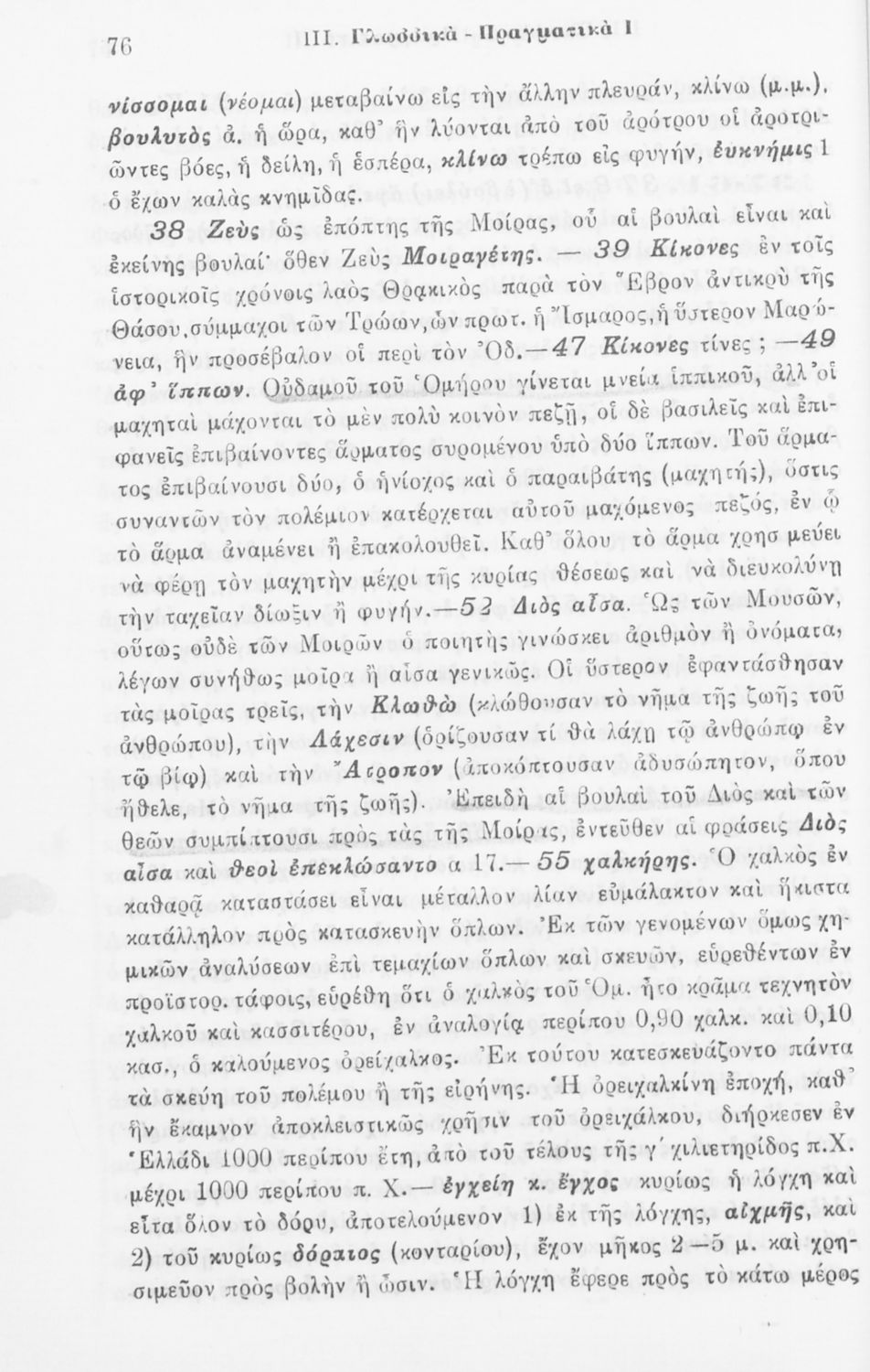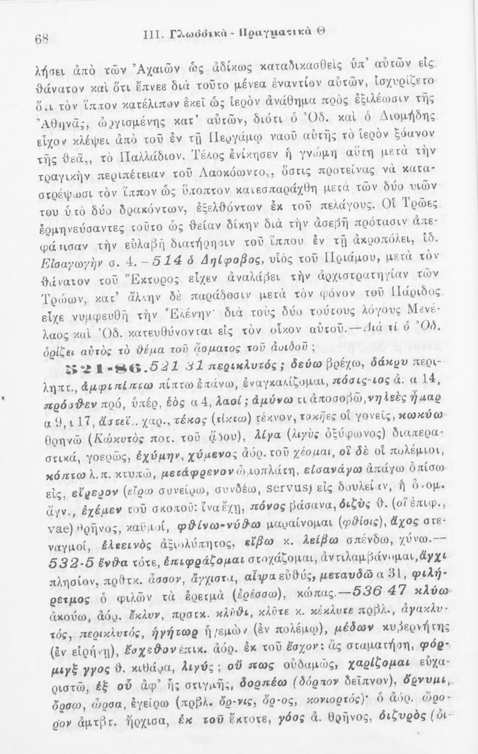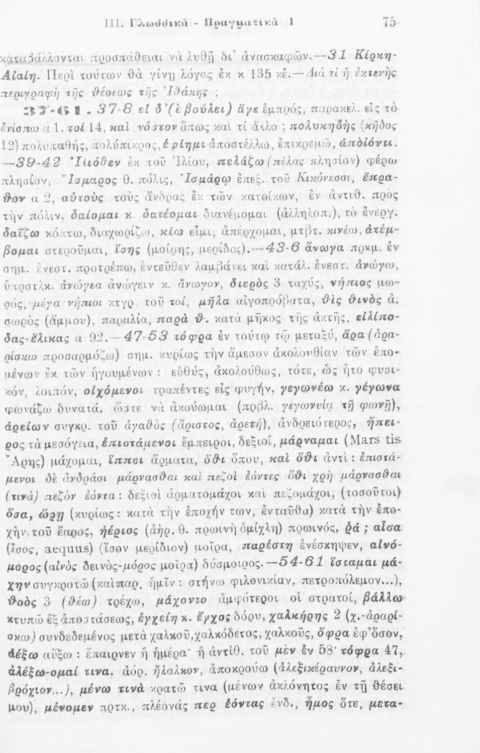 Σχολικό εγχειρίδιο Αρχαίων Ελληνικών για την Δ΄ τάξη των Εξαταξίων Γυμνασίων που περιλαμβάνει ετυμολογικά σχόλια στις ραψωδίες Ο-Π-Ρ-Σ-Τ-Χ-Ψ-Ω της Ιλιάδας