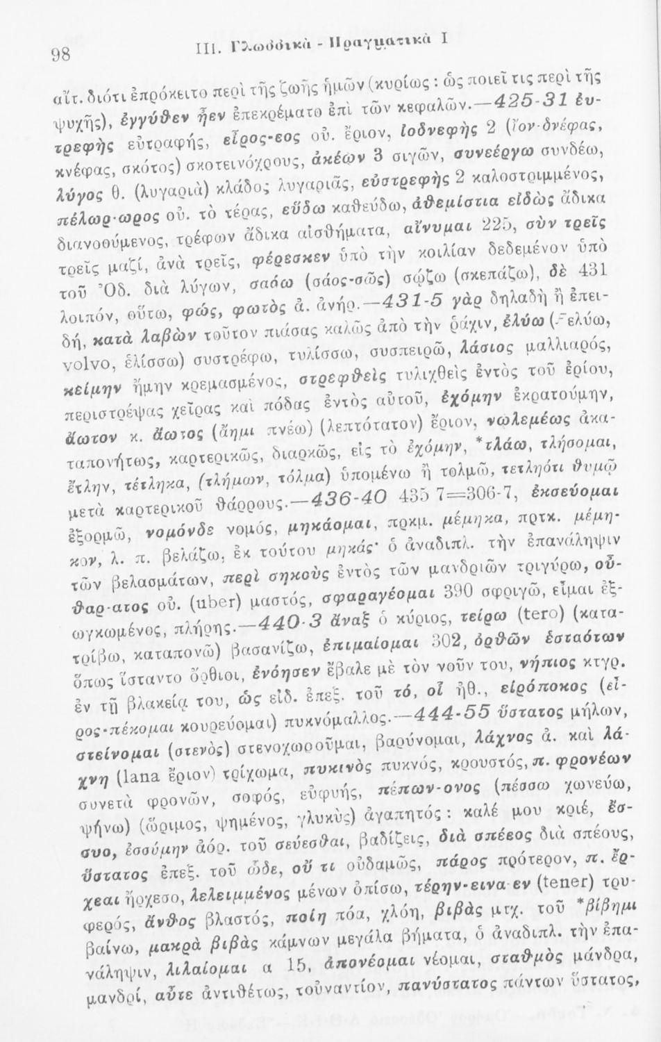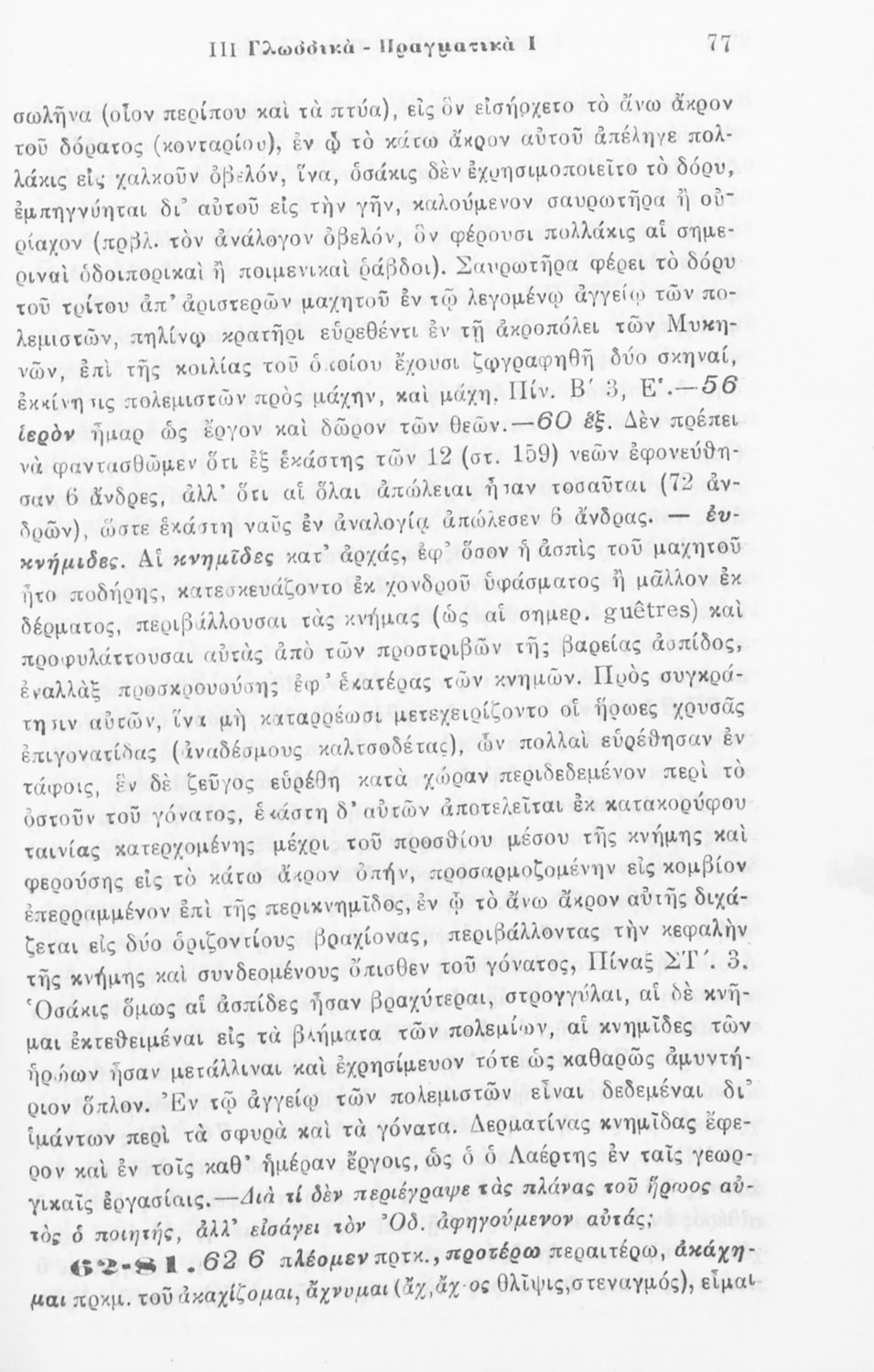 Σχολικό εγχειρίδιο Αρχαίων Ελληνικών για την Δ΄ τάξη των Εξαταξίων Γυμνασίων που περιλαμβάνει ετυμολογικά σχόλια στις ραψωδίες Ο-Π-Ρ-Σ-Τ-Χ-Ψ-Ω της Ιλιάδας