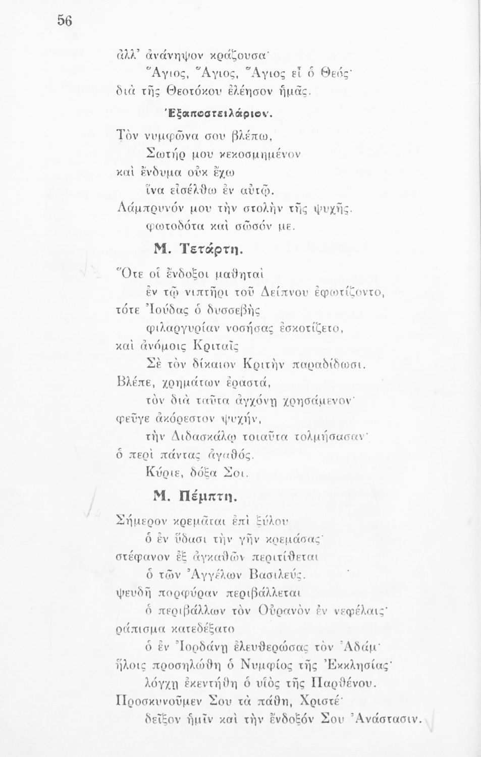 Βαθμίδα εκπαίδευσης: Δευτεροβάθμια Τάξη: Ε' Γυμνασίου Μάθημα: Θρησκευτικά Γλώσσα: Καθαρεύουσα Παρουσίαση περιεχομένου: Μαθητικό βοήθημα Θρησκευτικών Ε΄ Γυμνασίου που πραγματεύεται το λειτουργικό μέρος της ορθόδοξης παράδοσης και περιλαμβάνει απολυτίκια και κοντάκια. |