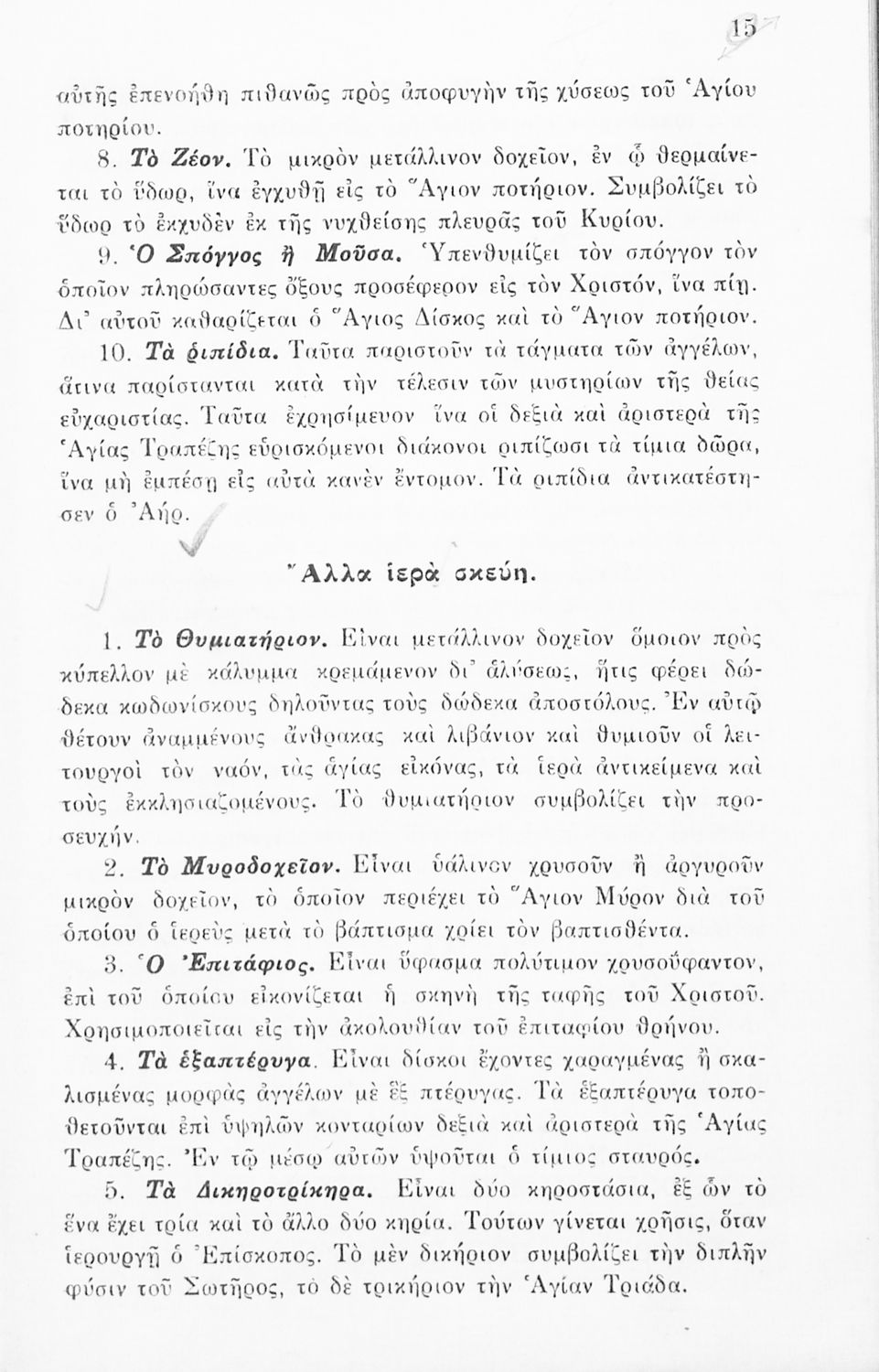 Μαθητικό βοήθημα Θρησκευτικών Ε΄ Γυμνασίου που πραγματεύεται το λειτουργικό μέρος της ορθόδοξης παράδοσης και περιλαμβάνει απολυτίκια και κοντάκια.