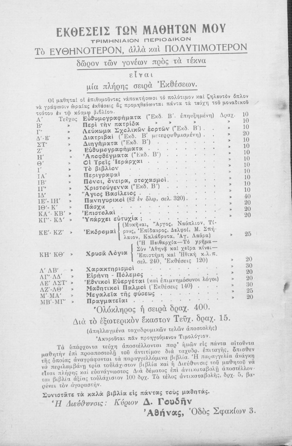 Εκδότης: Τυπογραφείον Γεωργίου Π. Ξένου Έτος έκδοσης: 1938 Τόπος έκδοσης: Αθήνα Έκδοση: 2η |