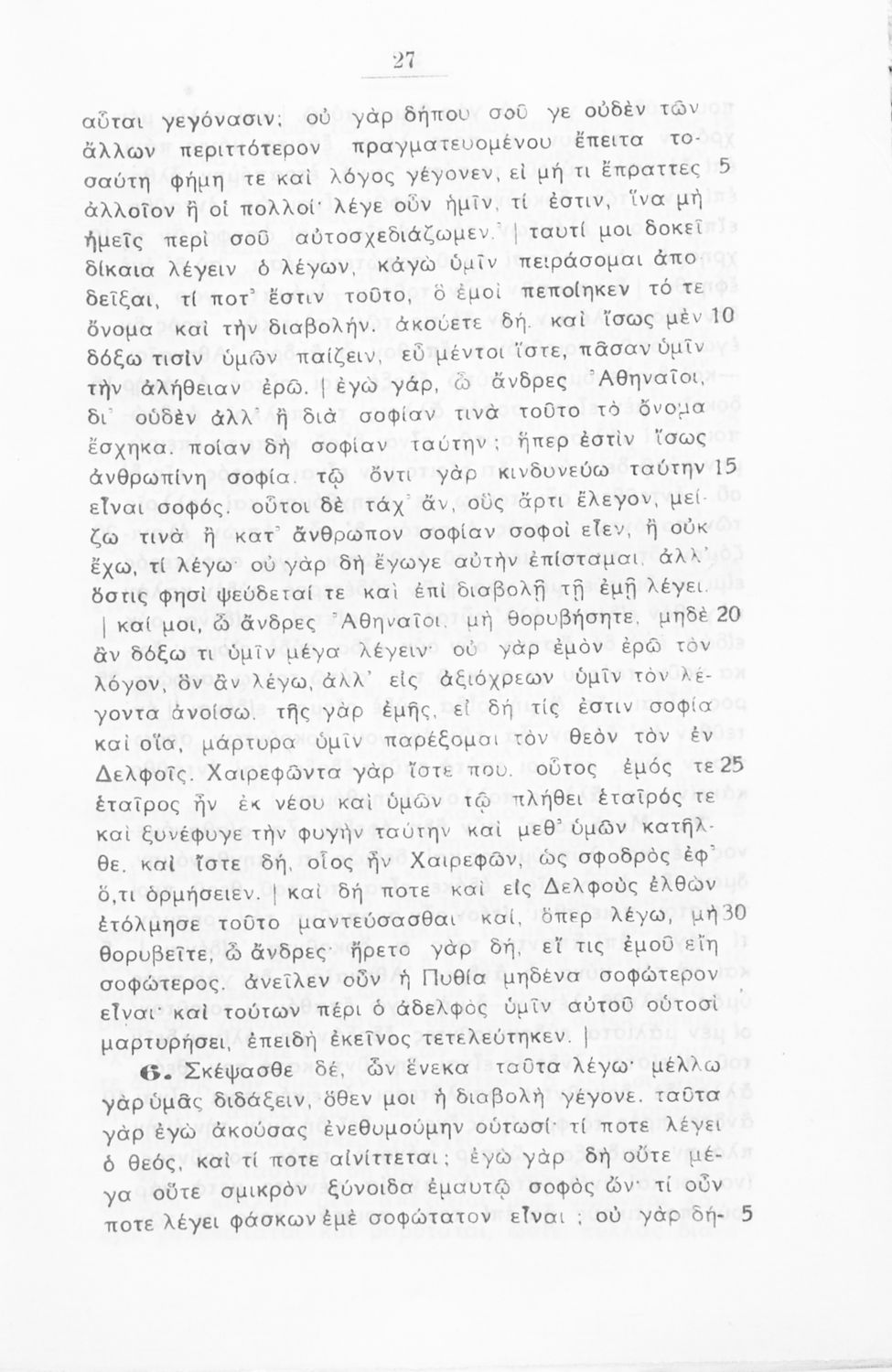 Πλάτωνος απολογία Σωκράτους προς χρήσιν των μαθητών της Ε΄ τάξεως των Εξαταξίων Γυμνασίων
