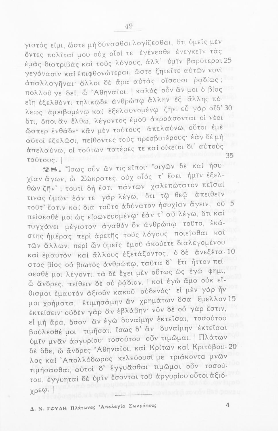 Κωδικός αναγνώρισης: 02-01248 Τίτλος: Πλάτωνος απολογία Σωκράτους προς χρήσιν των μαθητών της Ε΄ τάξεως των Εξαταξίων Γυμνασίων Συγγραφέας: Πλάτων, Δημ. Ν. Γουδής (σχόλια) Μέγεθος και υπόστρωμα: Σχολικό εγχειρίδιο, 112 σελίδες. Σκίτσα (ασπρόμαυρα). |