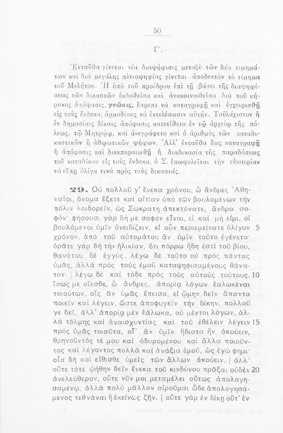 LDR 01264 2200181 4500 035 ## _a02-01248 040 ## _aΕλληνικό Λογοτεχνικό και Ιστορικό Αρχείο 041 ## _ael 100 ## _aΠλάτων _aΔημ. Ν. Γουδής (σχόλια) 245 0# _aΠλάτωνος απολογία Σωκράτους προς χρήσιν των μαθητών της Ε΄ τάξεως των Εξαταξίων Γυμνασίων 250 ## _a2η Έκδοση 260 ## _aΑθήνα _bΤυπογραφείον Γεωργίου Π. Ξένου _c1938 300 ## _a112 _bΣκίτσα (ασπρόμαυρα) 520 ## _aΣχολικό εγχειρίδιο Αρχαίων Ελληνικών για την Ε΄ τάξη των Εξαταξίων Γυμνασίων που περιλαμβάνει εισαγωγή στην αρχαία ελληνική φιλοσοφία, βιογραφικά στοιχεία του Πλάτωνα και του Σωκράτη, εισαγωγή στο έργο, κείμενο και γλωσσικές και πραγματολογικές σημειώσεις. 521 ## _aΕ' Γυμνασίου 522 ## _aΕλλάδα 546 ## _aΚαθαρεύουσα 650 #4 _aΆνυτος _aΛύκωνας _aΜέλητος