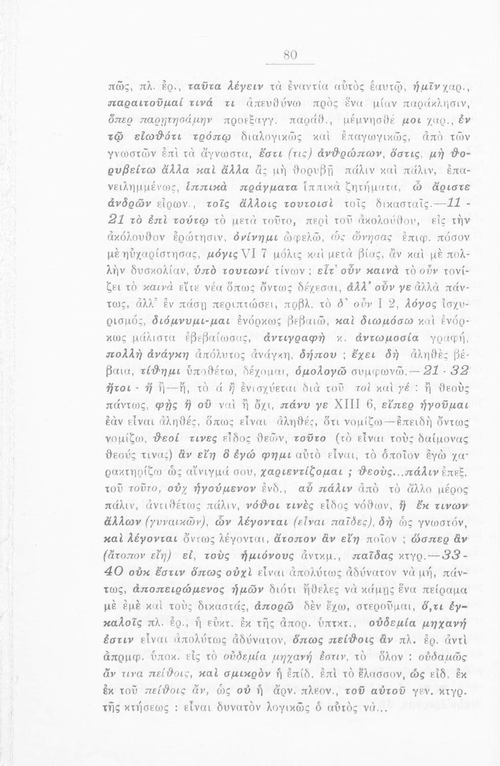 LDR 01264 2200181 4500 035 ## _a02-01248 040 ## _aΕλληνικό Λογοτεχνικό και Ιστορικό Αρχείο 041 ## _ael 100 ## _aΠλάτων _aΔημ. Ν. Γουδής (σχόλια) 245 0# _aΠλάτωνος απολογία Σωκράτους προς χρήσιν των μαθητών της Ε΄ τάξεως των Εξαταξίων Γυμνασίων 250 ## _a2η Έκδοση 260 ## _aΑθήνα _bΤυπογραφείον Γεωργίου Π. Ξένου _c1938 300 ## _a112 _bΣκίτσα (ασπρόμαυρα) 520 ## _aΣχολικό εγχειρίδιο Αρχαίων Ελληνικών για την Ε΄ τάξη των Εξαταξίων Γυμνασίων που περιλαμβάνει εισαγωγή στην αρχαία ελληνική φιλοσοφία, βιογραφικά στοιχεία του Πλάτωνα και του Σωκράτη, εισαγωγή στο έργο, κείμενο και γλωσσικές και πραγματολογικές σημειώσεις. 521 ## _aΕ' Γυμνασίου 522 ## _aΕλλάδα 546 ## _aΚαθαρεύουσα 650 #4 _aΆνυτος _aΛύκωνας _aΜέλητος