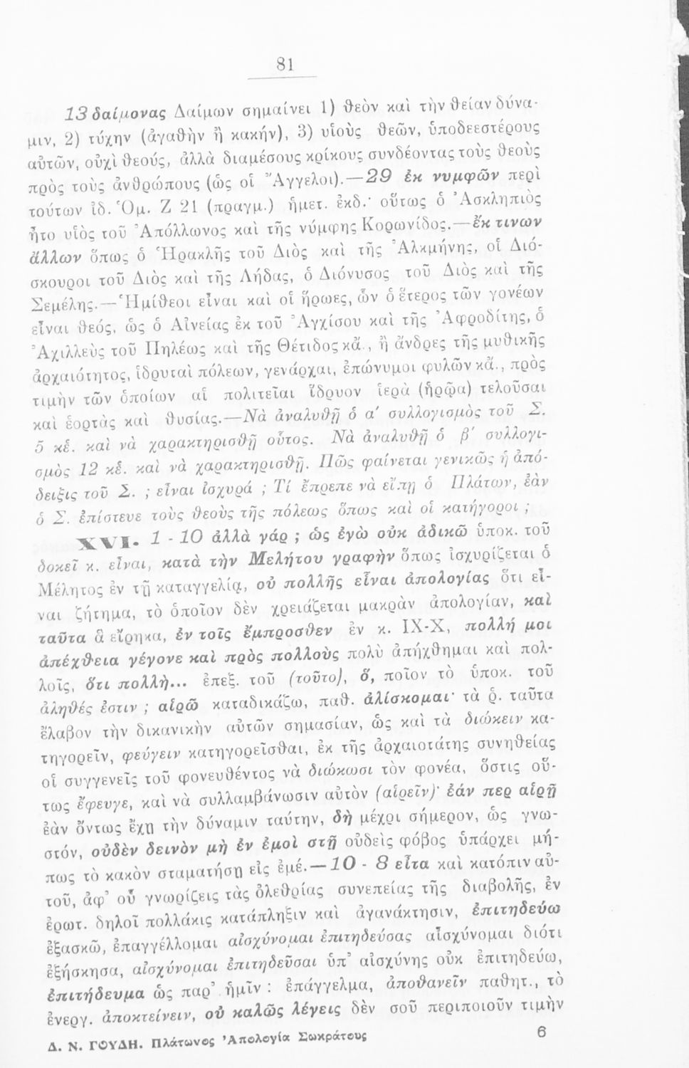 Κωδικός αναγνώρισης: 02-01248 Τίτλος: Πλάτωνος απολογία Σωκράτους προς χρήσιν των μαθητών της Ε΄ τάξεως των Εξαταξίων Γυμνασίων Συγγραφέας: Πλάτων, Δημ. Ν. Γουδής (σχόλια) Μέγεθος και υπόστρωμα: Σχολικό εγχειρίδιο, 112 σελίδες. Σκίτσα (ασπρόμαυρα). |