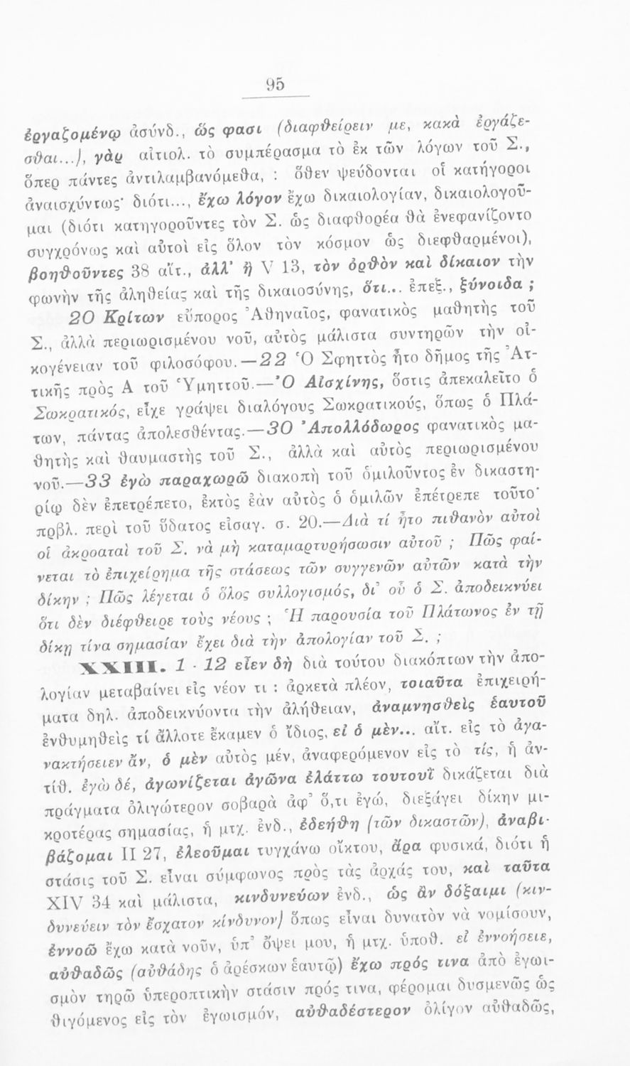 Σχολικό εγχειρίδιο Αρχαίων Ελληνικών για την Ε΄ τάξη των Εξαταξίων Γυμνασίων που περιλαμβάνει εισαγωγή στην αρχαία ελληνική φιλοσοφία, βιογραφικά στοιχεία του Πλάτωνα και του Σωκράτη, εισαγωγή στο έργο, κείμενο και γλωσσικές και πραγματολογικές σημειώσεις.