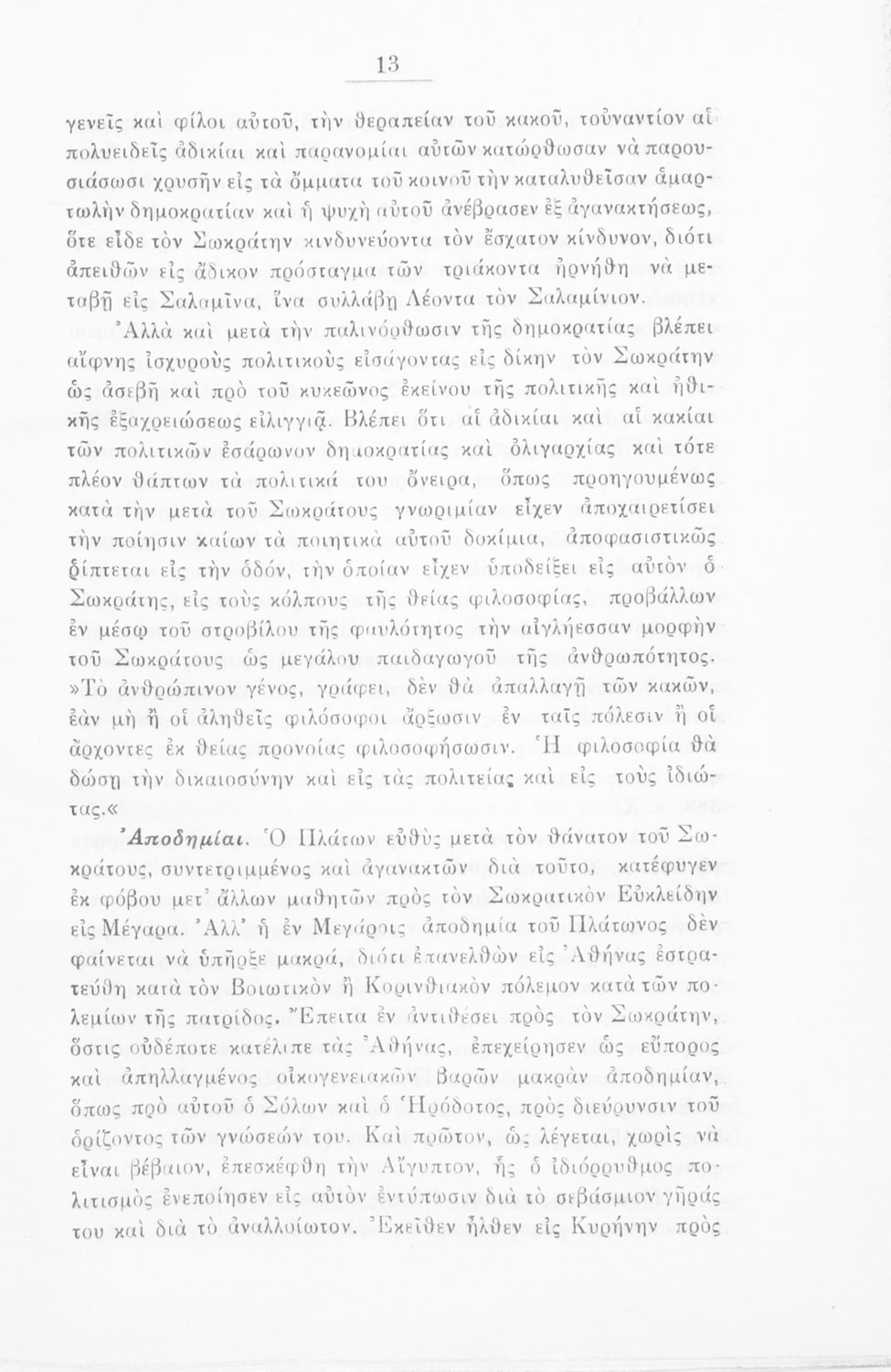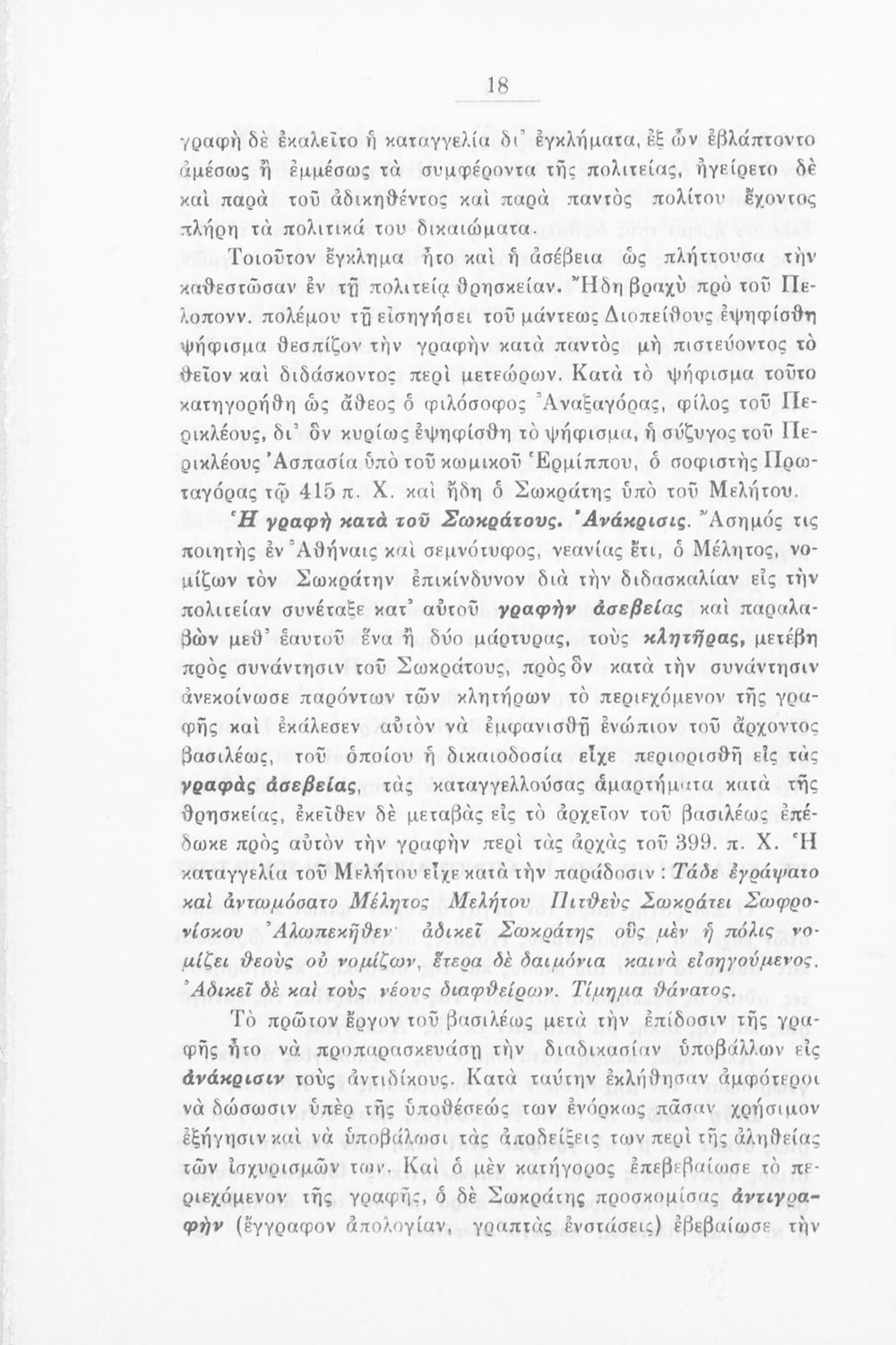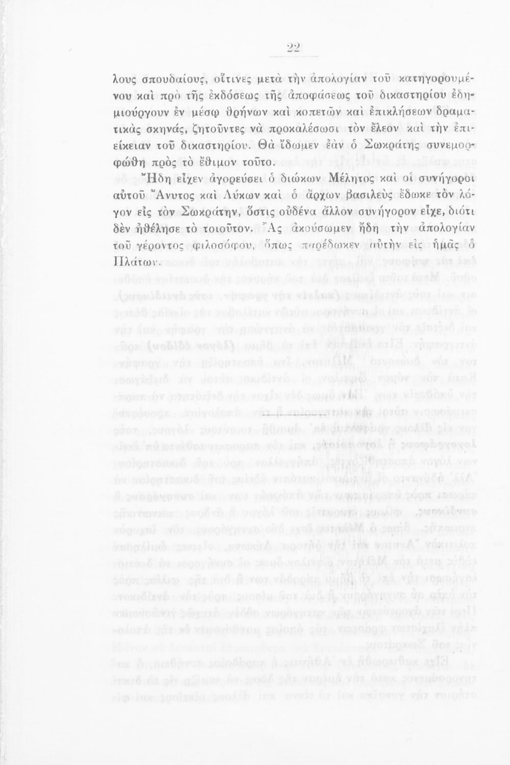 Σχολικό εγχειρίδιο Αρχαίων Ελληνικών για την Ε΄ τάξη των Εξαταξίων Γυμνασίων που περιλαμβάνει εισαγωγή στην αρχαία ελληνική φιλοσοφία, βιογραφικά στοιχεία του Πλάτωνα και του Σωκράτη, εισαγωγή στο έργο, κείμενο και γλωσσικές και πραγματολογικές σημειώσεις.