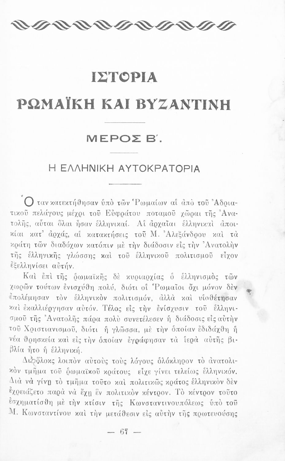 Ιστορία ρωμαϊκή και βυζαντινή από της υποταγής της Ελλάδος εις τους Ρωμαίους μέχρι του 8ου αιώνος μ.Χ. Δια την Γ΄ τάξιν των Γυμνασίων