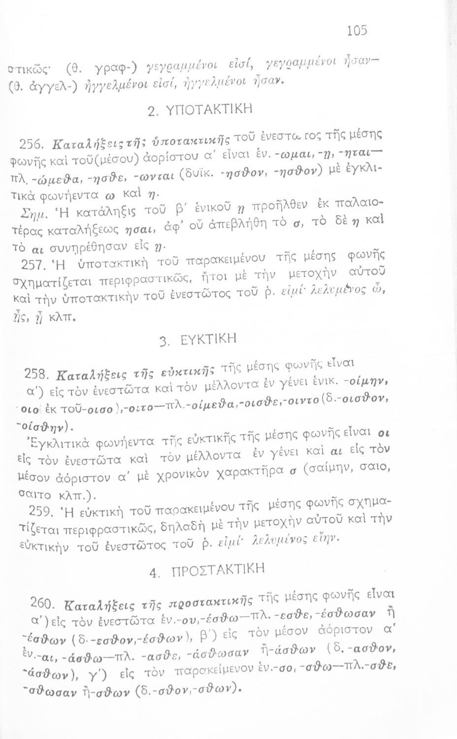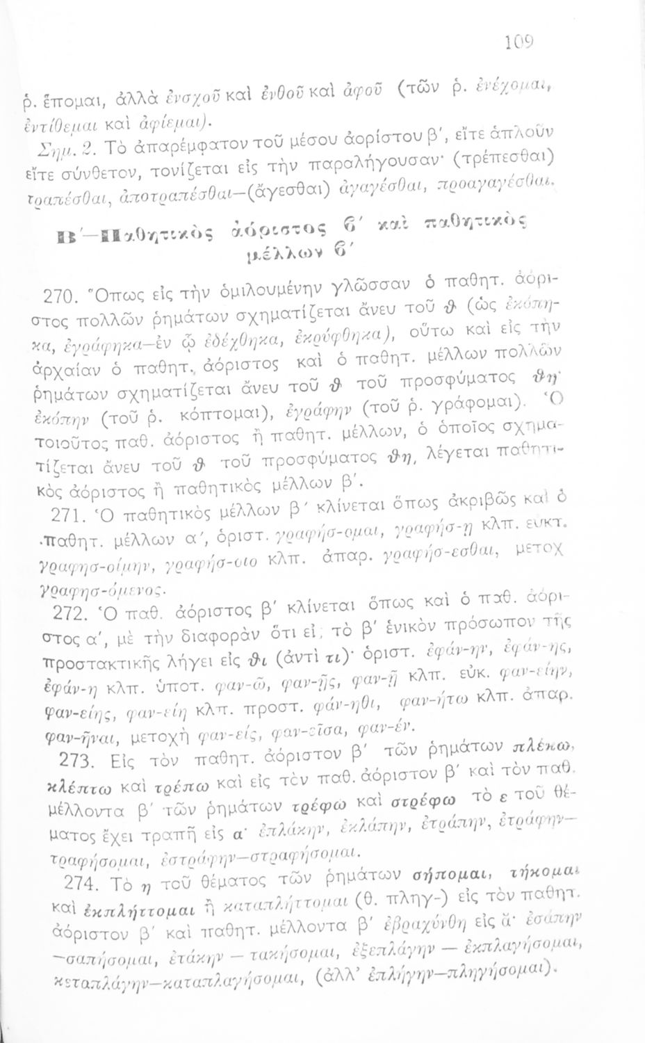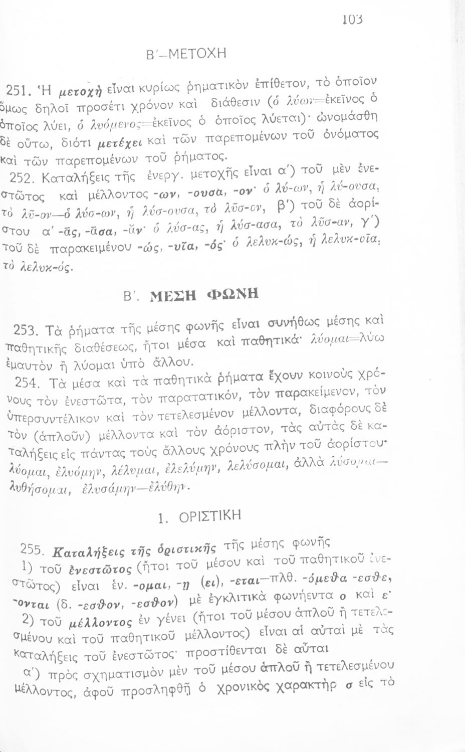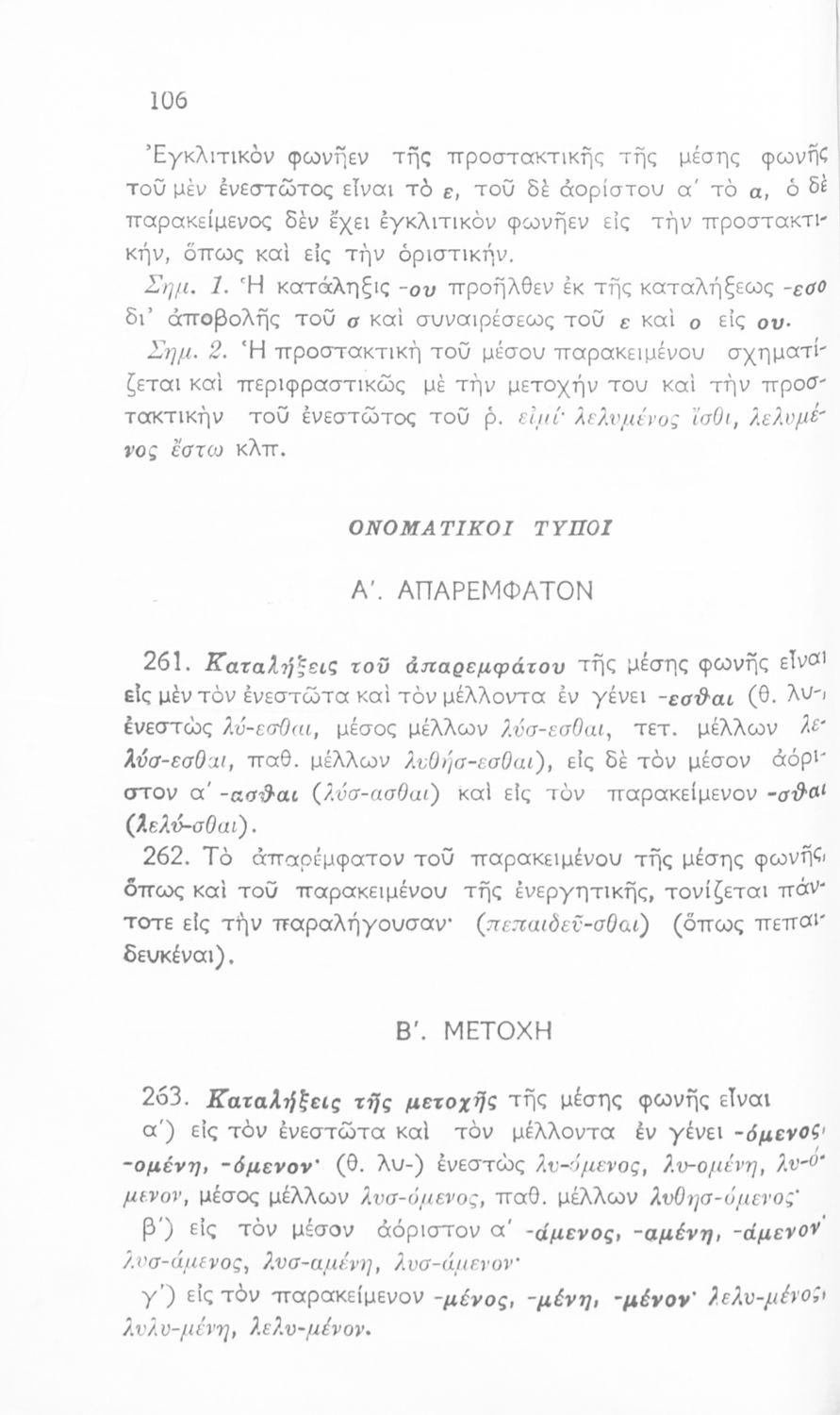 Σχολικό εγχειρίδιο Αρχαίων Ελληνικών Γυμνασίου που περιλαμβάνει τη γραμματική της αρχαίας ελληνικής και είναι χωρισμένο σε φθογγολογικό και τυπολογικό μέρος Περιέχει και κατάλογο ανωμάλων ρημάτων.