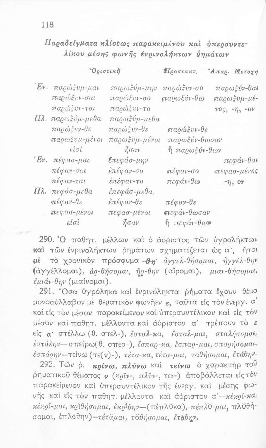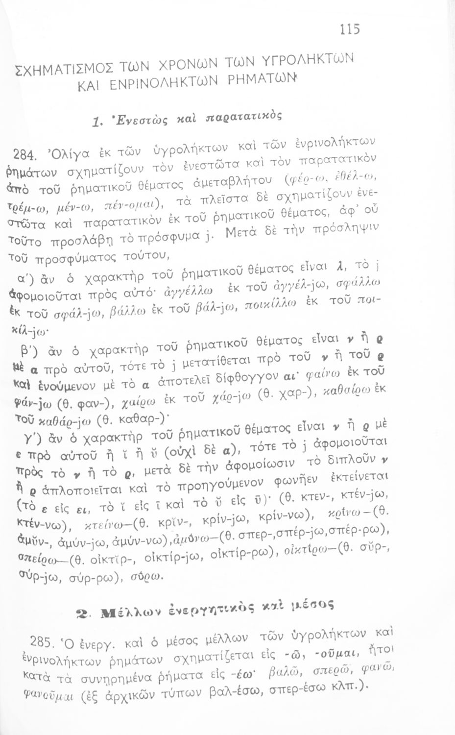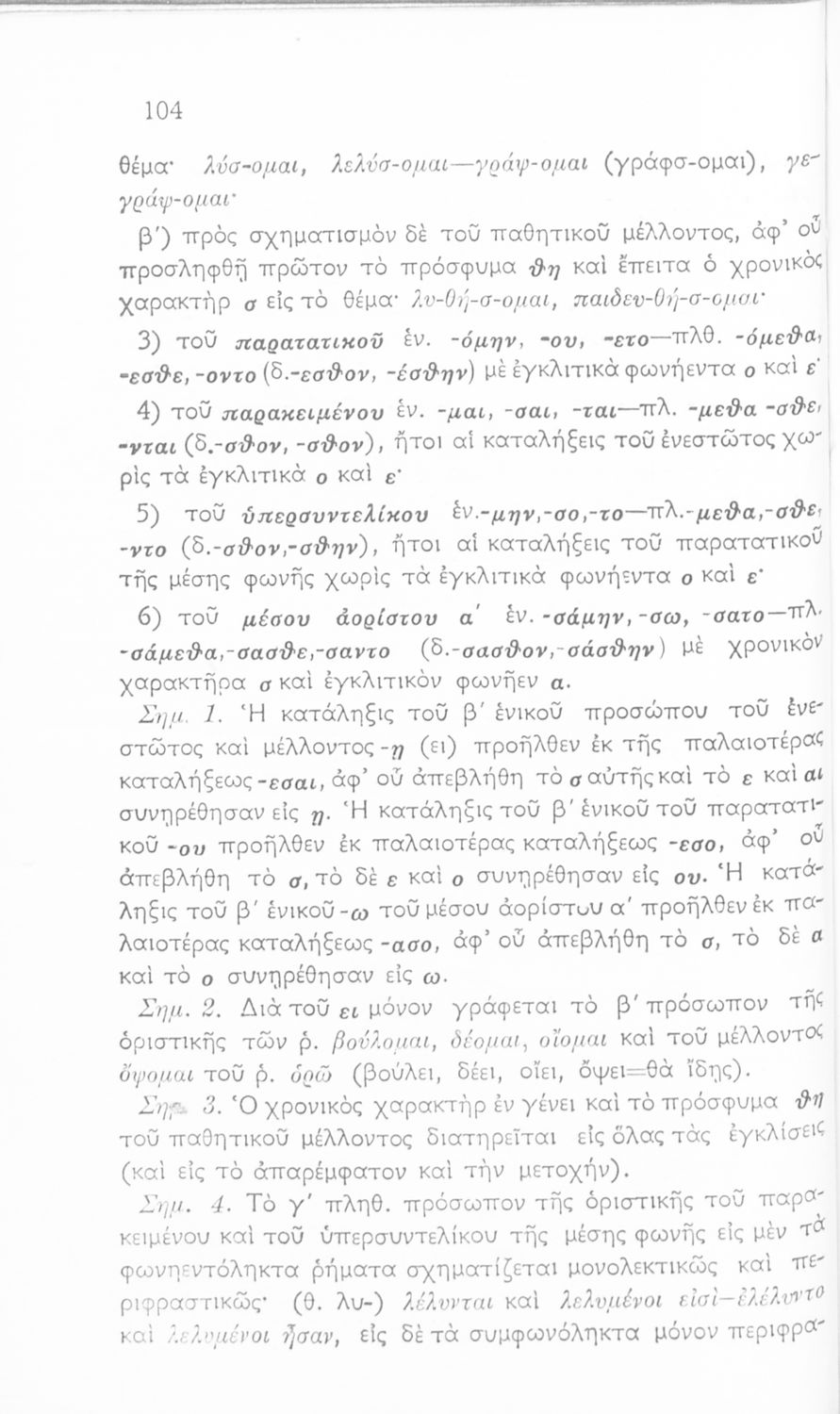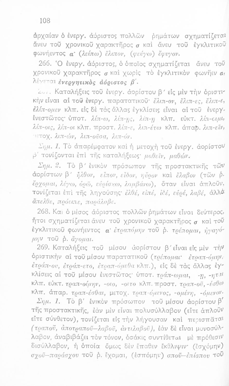 Σχολικό εγχειρίδιο Αρχαίων Ελληνικών Γυμνασίου που περιλαμβάνει τη γραμματική της αρχαίας ελληνικής και είναι χωρισμένο σε φθογγολογικό και τυπολογικό μέρος Περιέχει και κατάλογο ανωμάλων ρημάτων.