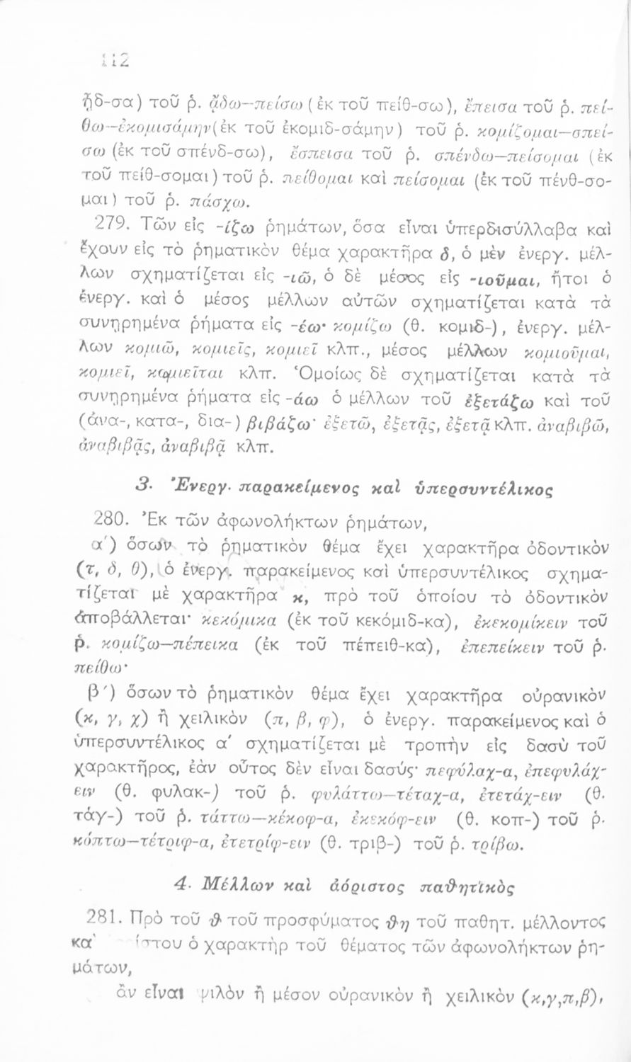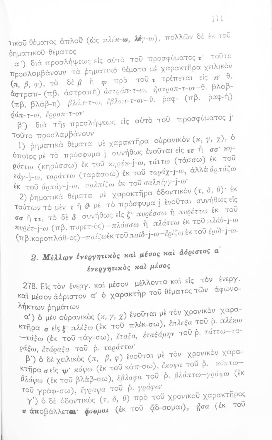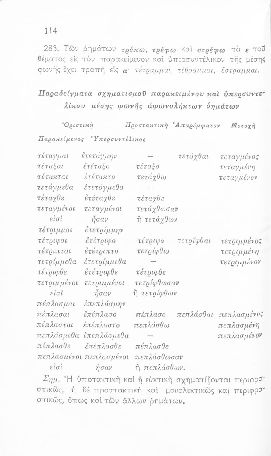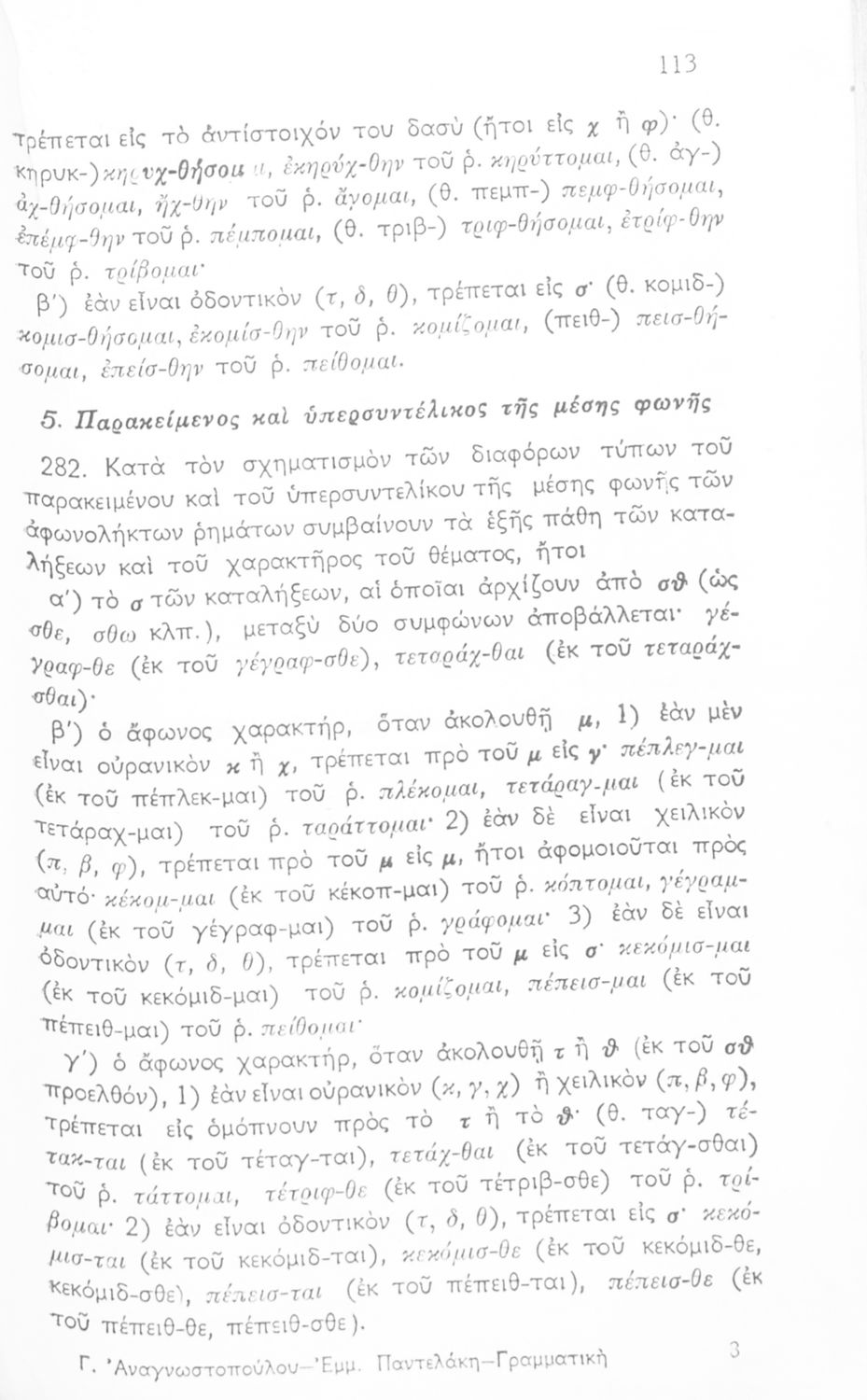 Σχολικό εγχειρίδιο Αρχαίων Ελληνικών Γυμνασίου που περιλαμβάνει τη γραμματική της αρχαίας ελληνικής και είναι χωρισμένο σε φθογγολογικό και τυπολογικό μέρος Περιέχει και κατάλογο ανωμάλων ρημάτων.