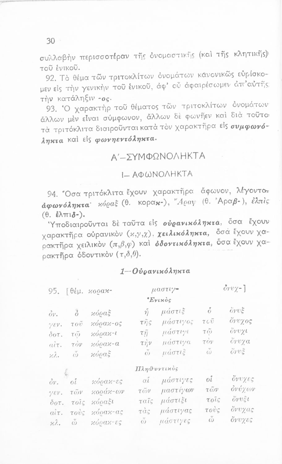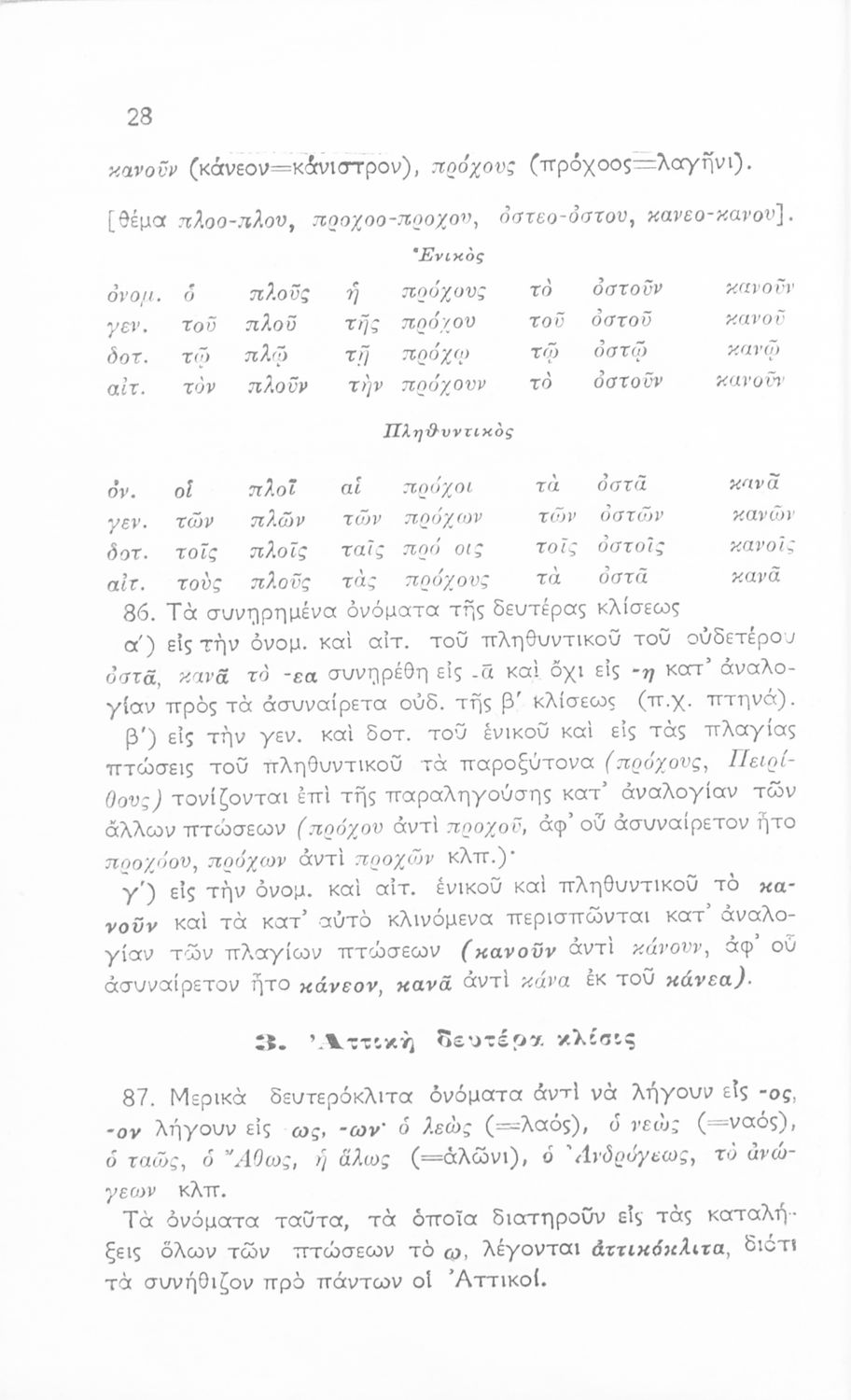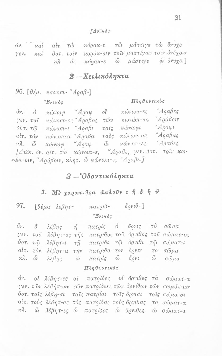 Σχολικό εγχειρίδιο Αρχαίων Ελληνικών Γυμνασίου που περιλαμβάνει τη γραμματική της αρχαίας ελληνικής και είναι χωρισμένο σε φθογγολογικό και τυπολογικό μέρος Περιέχει και κατάλογο ανωμάλων ρημάτων.