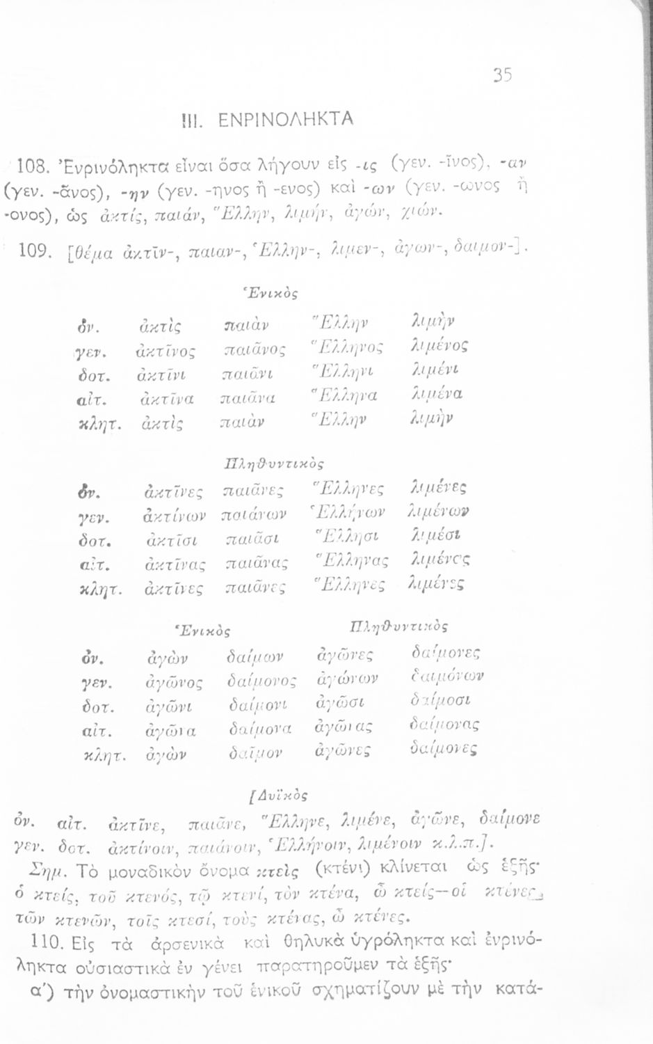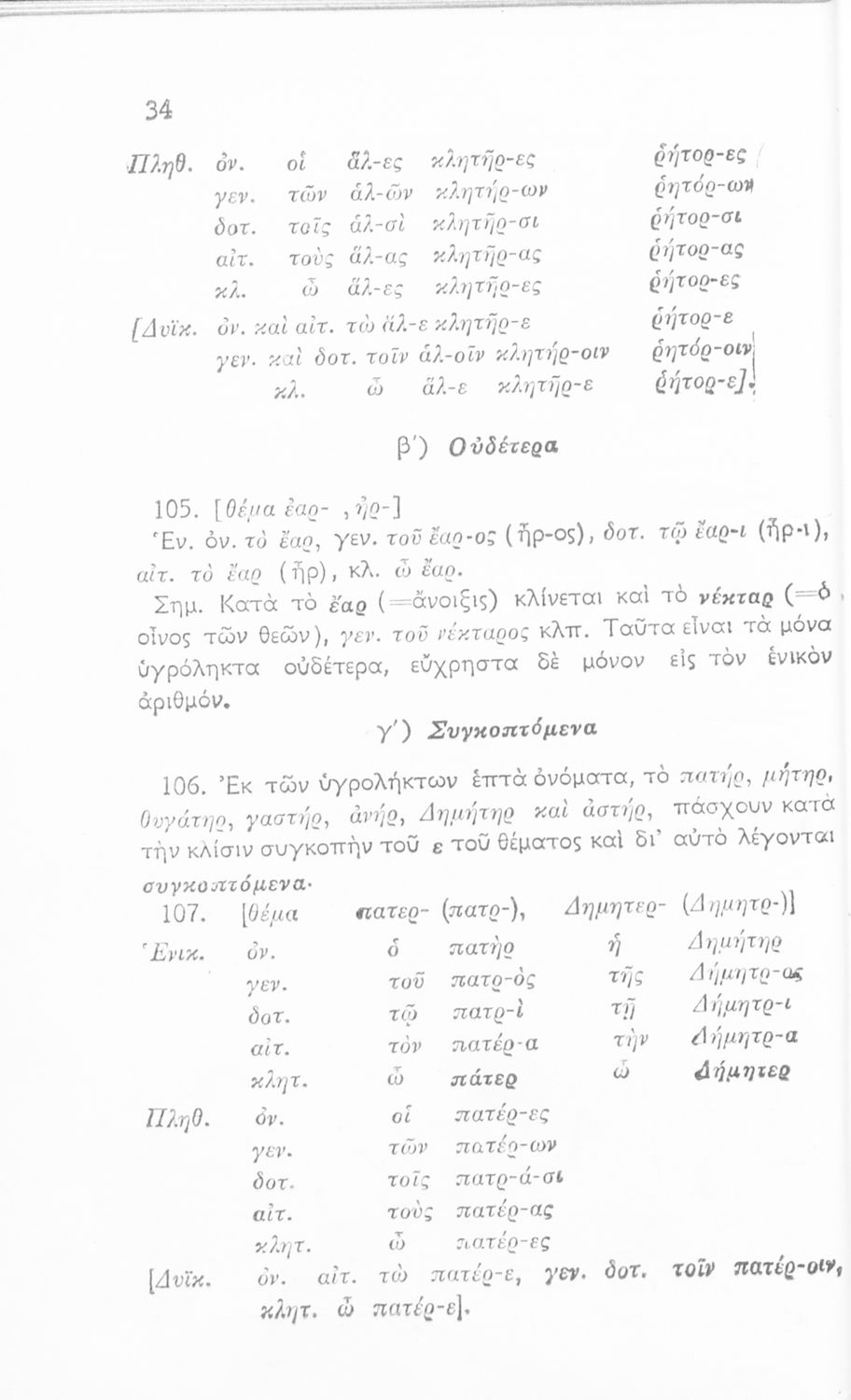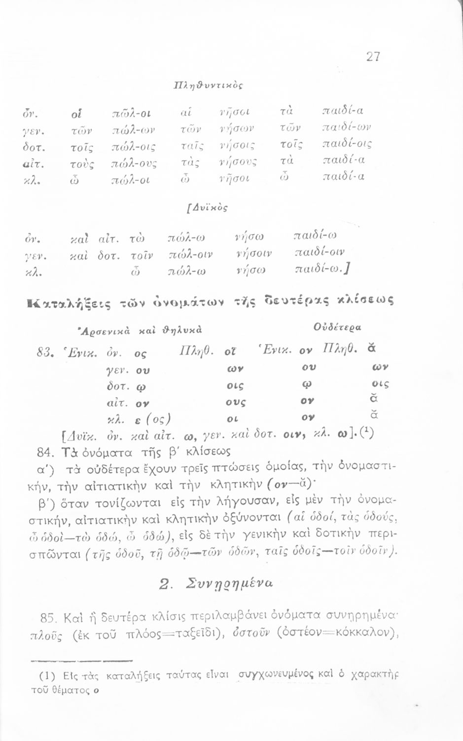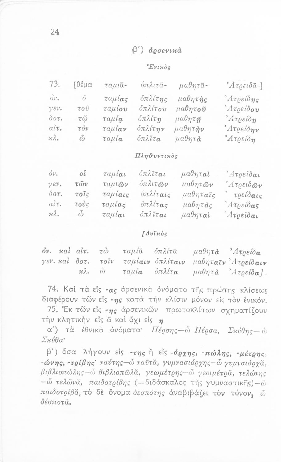 Σχολικό εγχειρίδιο Αρχαίων Ελληνικών Γυμνασίου που περιλαμβάνει τη γραμματική της αρχαίας ελληνικής και είναι χωρισμένο σε φθογγολογικό και τυπολογικό μέρος Περιέχει και κατάλογο ανωμάλων ρημάτων.