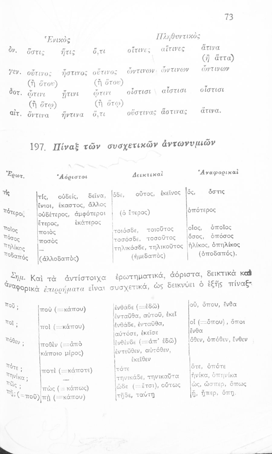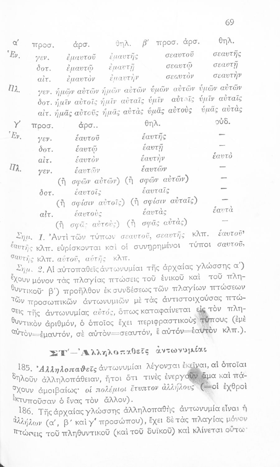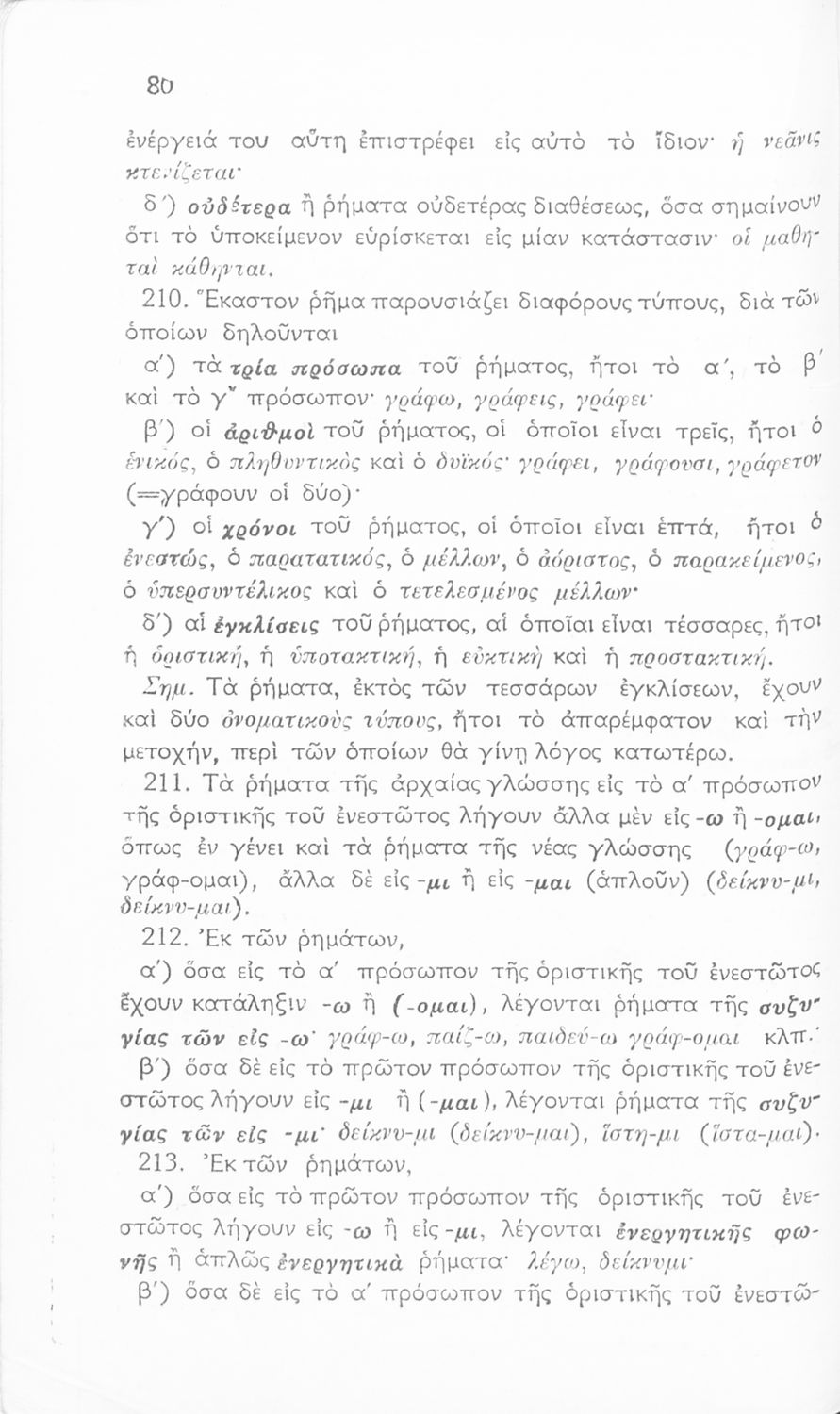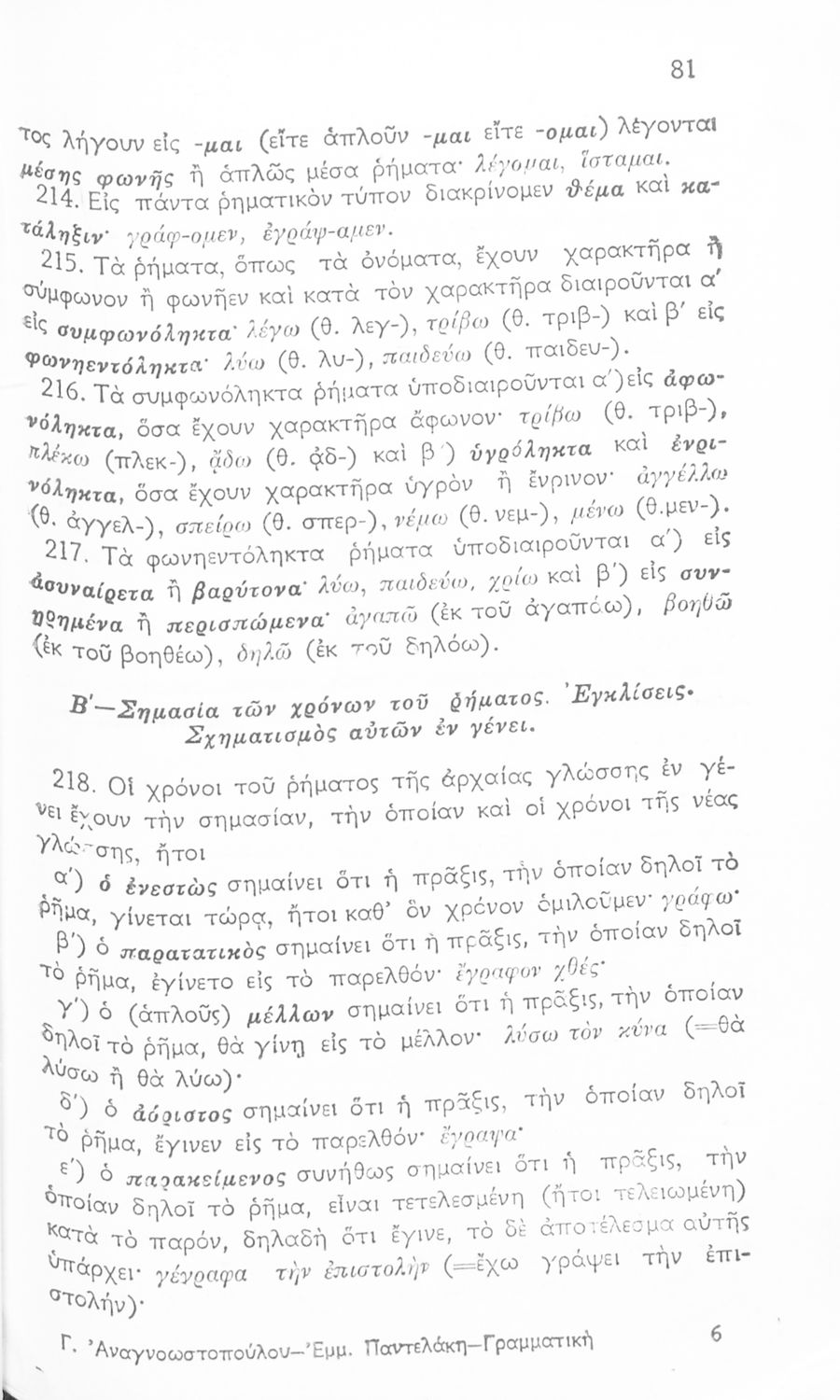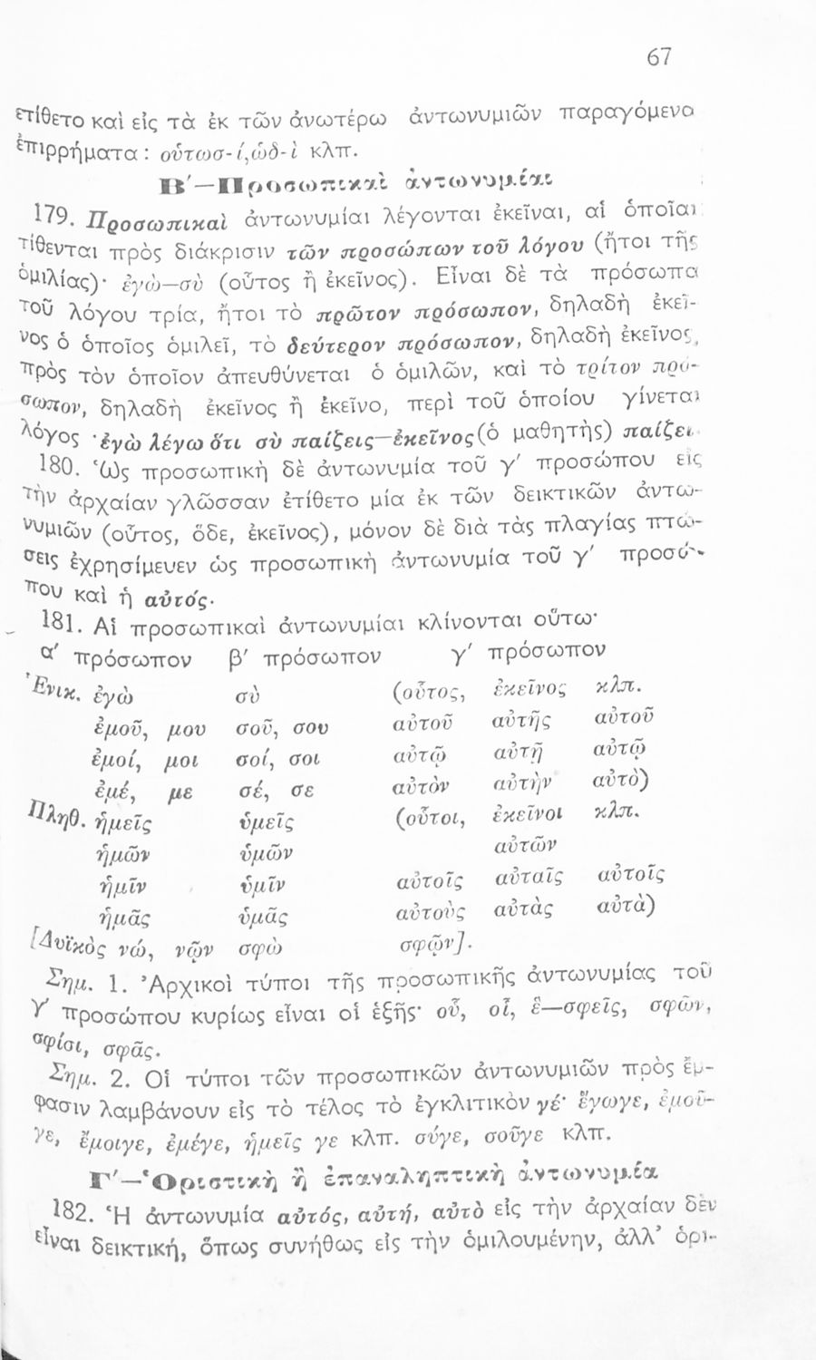 Σχολικό εγχειρίδιο Αρχαίων Ελληνικών Γυμνασίου που περιλαμβάνει τη γραμματική της αρχαίας ελληνικής και είναι χωρισμένο σε φθογγολογικό και τυπολογικό μέρος Περιέχει και κατάλογο ανωμάλων ρημάτων.