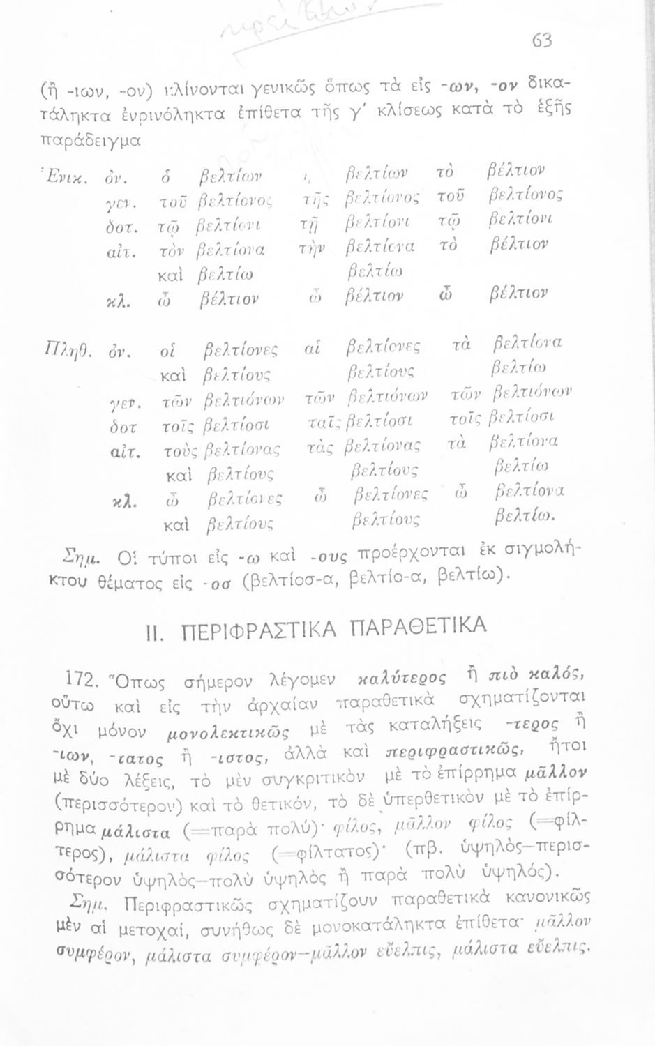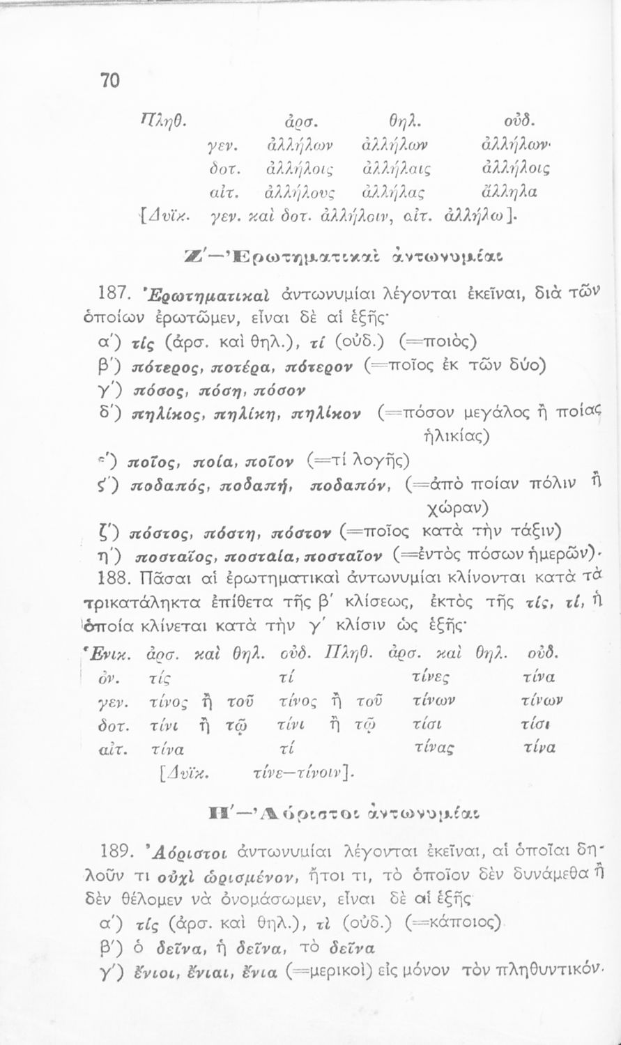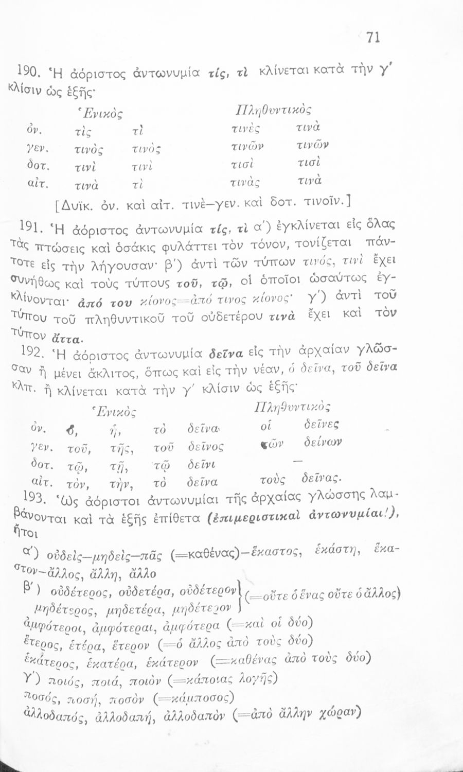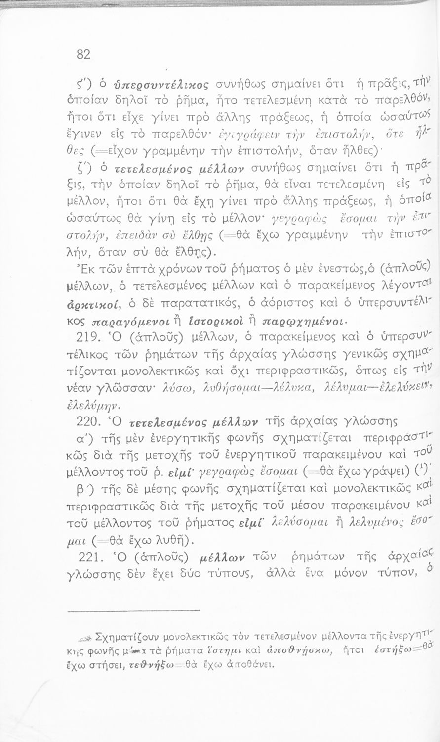 Σχολικό εγχειρίδιο Αρχαίων Ελληνικών Γυμνασίου που περιλαμβάνει τη γραμματική της αρχαίας ελληνικής και είναι χωρισμένο σε φθογγολογικό και τυπολογικό μέρος Περιέχει και κατάλογο ανωμάλων ρημάτων.