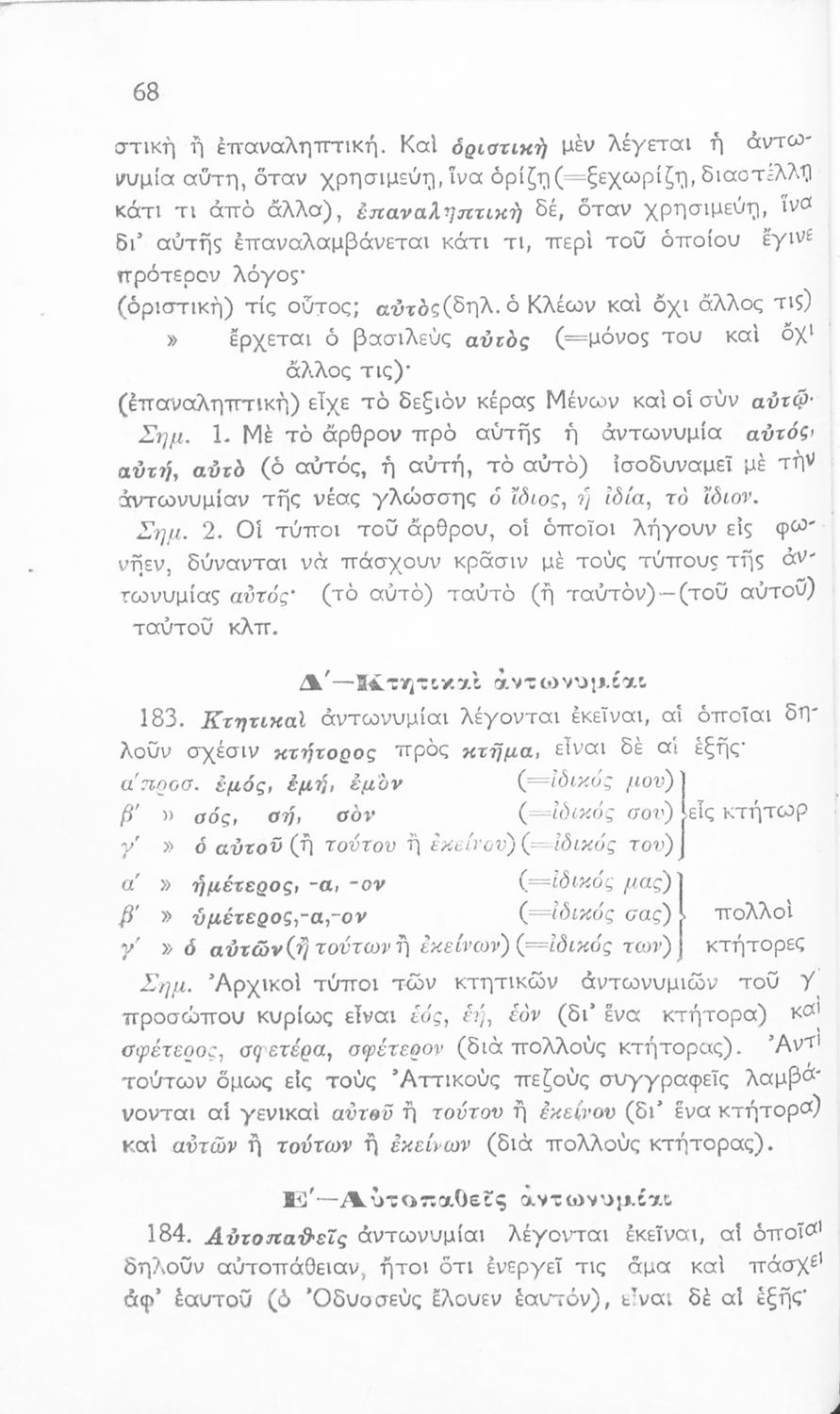 Σχολικό εγχειρίδιο Αρχαίων Ελληνικών για τα Ελληνικά Σχολεία και Παρθεναγωγεία που αποτελεί γραμματική της αρχαίας ελληνικής και είναι χωρισμένο στο φθογγολογικό και το τυπολογικό μέρος.