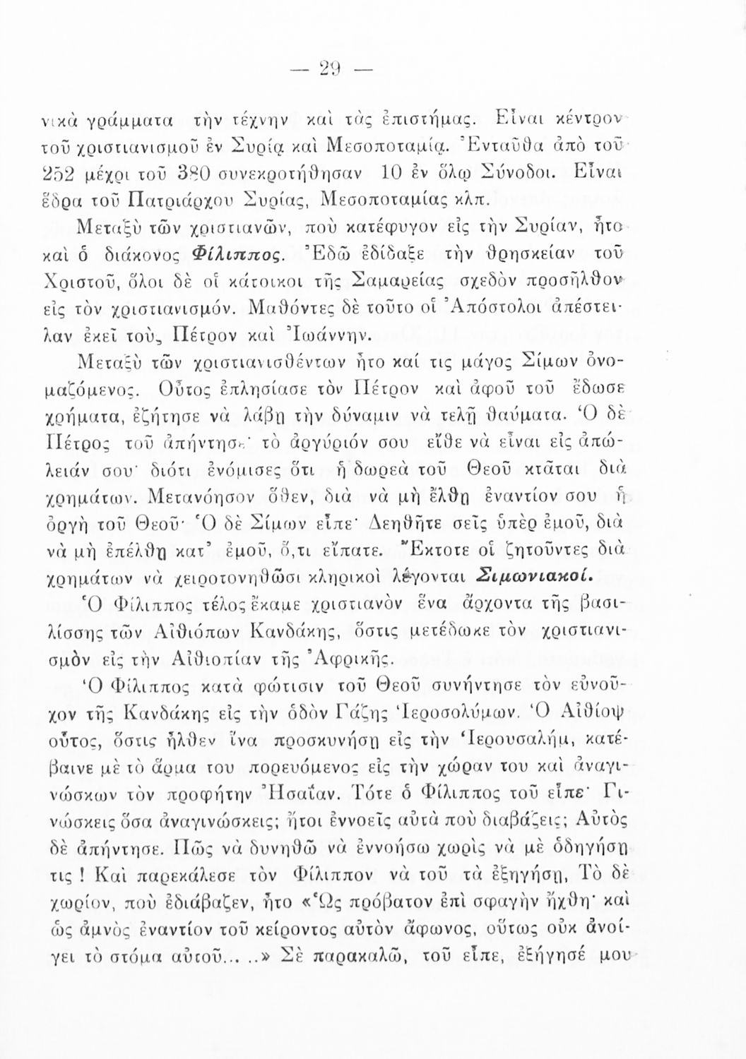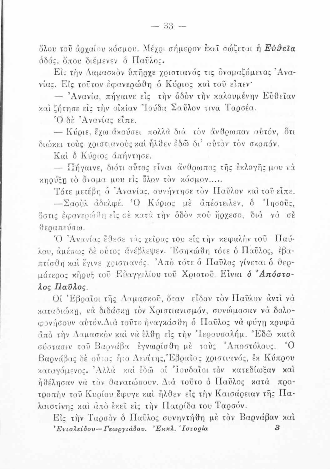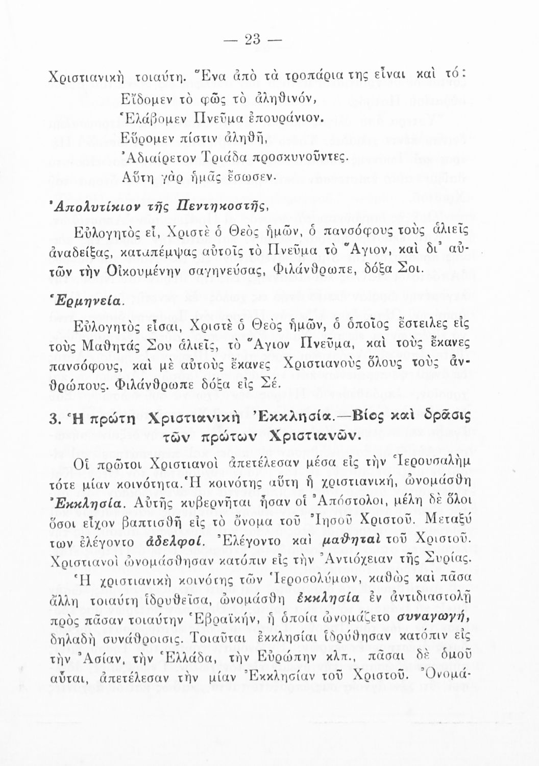 Παιδαγωγικό βοήθημα Θρησκευτικών που περιλαμβάνει εισαγωγή στο σκοπό και τη μέθοδο διδασκαλίας της εκκλησιαστικής ιστορίας, των προσευχών και απολυτίκιων, και την ερμηνεία των περικοπών των ευαγγελίων. Περιέχει και εκτεταμένη ανασκόπηση της Ορθόδοξης Εκκλησίας από την ίδρυσή της μέχρι την ίδρυση της Εκκλησίας της Ελλάδας, απολυτίκια, προσευχές και τροπάρια.
