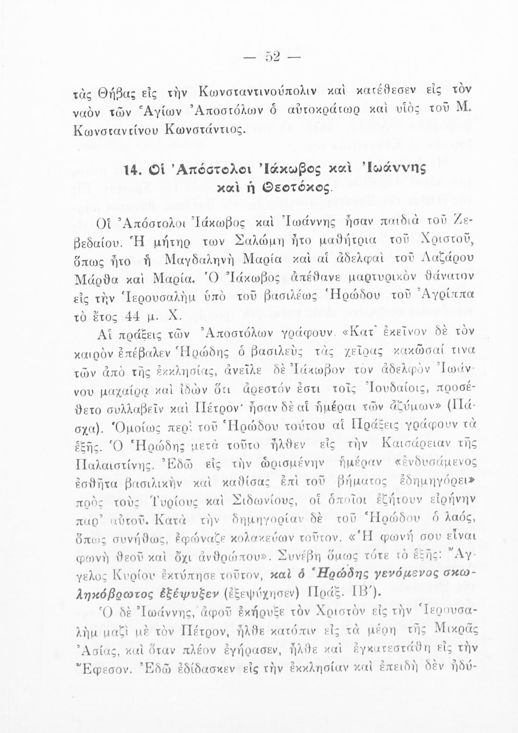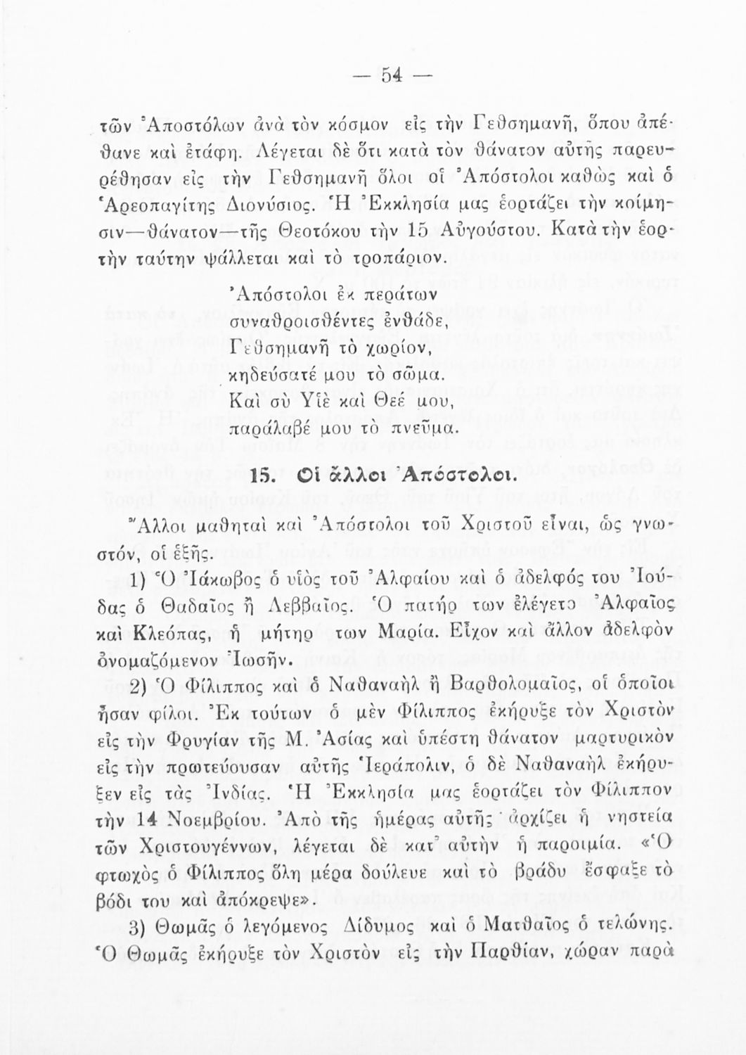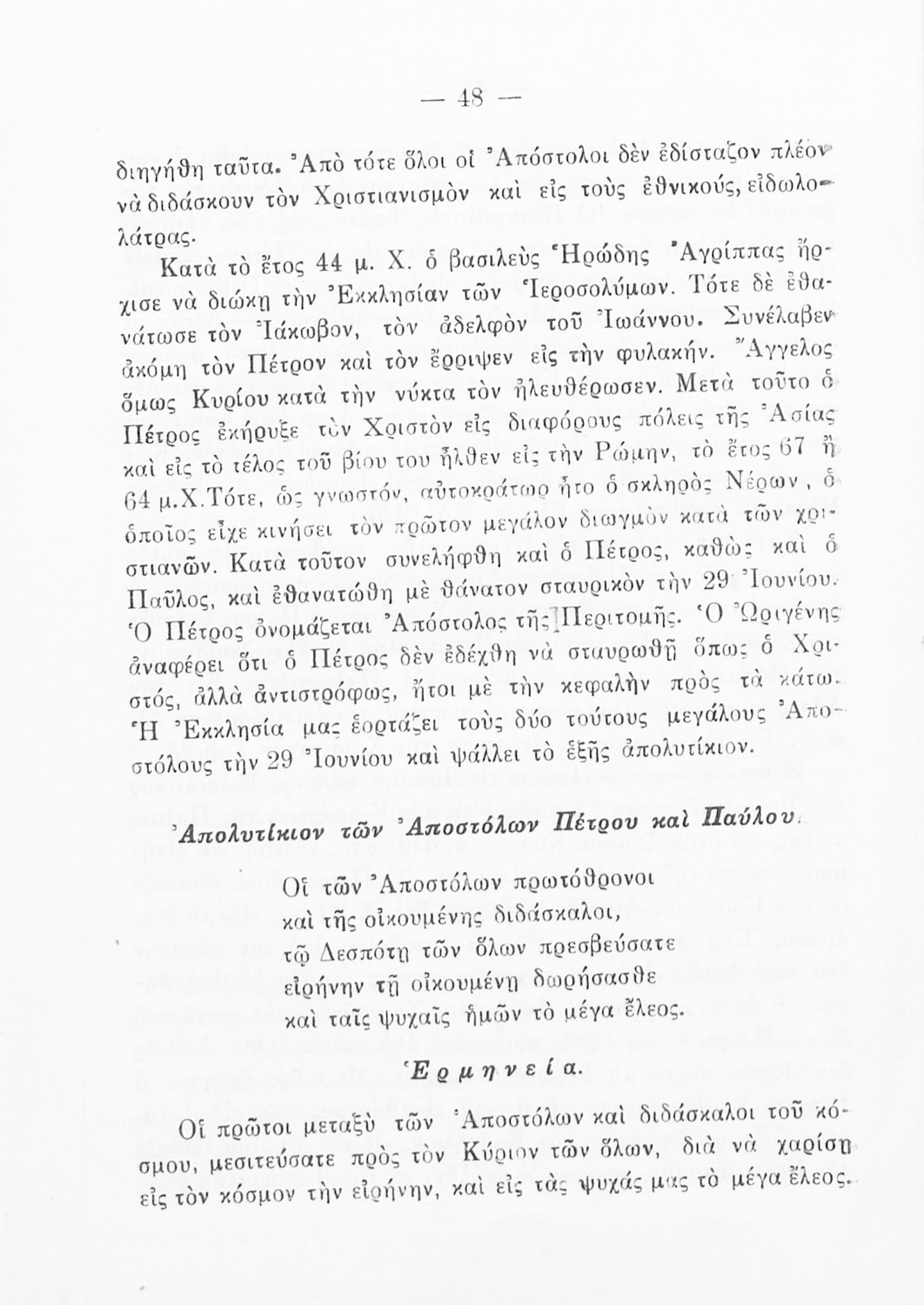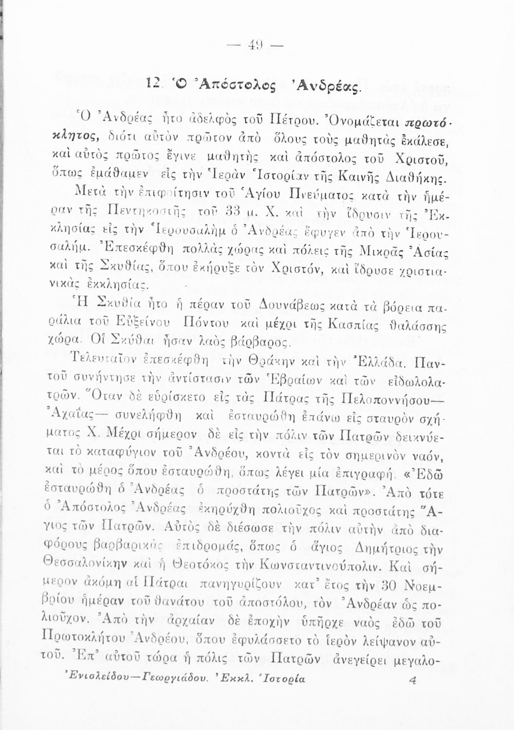 Παιδαγωγικό βοήθημα Θρησκευτικών που περιλαμβάνει εισαγωγή στο σκοπό και τη μέθοδο διδασκαλίας της εκκλησιαστικής ιστορίας, των προσευχών και απολυτίκιων, και την ερμηνεία των περικοπών των ευαγγελίων. Περιέχει και εκτεταμένη ανασκόπηση της Ορθόδοξης Εκκλησίας από την ίδρυσή της μέχρι την ίδρυση της Εκκλησίας της Ελλάδας, απολυτίκια, προσευχές και τροπάρια.