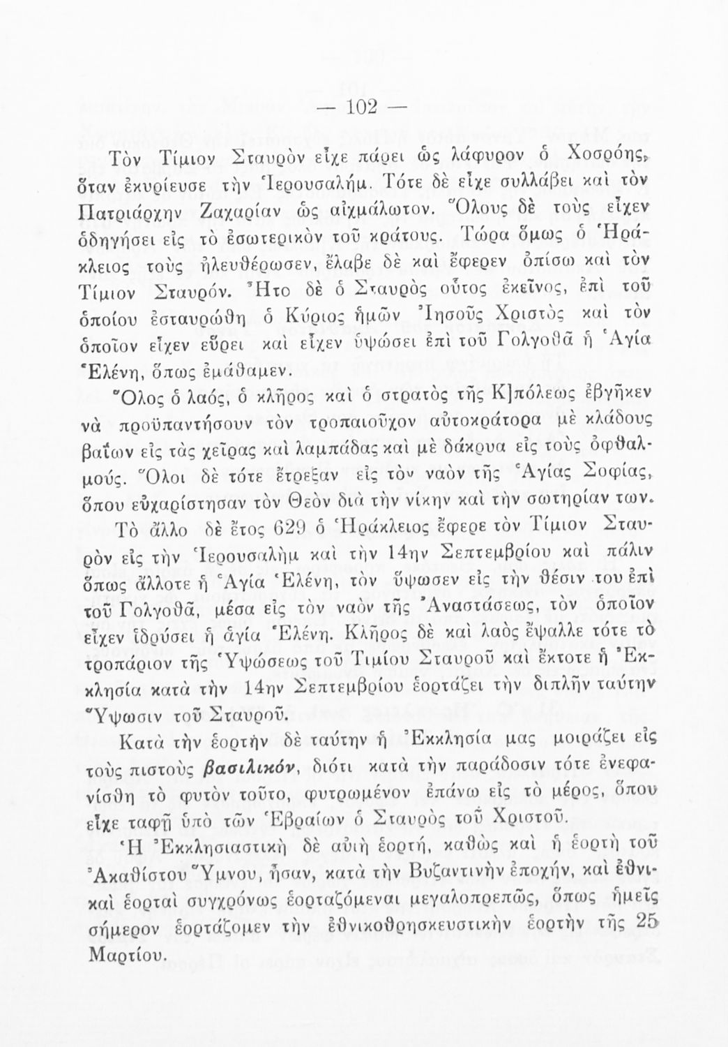 Παιδαγωγικό βοήθημα Θρησκευτικών που περιλαμβάνει εισαγωγή στο σκοπό και τη μέθοδο διδασκαλίας της εκκλησιαστικής ιστορίας, των προσευχών και απολυτίκιων, και την ερμηνεία των περικοπών των ευαγγελίων. Περιέχει και εκτεταμένη ανασκόπηση της Ορθόδοξης Εκκλησίας από την ίδρυσή της μέχρι την ίδρυση της Εκκλησίας της Ελλάδας, απολυτίκια, προσευχές και τροπάρια.