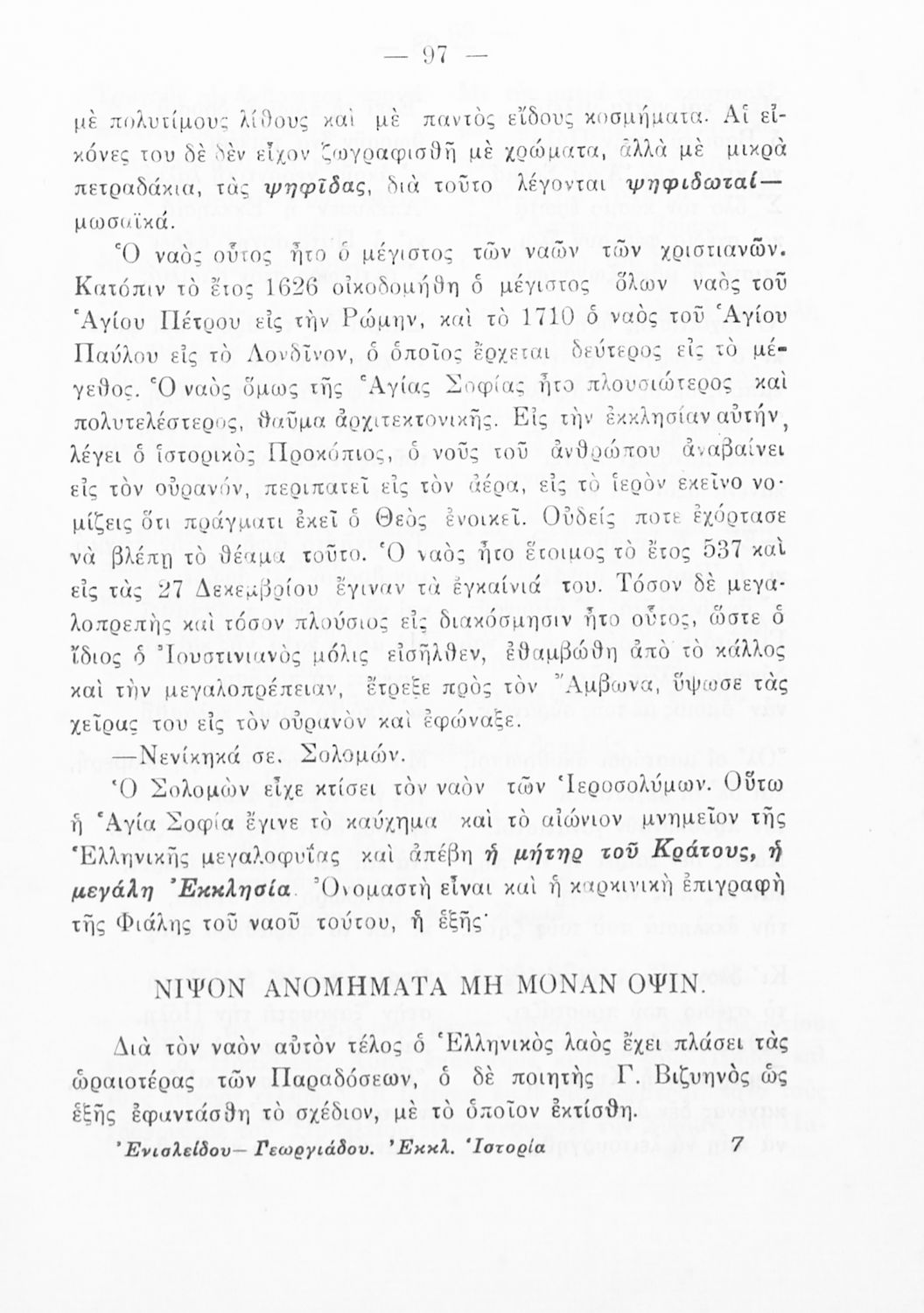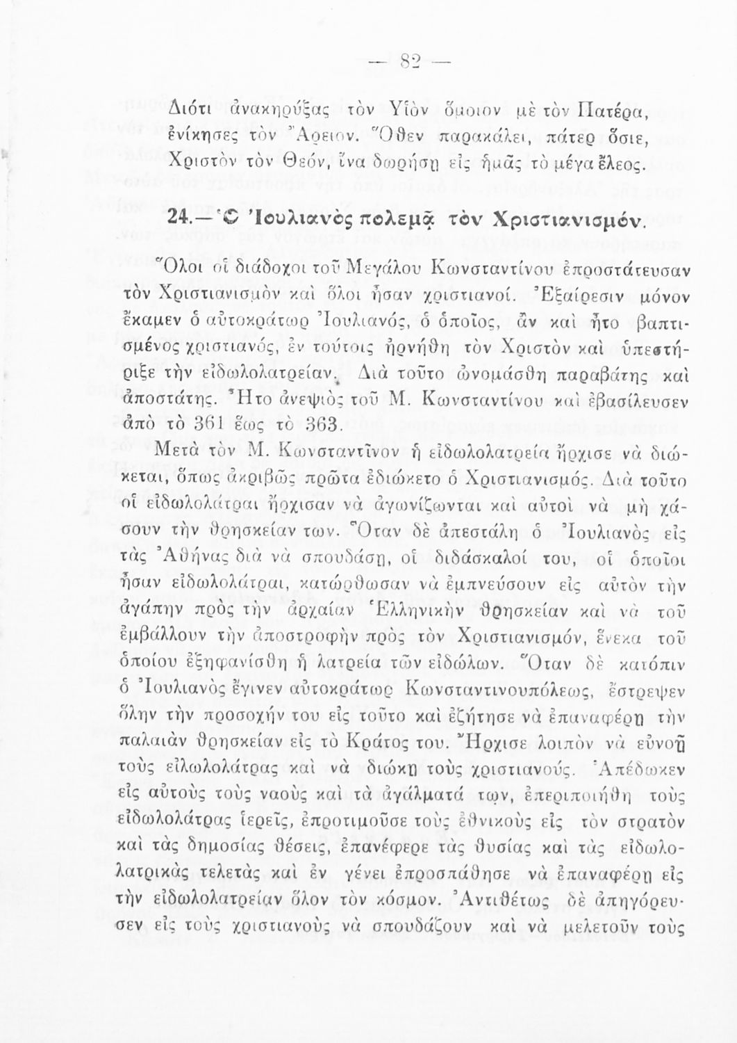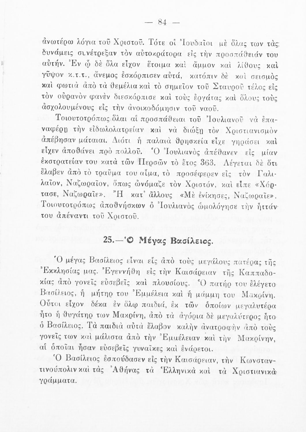 520 ## _aΠαιδαγωγικό βοήθημα Θρησκευτικών που περιλαμβάνει εισαγωγή στο σκοπό και τη μέθοδο διδασκαλίας της εκκλησιαστικής ιστορίας, των προσευχών και απολυτίκιων, και την ερμηνεία των περικοπών των ευαγγελίων. Περιέχει και εκτεταμένη ανασκόπηση της Ορθόδοξης Εκκλησίας από την ίδρυσή της μέχρι την ίδρυση της Εκκλησίας της Ελλάδας, απολυτίκια, προσευχές και τροπάρια.