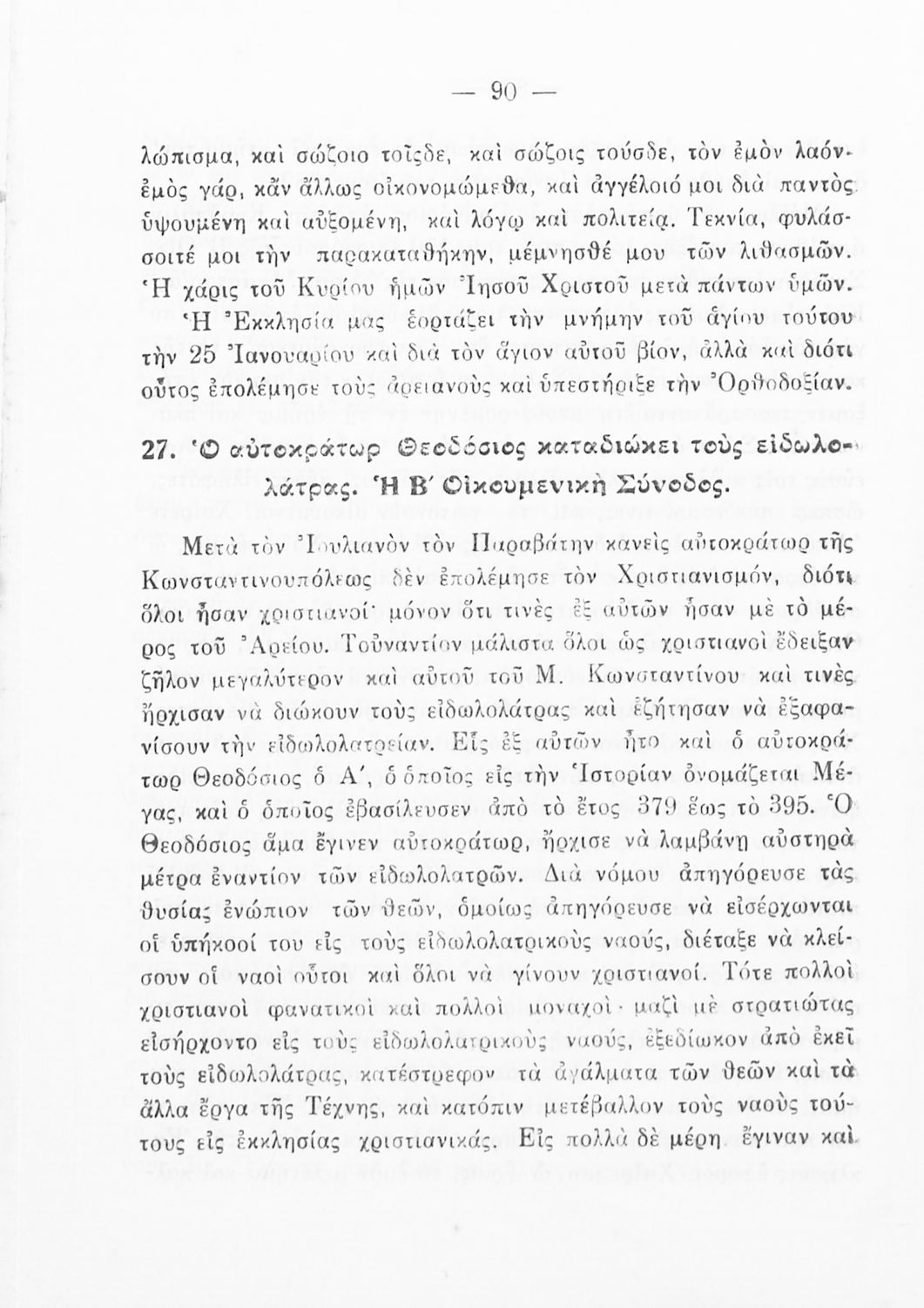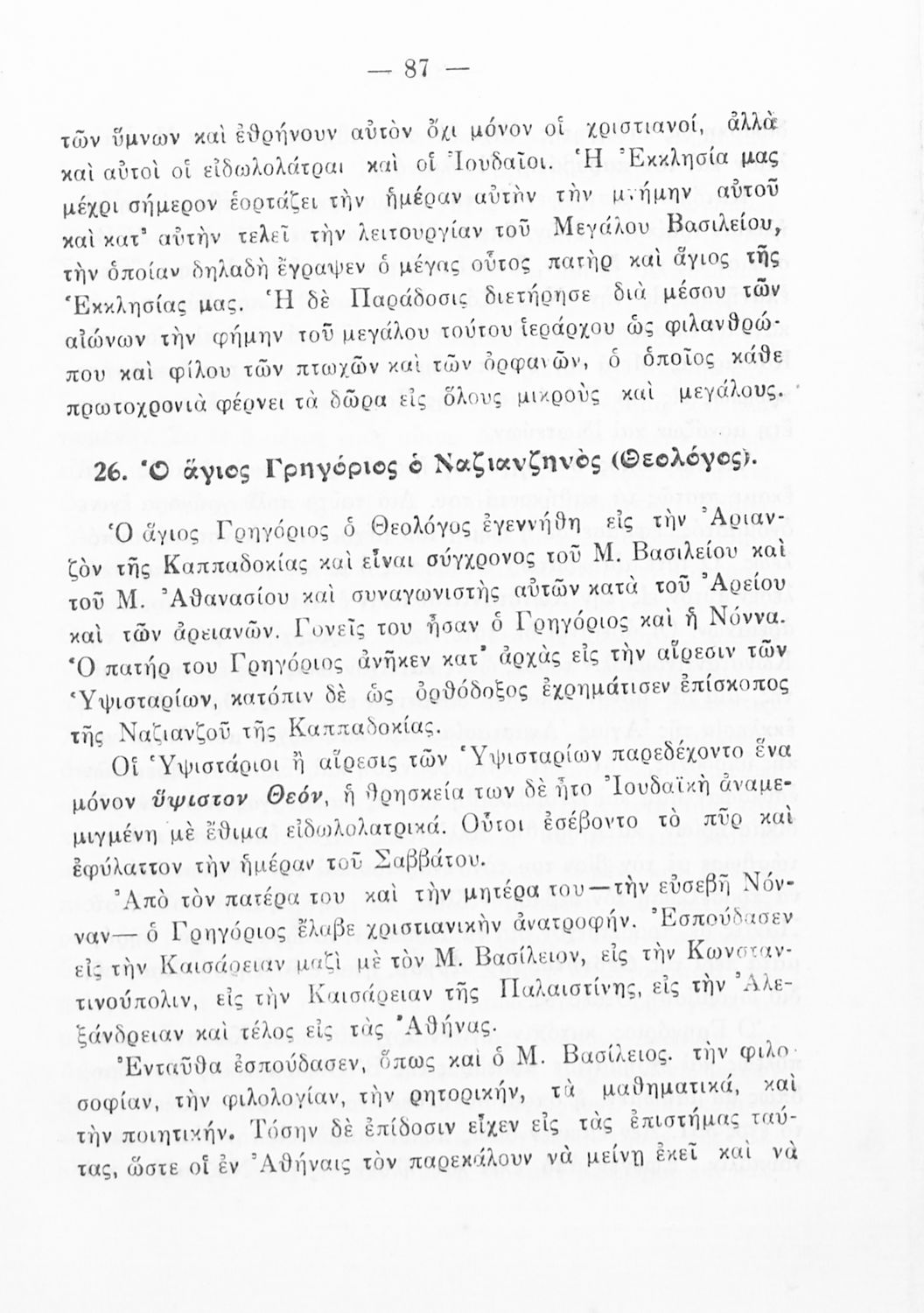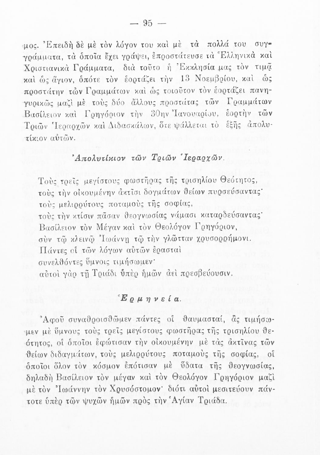 520 ## _aΠαιδαγωγικό βοήθημα Θρησκευτικών που περιλαμβάνει εισαγωγή στο σκοπό και τη μέθοδο διδασκαλίας της εκκλησιαστικής ιστορίας, των προσευχών και απολυτίκιων, και την ερμηνεία των περικοπών των ευαγγελίων. Περιέχει και εκτεταμένη ανασκόπηση της Ορθόδοξης Εκκλησίας από την ίδρυσή της μέχρι την ίδρυση της Εκκλησίας της Ελλάδας, απολυτίκια, προσευχές και τροπάρια.