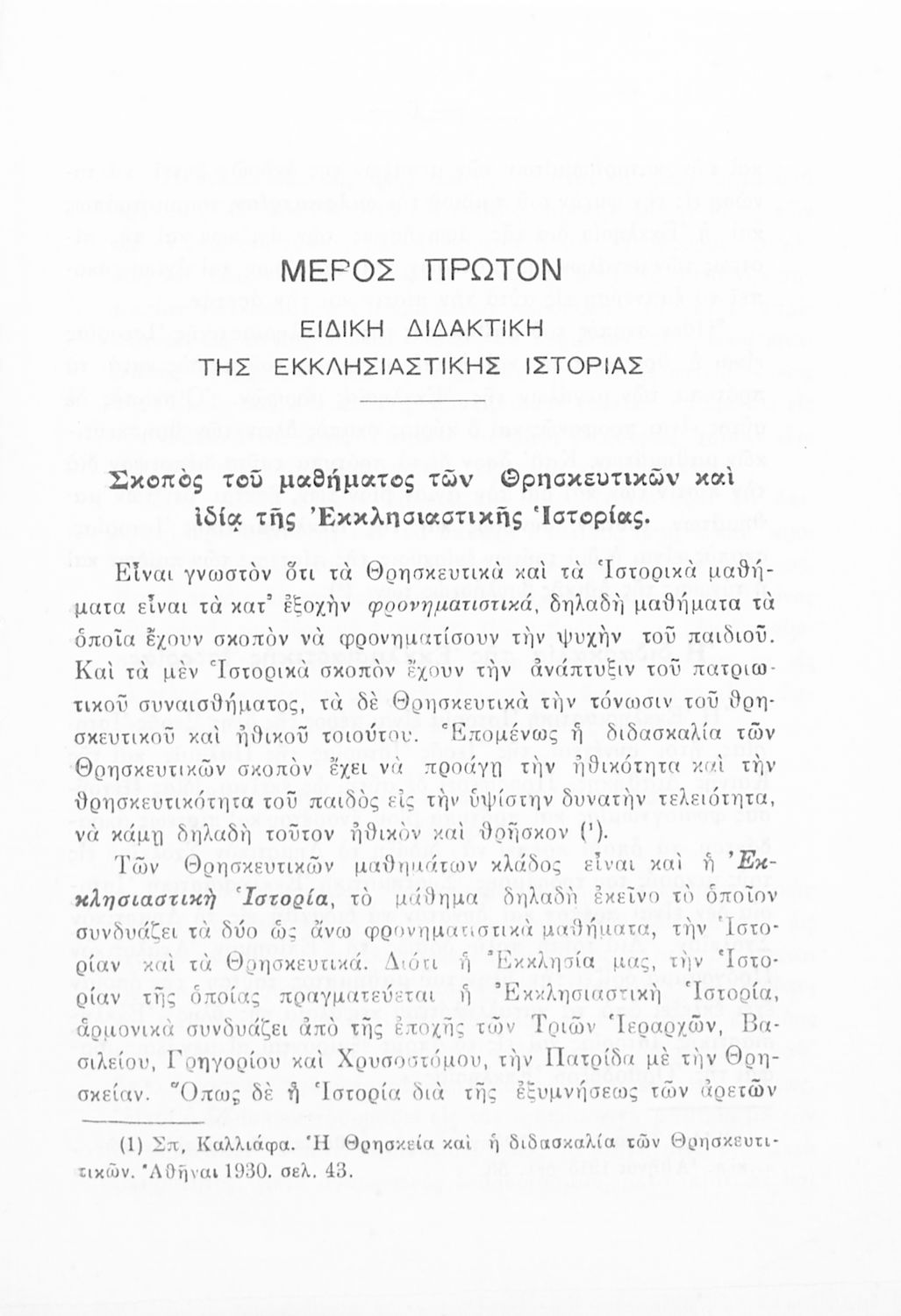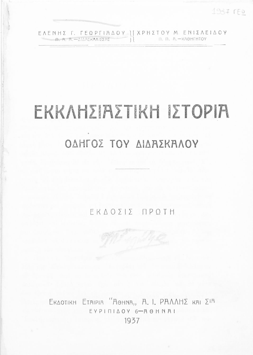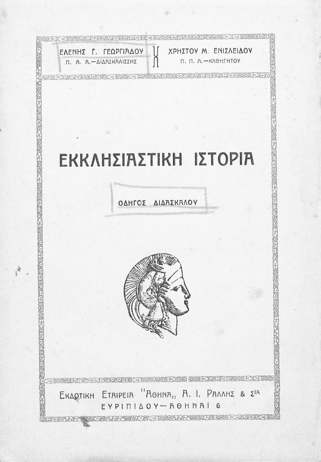 Παιδαγωγικό βοήθημα Θρησκευτικών που περιλαμβάνει εισαγωγή στο σκοπό και τη μέθοδο διδασκαλίας της εκκλησιαστικής ιστορίας, των προσευχών και απολυτίκιων, και την ερμηνεία των περικοπών των ευαγγελίων. Περιέχει και εκτεταμένη ανασκόπηση της Ορθόδοξης Εκκλησίας από την ίδρυσή της μέχρι την ίδρυση της Εκκλησίας της Ελλάδας, απολυτίκια, προσευχές και τροπάρια.