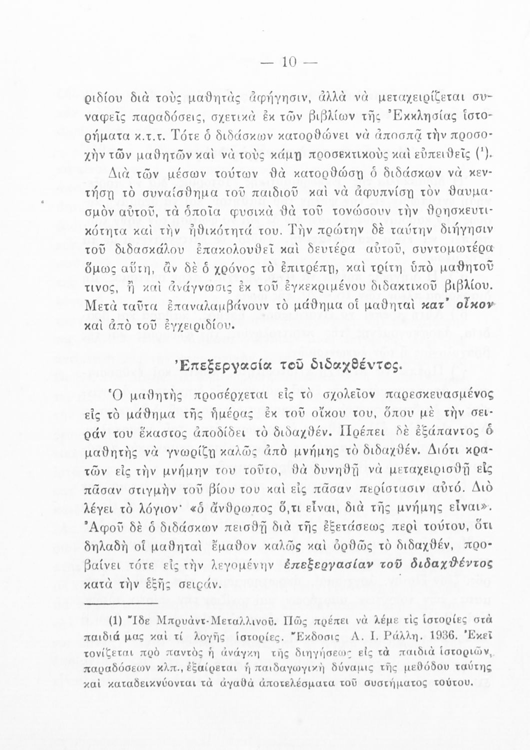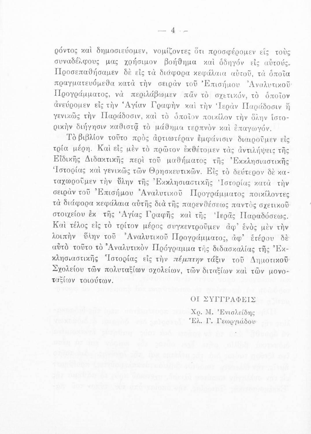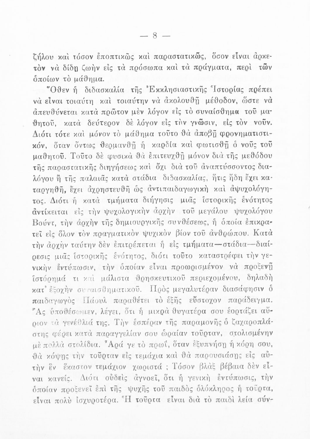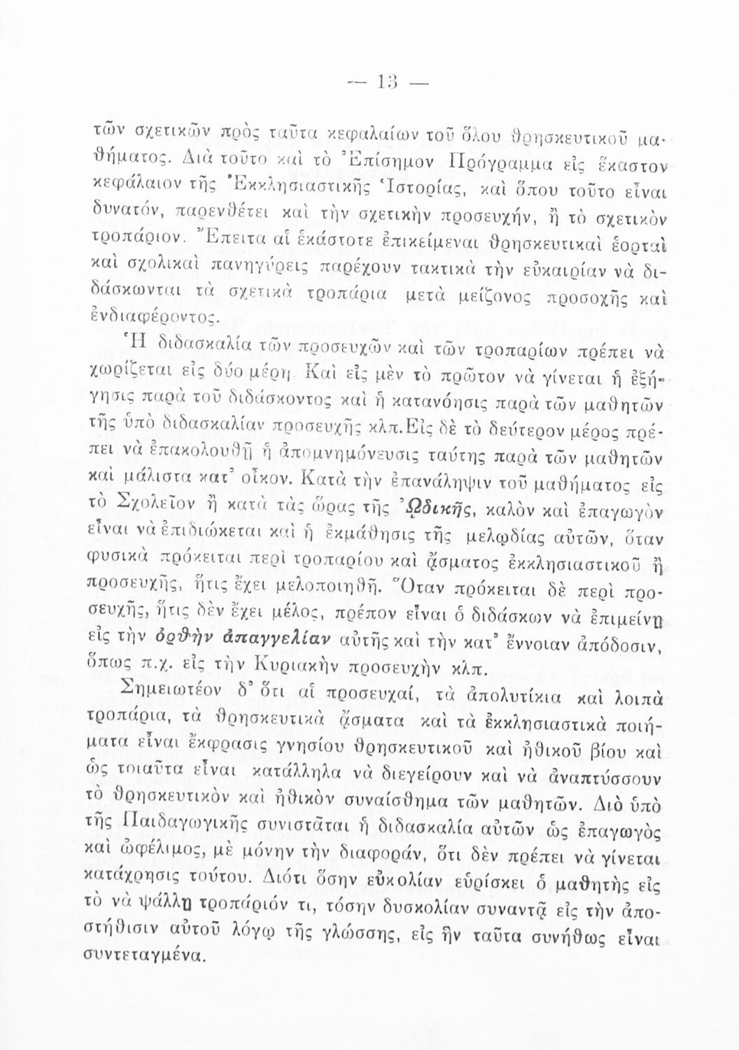 520 ## _aΠαιδαγωγικό βοήθημα Θρησκευτικών που περιλαμβάνει εισαγωγή στο σκοπό και τη μέθοδο διδασκαλίας της εκκλησιαστικής ιστορίας, των προσευχών και απολυτίκιων, και την ερμηνεία των περικοπών των ευαγγελίων. Περιέχει και εκτεταμένη ανασκόπηση της Ορθόδοξης Εκκλησίας από την ίδρυσή της μέχρι την ίδρυση της Εκκλησίας της Ελλάδας, απολυτίκια, προσευχές και τροπάρια.