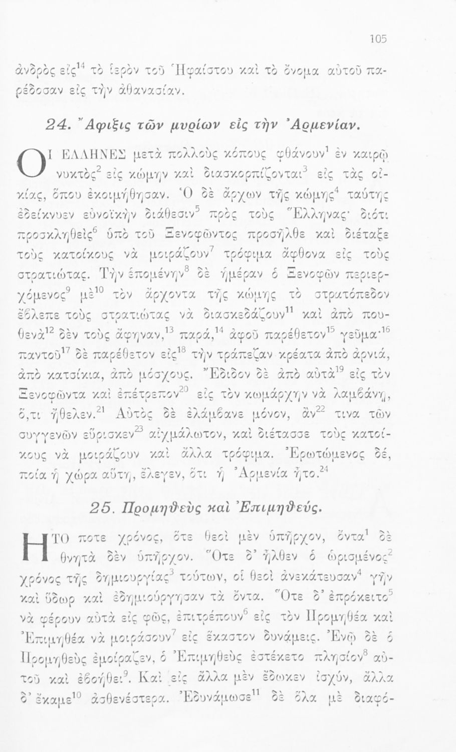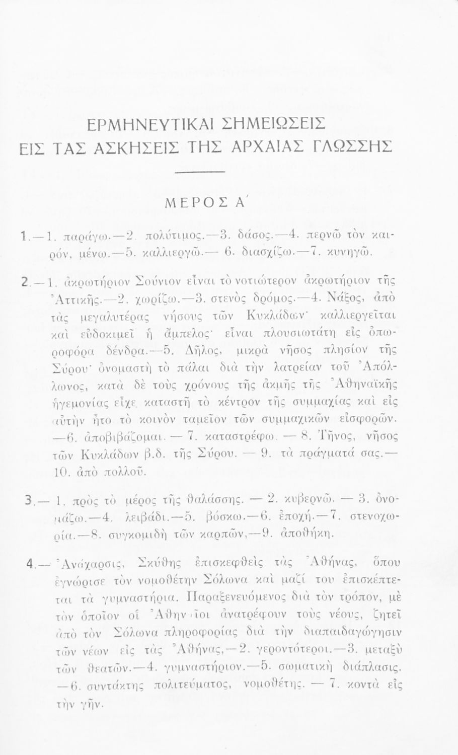 Σχολικό εγχειρίδιο Αρχαίων Ελληνικών για τις Α΄ και Β΄ τάξεις των Εξαταξίων Γυμνασίων που περιλαμβάνει σύντομα κείμενα εμπνευσμένα από την αρχαία ελληνική ιστορία και μυθολογία που χρησιμοποιούνται για τη διδασκαλία γραμματικών και συντακτικών φαινομένων καθώς και ερμηνευτικές σημειώσεις.