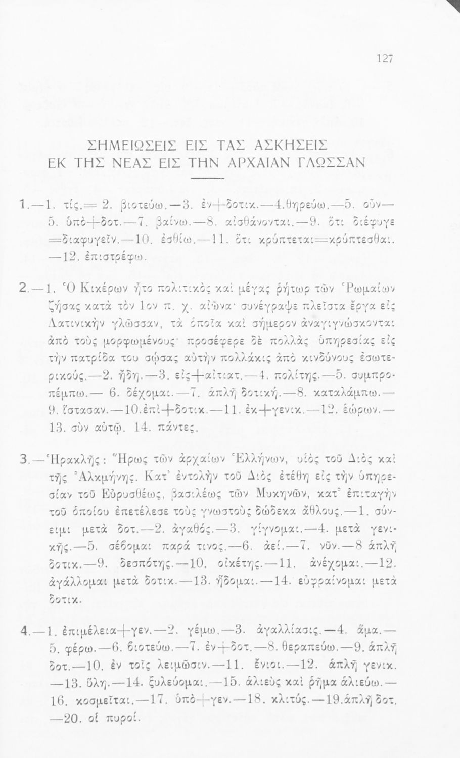 Σχολικό εγχειρίδιο Αρχαίων Ελληνικών Γυμνασίου που περιέχει κείμενα βασισμένα στην αρχαία ελληνική ιστορία και μυθολογία και γραμματικές, συντακτικές και ετυμολογικές παρατηρήσεις.