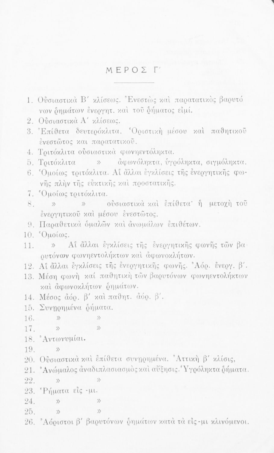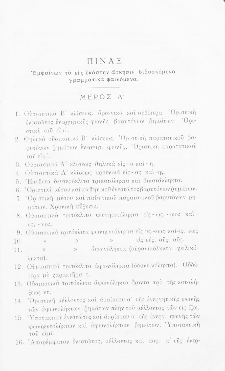 Σχολικό εγχειρίδιο Αρχαίων Ελληνικών Α΄, Β΄, Γ' Ελληνικού Σχολείου που αποτελεί γραμματική της αρχαίας ελληνικής και είναι χωρισμένο στο φθογγολογικό και το τυπολογικό μέρος. Περιέχει και σύντομα κείμενα που ...
