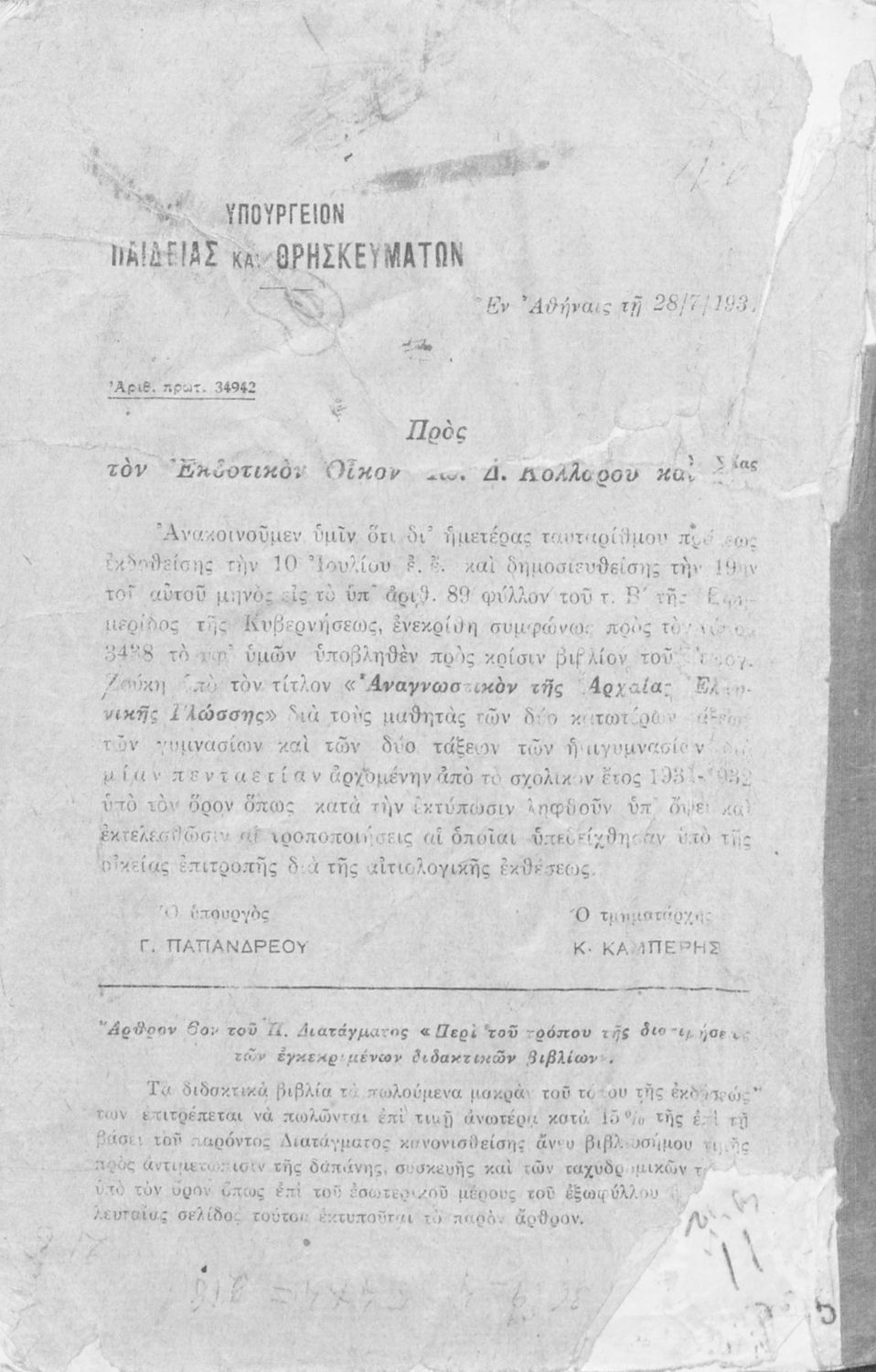 Υπουργική απόφαση / Σύμβαση: 34942/28/7/1931