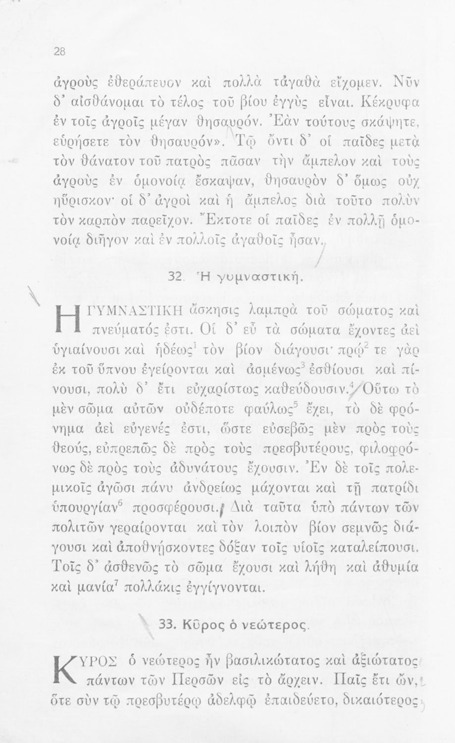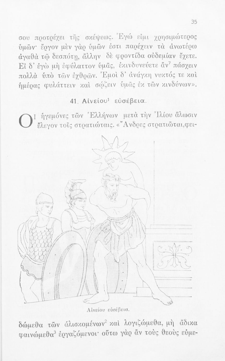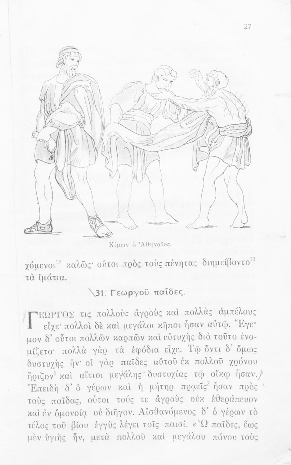 Σχολικό εγχειρίδιο Αρχαίων Ελληνικών Γυμνασίου που περιέχει κείμενα βασισμένα στην αρχαία ελληνική ιστορία και μυθολογία και γραμματικές, συντακτικές και ετυμολογικές παρατηρήσεις.