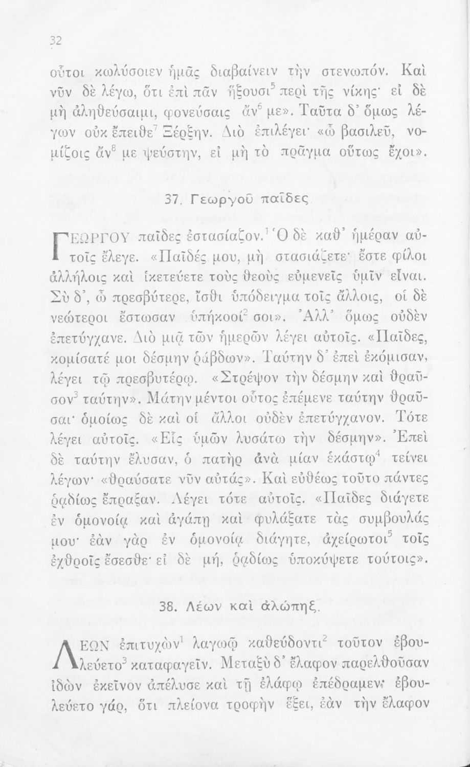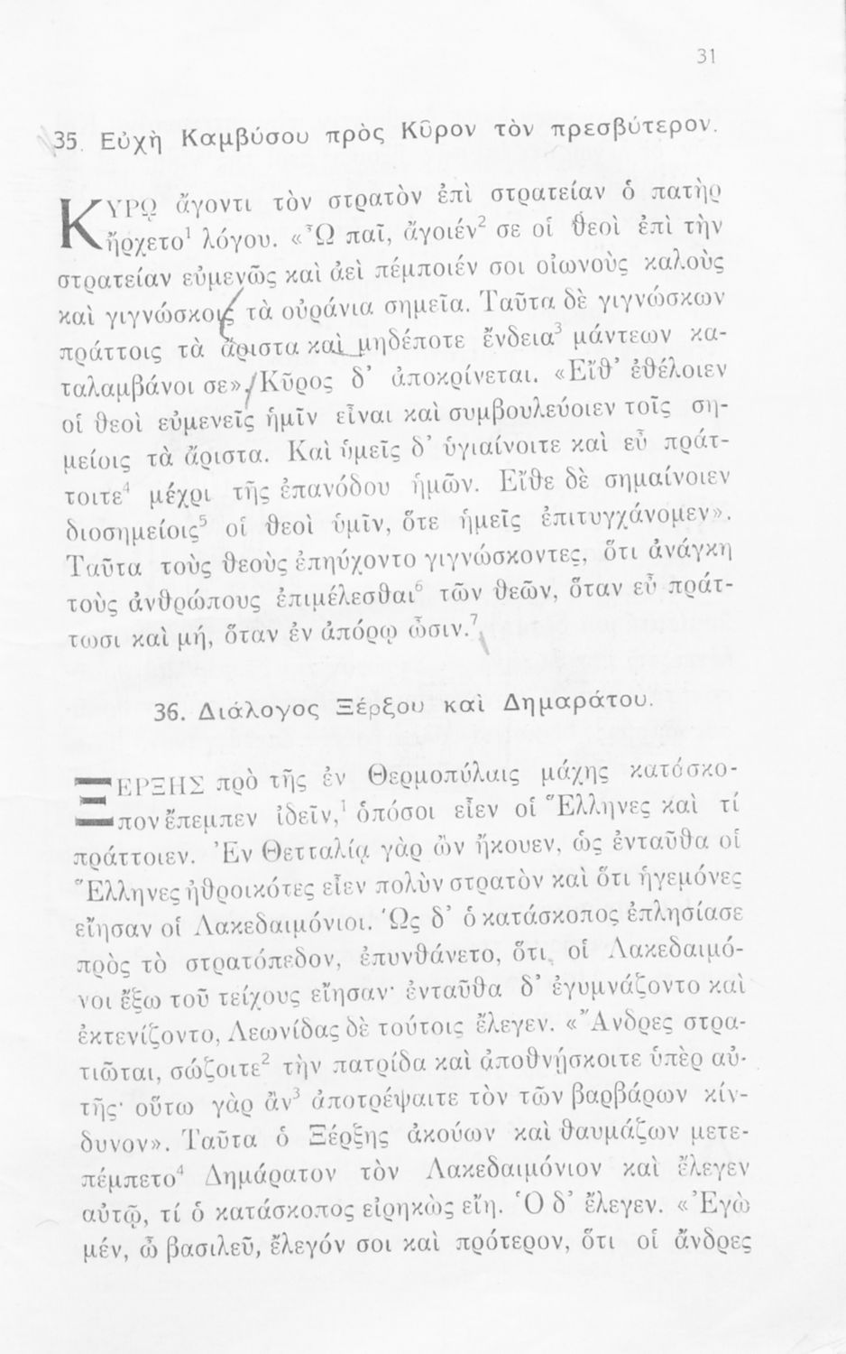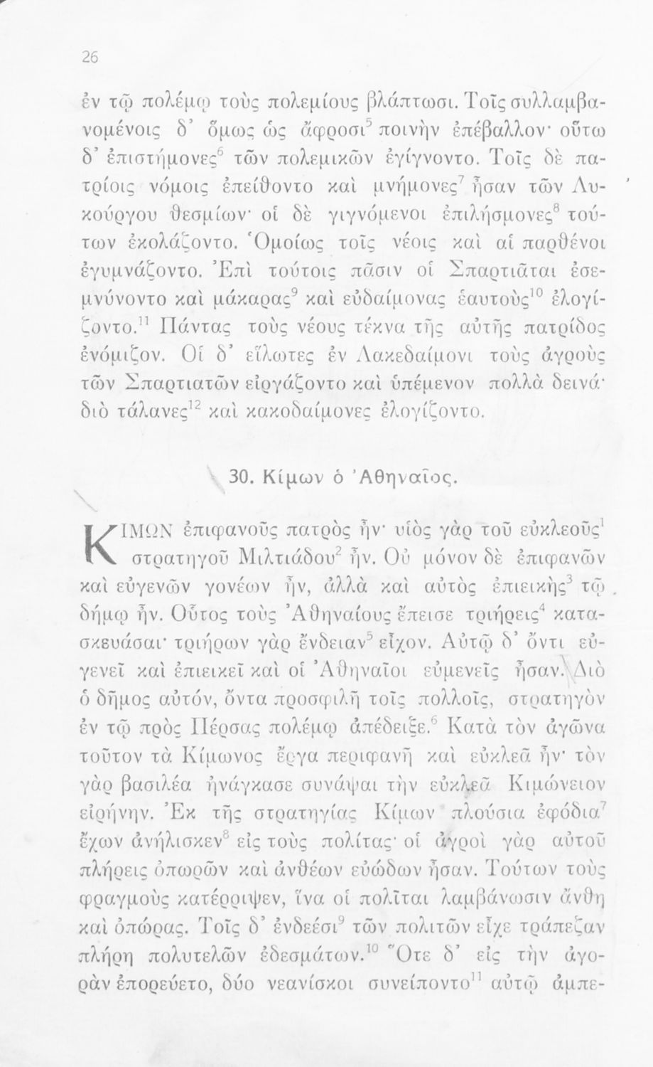 Σχολικό εγχειρίδιο Αρχαίων Ελληνικών Γυμνασίου που περιέχει κείμενα βασισμένα στην αρχαία ελληνική ιστορία και μυθολογία και γραμματικές, συντακτικές και ετυμολογικές παρατηρήσεις.