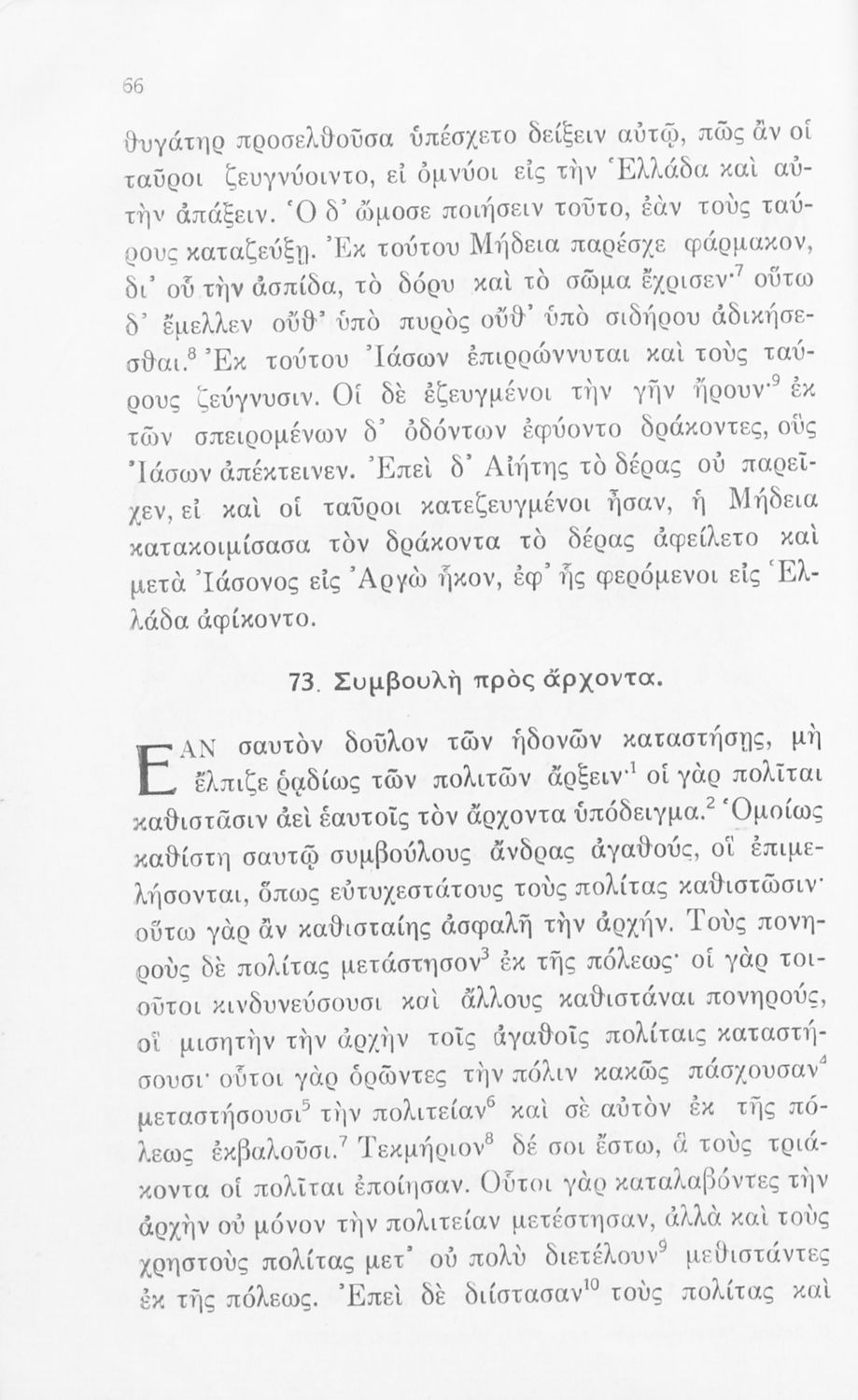 Σχολικό εγχειρίδιο Αρχαίων Ελληνικών για τις Α΄ και Β΄ τάξεις των Εξαταξίων Γυμνασίων που περιλαμβάνει σύντομα κείμενα εμπνευσμένα από την αρχαία ελληνική ιστορία και μυθολογία που χρησιμοποιούνται για τη διδασκαλία γραμματικών και συντακτικών φαινομένων καθώς και ερμηνευτικές σημειώσεις.