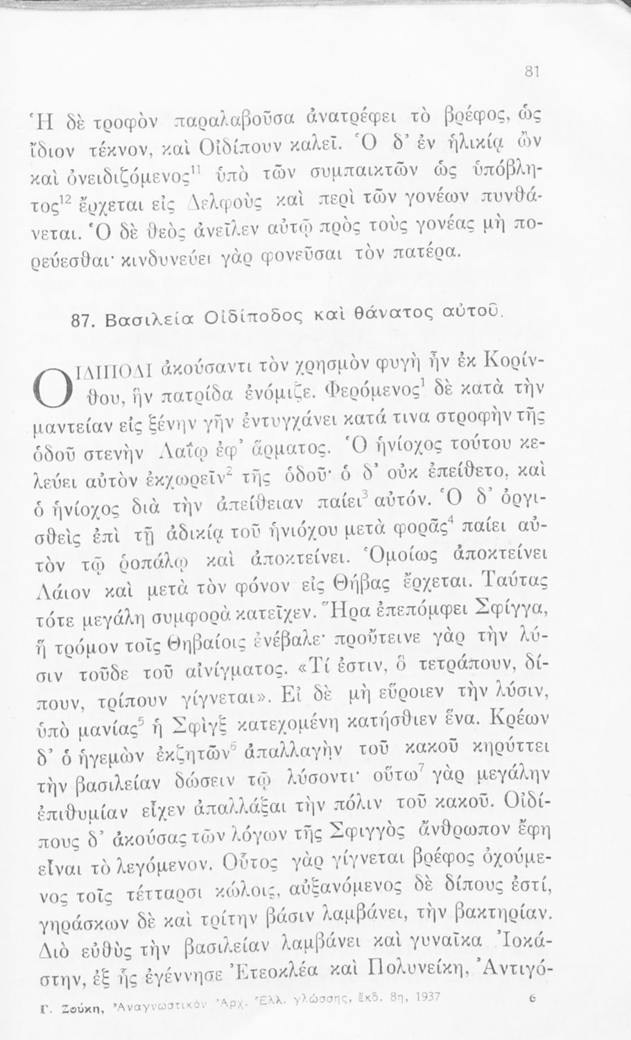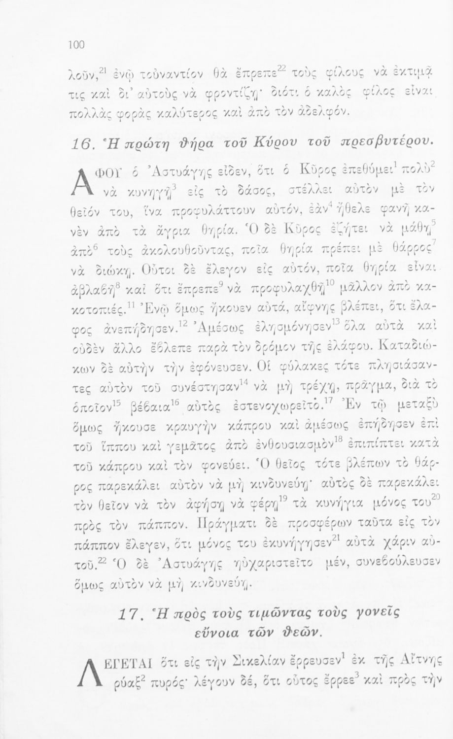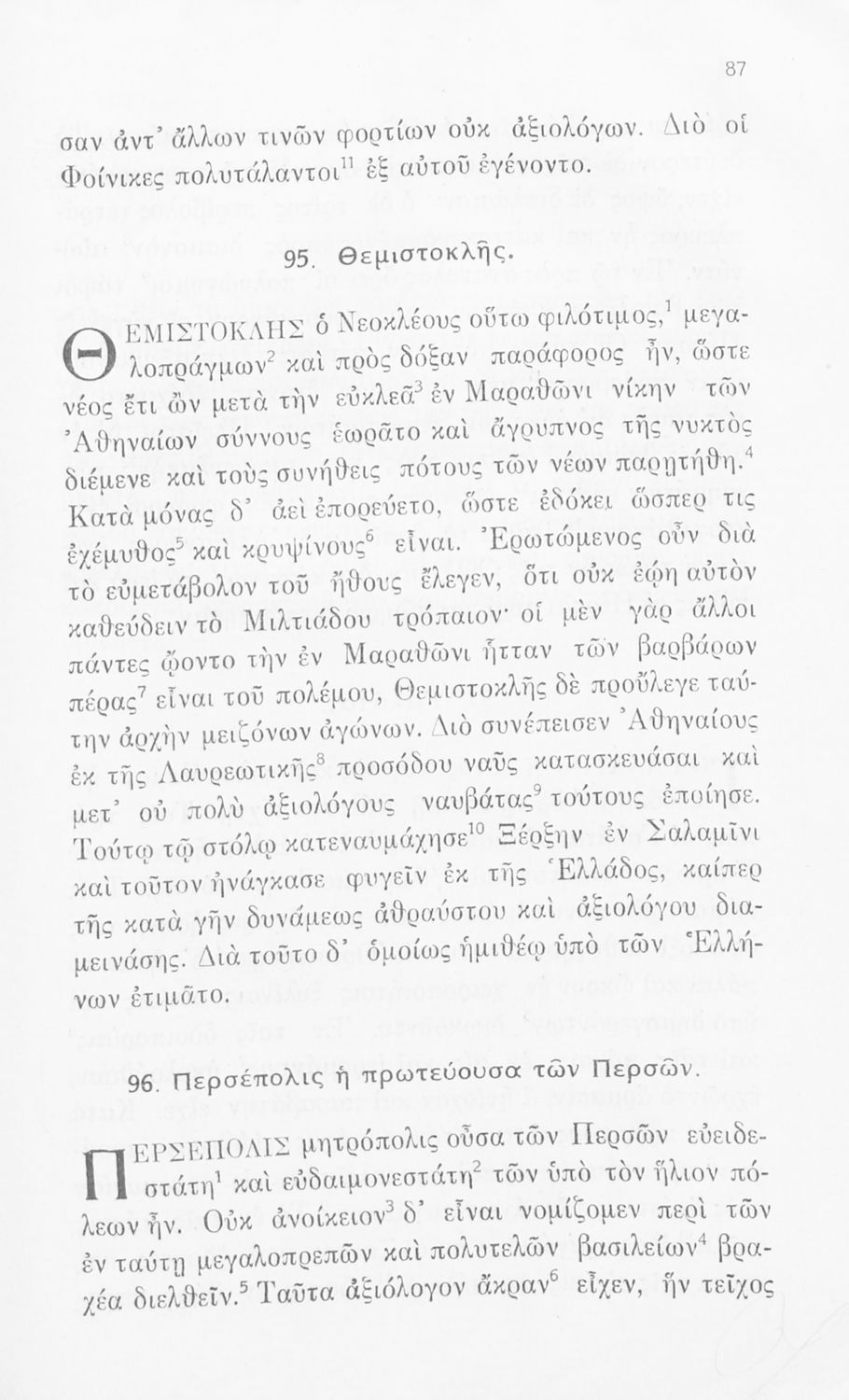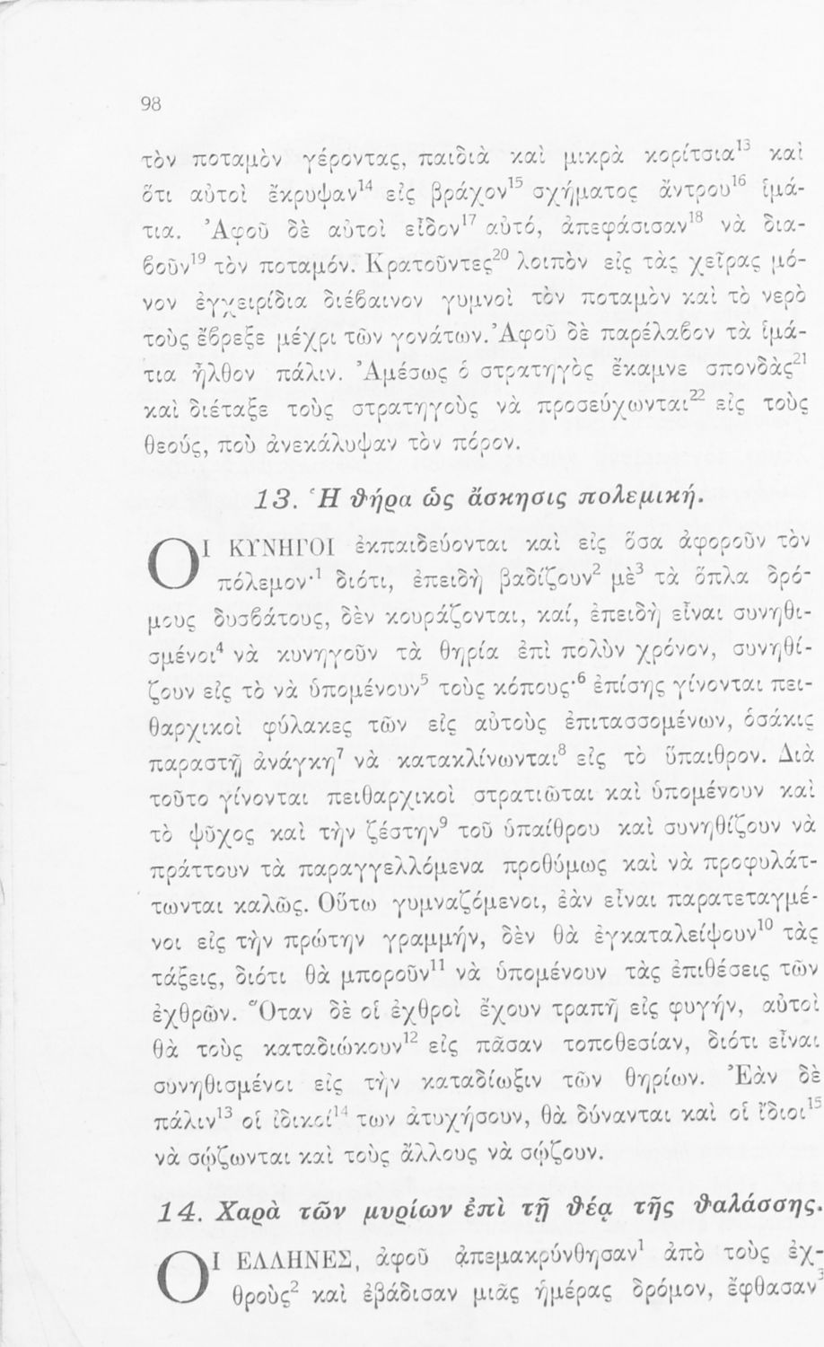 Σχολικό εγχειρίδιο Αρχαίων Ελληνικών Γυμνασίου που περιέχει κείμενα βασισμένα στην αρχαία ελληνική ιστορία και μυθολογία και γραμματικές, συντακτικές και ετυμολογικές παρατηρήσεις.