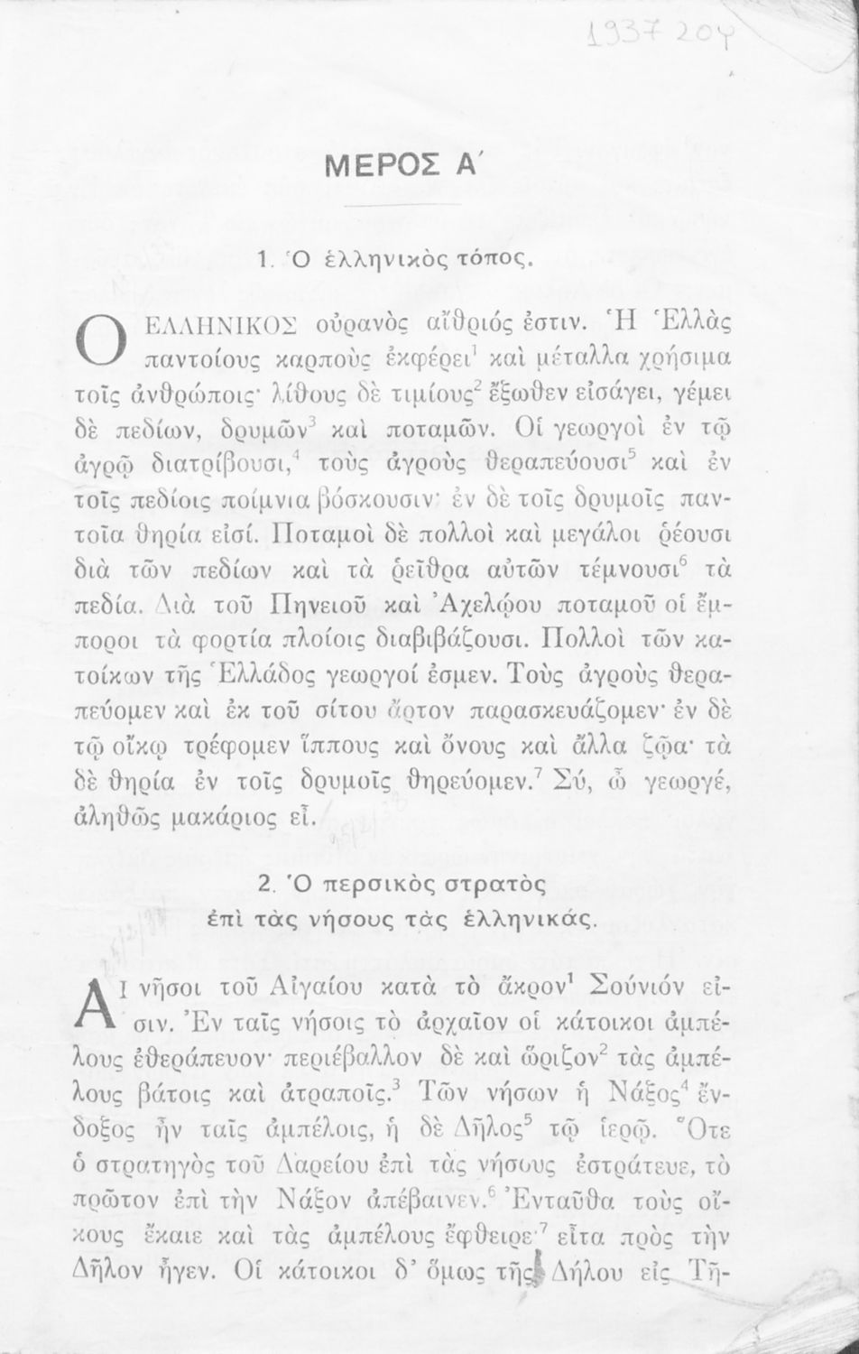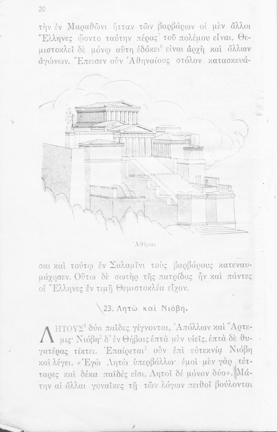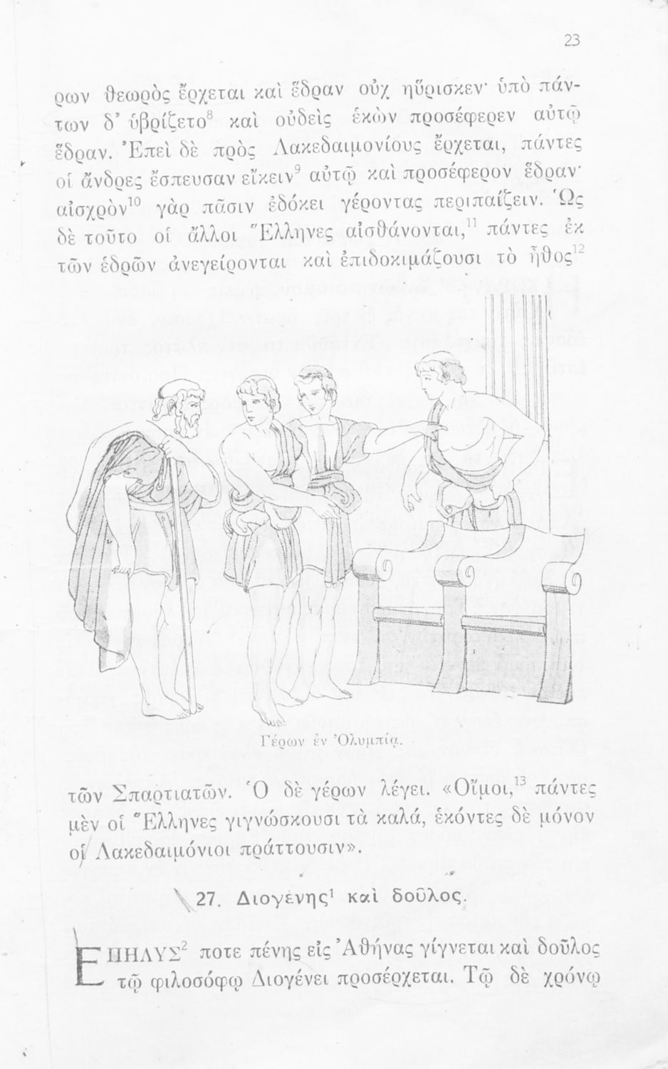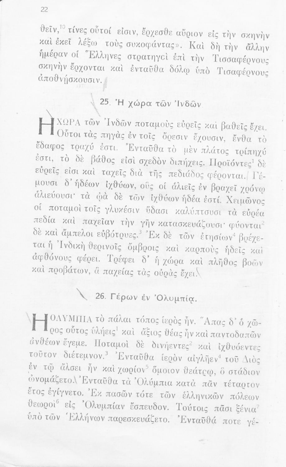 Σχολικό εγχειρίδιο Αρχαίων Ελληνικών για τις Α΄ και Β΄ τάξεις των Εξαταξίων Γυμνασίων που περιλαμβάνει σύντομα κείμενα εμπνευσμένα από την αρχαία ελληνική ιστορία και μυθολογία που χρησιμοποιούνται για τη διδασκαλία γραμματικών και συντακτικών φαινομένων καθώς και ερμηνευτικές σημειώσεις.