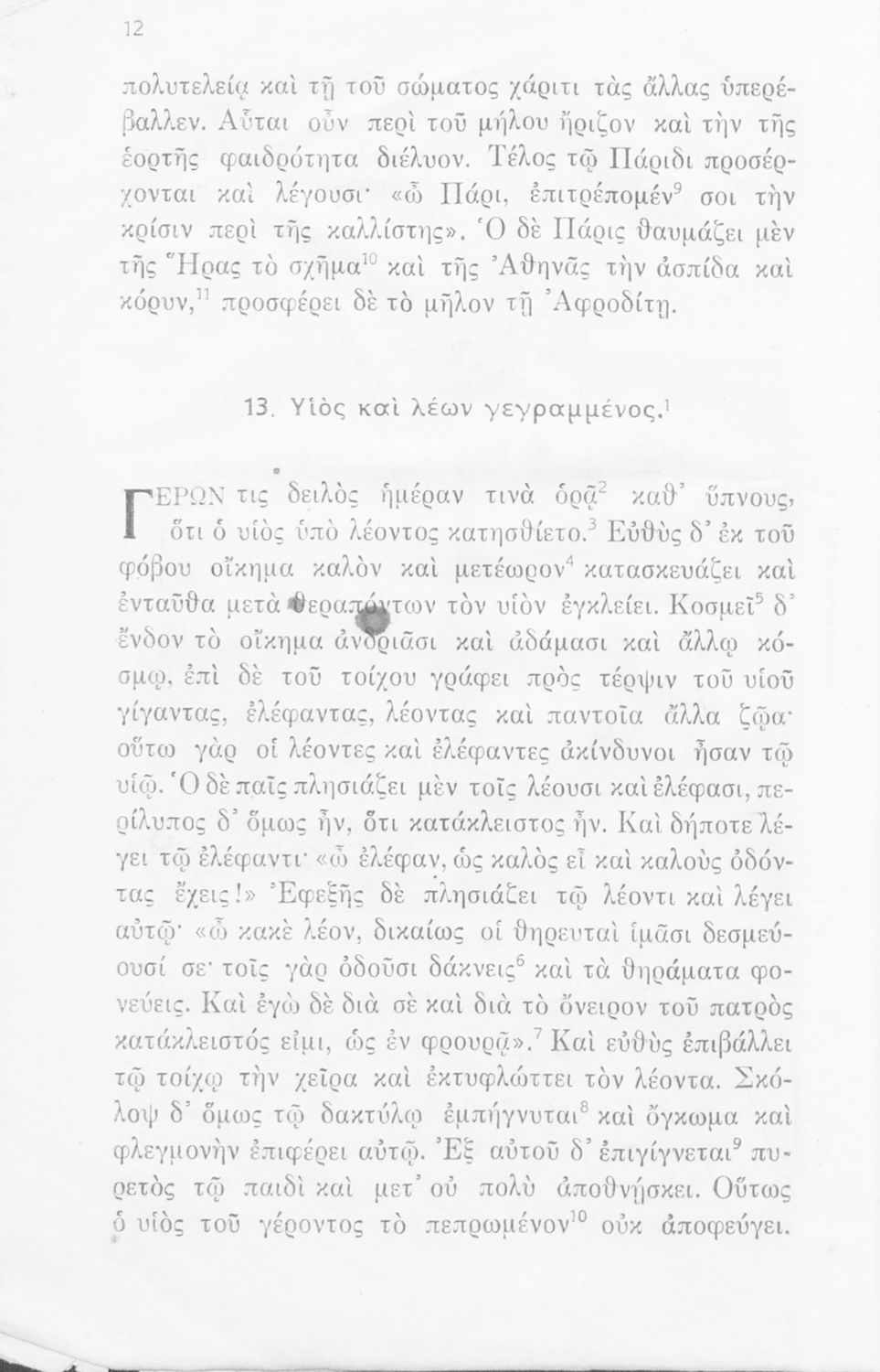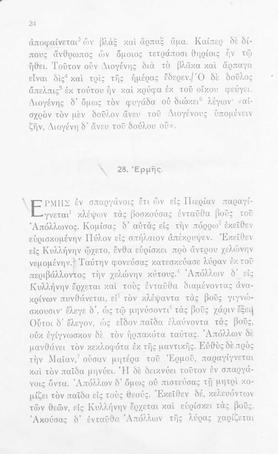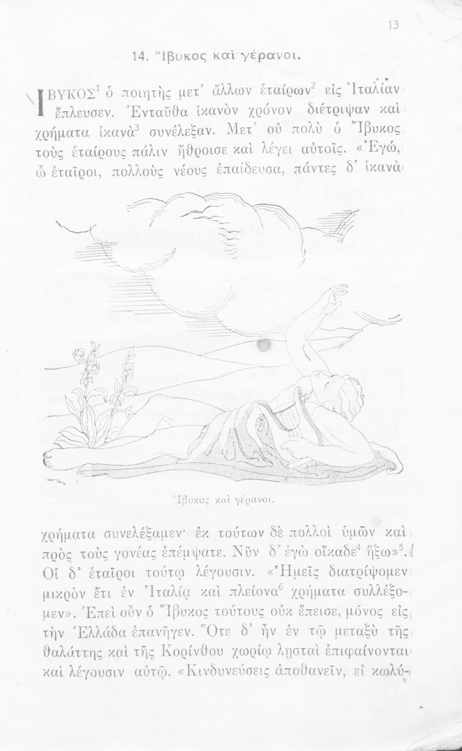 Σχολικό εγχειρίδιο Αρχαίων Ελληνικών για τις Α΄ και Β΄ τάξεις των Εξαταξίων Γυμνασίων που περιλαμβάνει σύντομα κείμενα εμπνευσμένα από την αρχαία ελληνική ιστορία και μυθολογία που χρησιμοποιούνται για τη διδασκαλία γραμματικών και συντακτικών φαινομένων καθώς και ερμηνευτικές σημειώσεις.