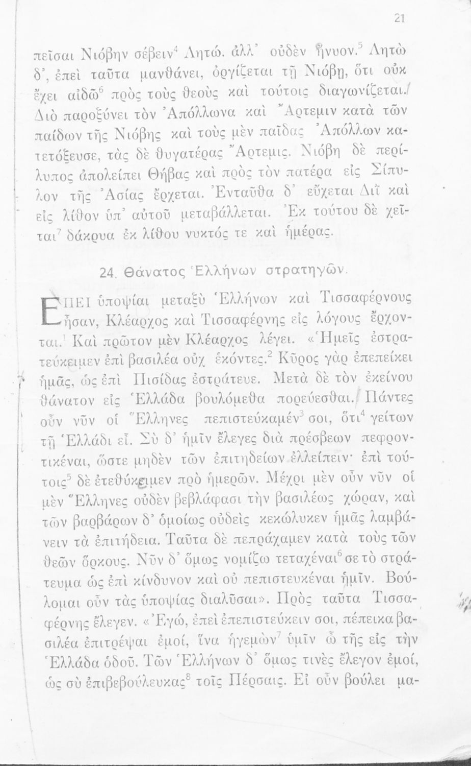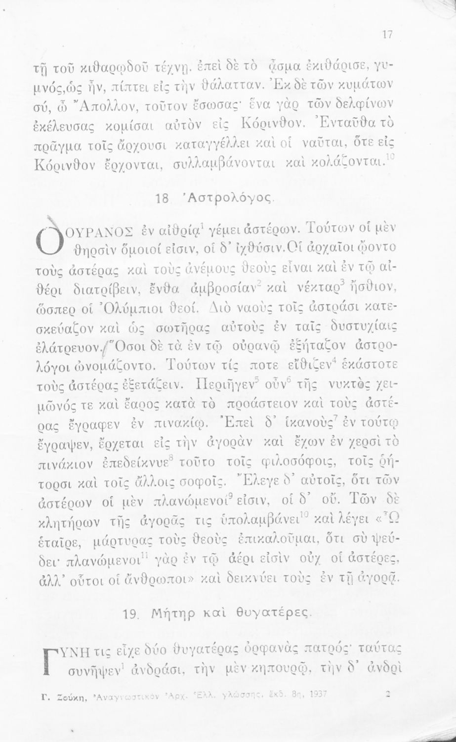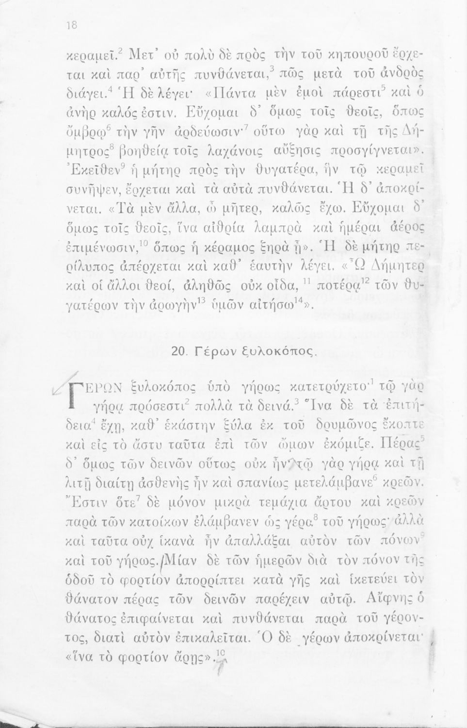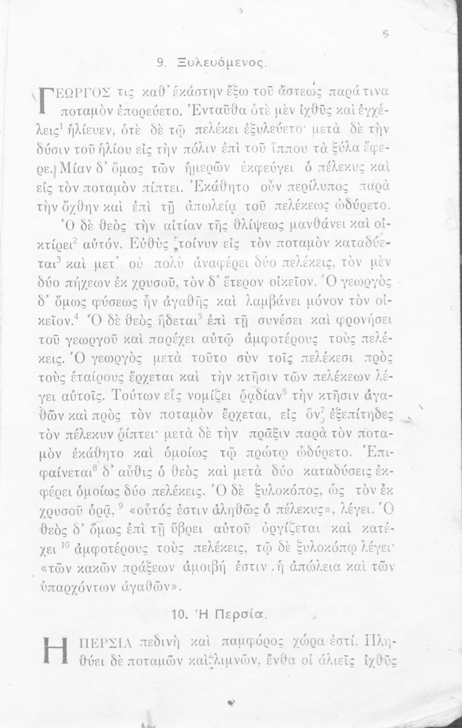 Σχολικό εγχειρίδιο Αρχαίων Ελληνικών για τις Α΄ και Β΄ τάξεις των Εξαταξίων Γυμνασίων που περιλαμβάνει σύντομα κείμενα εμπνευσμένα από την αρχαία ελληνική ιστορία και μυθολογία που χρησιμοποιούνται για τη διδασκαλία γραμματικών και συντακτικών φαινομένων καθώς και ερμηνευτικές σημειώσεις.