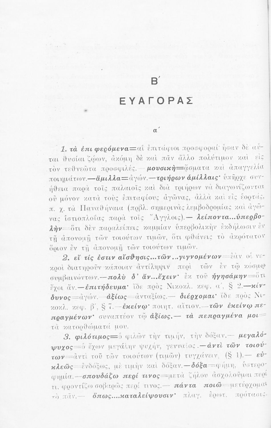 Σχολικό εγχειρίδιο Αρχαίων Ελληνικών Γ΄ Γυμνασίου που περιλαμβάνει σύντομο βιογραφικό σημείωμα του Ισοκράτη, τους Λόγους του Προς Νικοκλέα και Ευαγόρας και ερμηνευτικά και λεξιλογικά σχόλια.