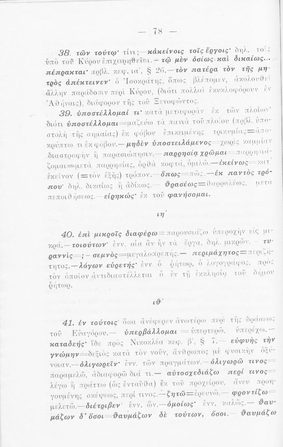 Βαθμίδα εκπαίδευσης: Δευτεροβάθμια Τάξη: Γ' Γυμνασίου Μάθημα: Αρχαία Ελληνικά Γλώσσα: Καθαρεύουσα Παρουσίαση περιεχομένου: Σχολικό εγχειρίδιο Αρχαίων Ελληνικών Γ΄ Γυμνασίου που περιλαμβάνει σύντομο βιογραφικό σημείωμα του Ισοκράτη, τους Λόγους του Προς Νικοκλέα και Ευαγόρας και ερμηνευτικά και λεξιλογικά σχόλια. |
