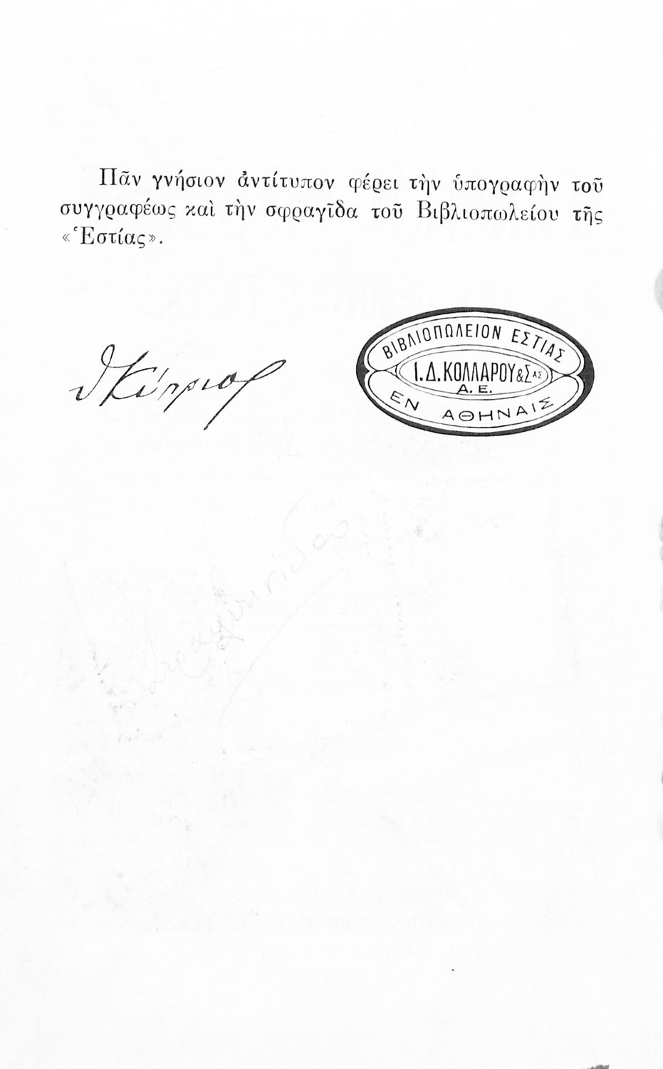 Εκδότης: Ιωάννης Δ. Κολλάρος και ΣΙΑ, Βιβλιοπωλείο της "Εστίας"