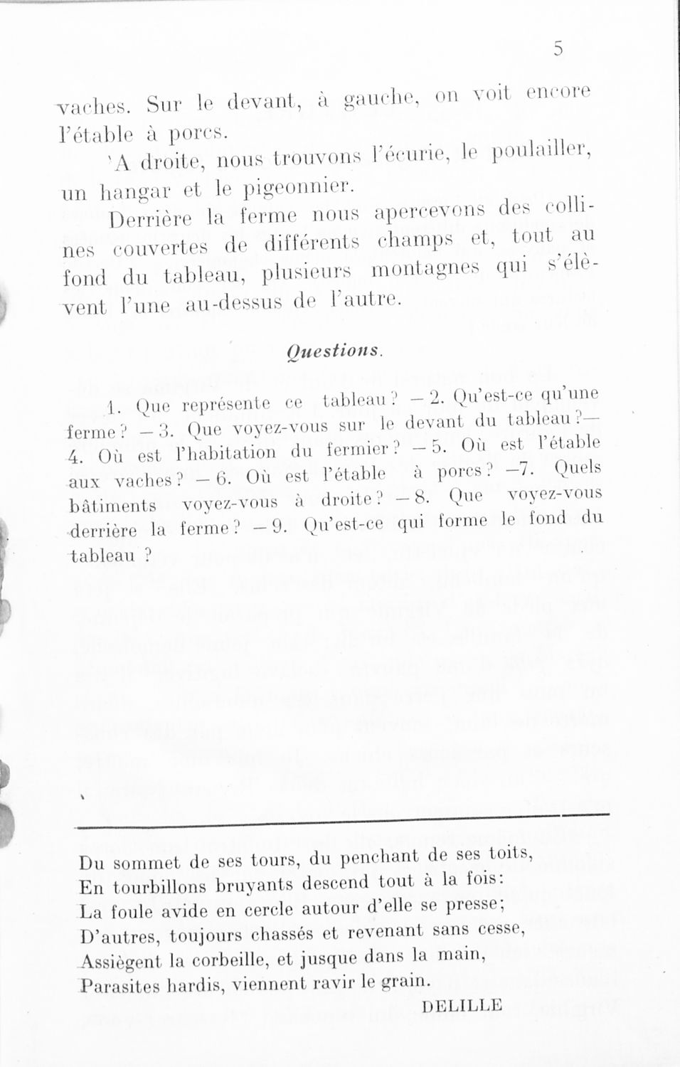 Σχολικό εγχειρίδιο Γαλλικών για την Ε΄ Γυμνασίου που περιλαμβάνει πεζά, ποιήματα, αποσπάσματα από θεατρικά έργα, βιογραφικά σημειώματα των συγγραφέων, γραμματικές ασκήσεις, επεξηγηματικές σημειώσεις και λεξιλόγιο.