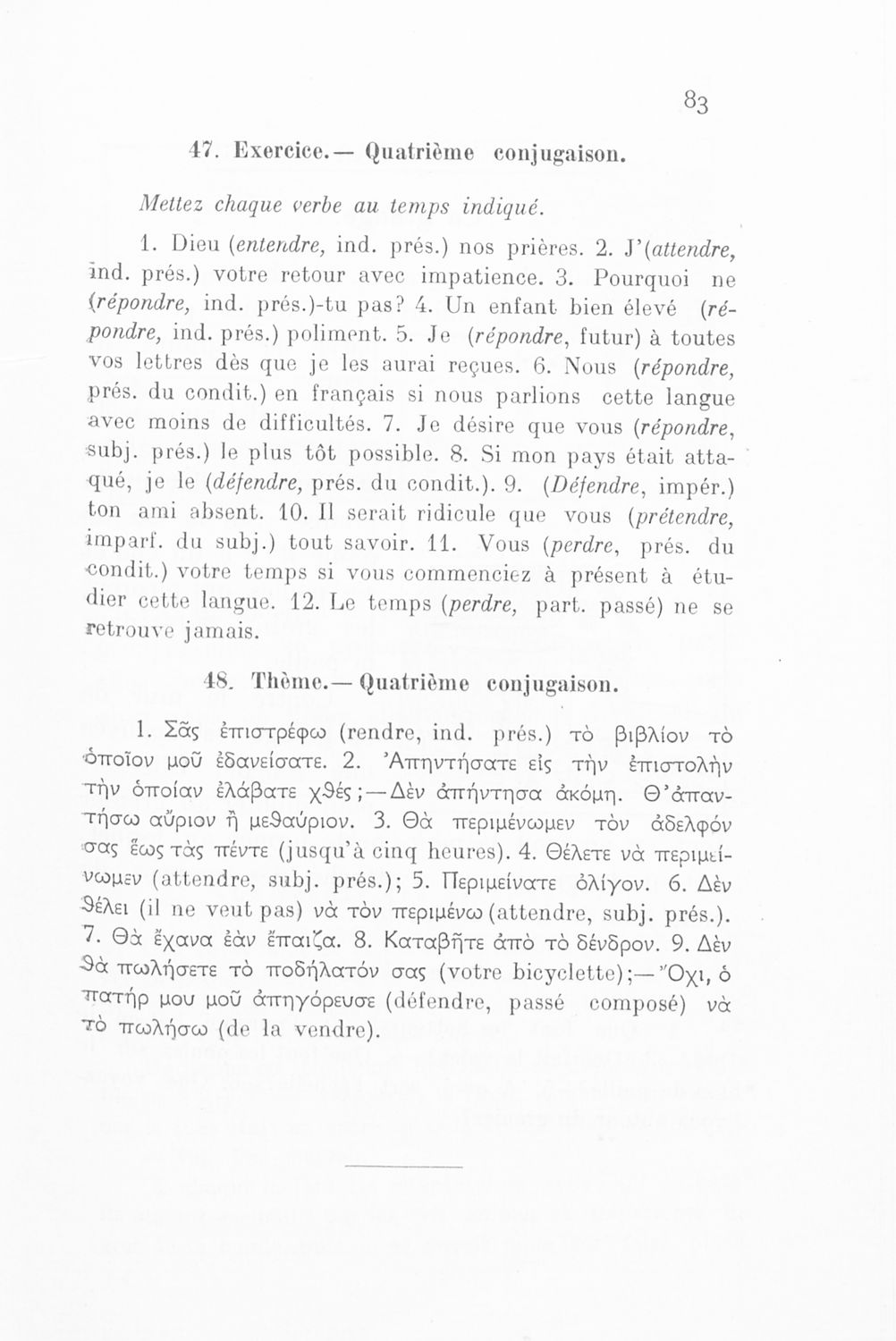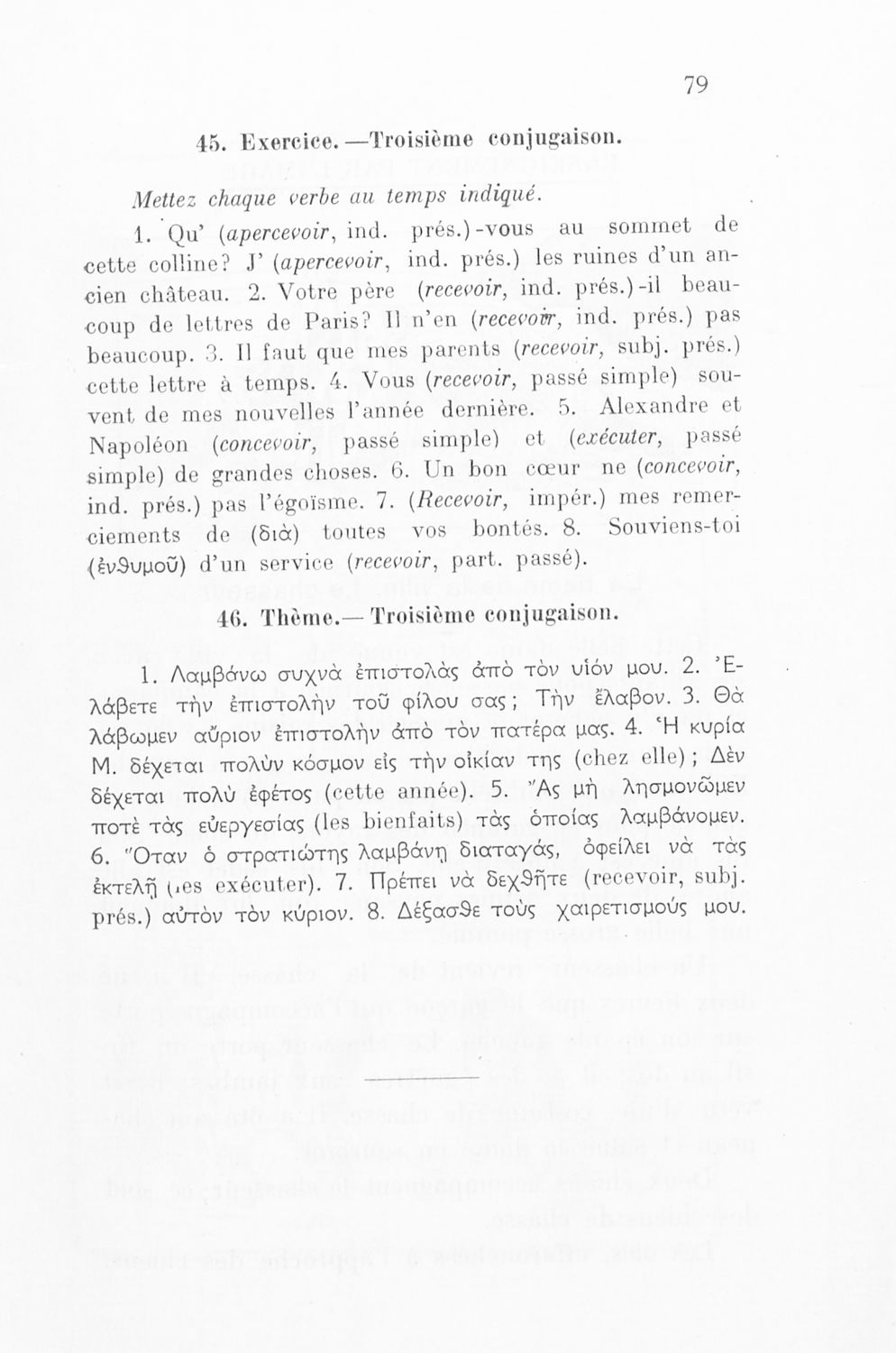 Σχολικό εγχειρίδιο Γαλλικών Γ΄ Γυμνασίου που περιλαμβάνει γραμματικούς και συντακτικούς κανόνες, κείμενα και τις μεταφράσεις τους στην καθαρεύουσα. Περιέχει και λεξιλόγιο.