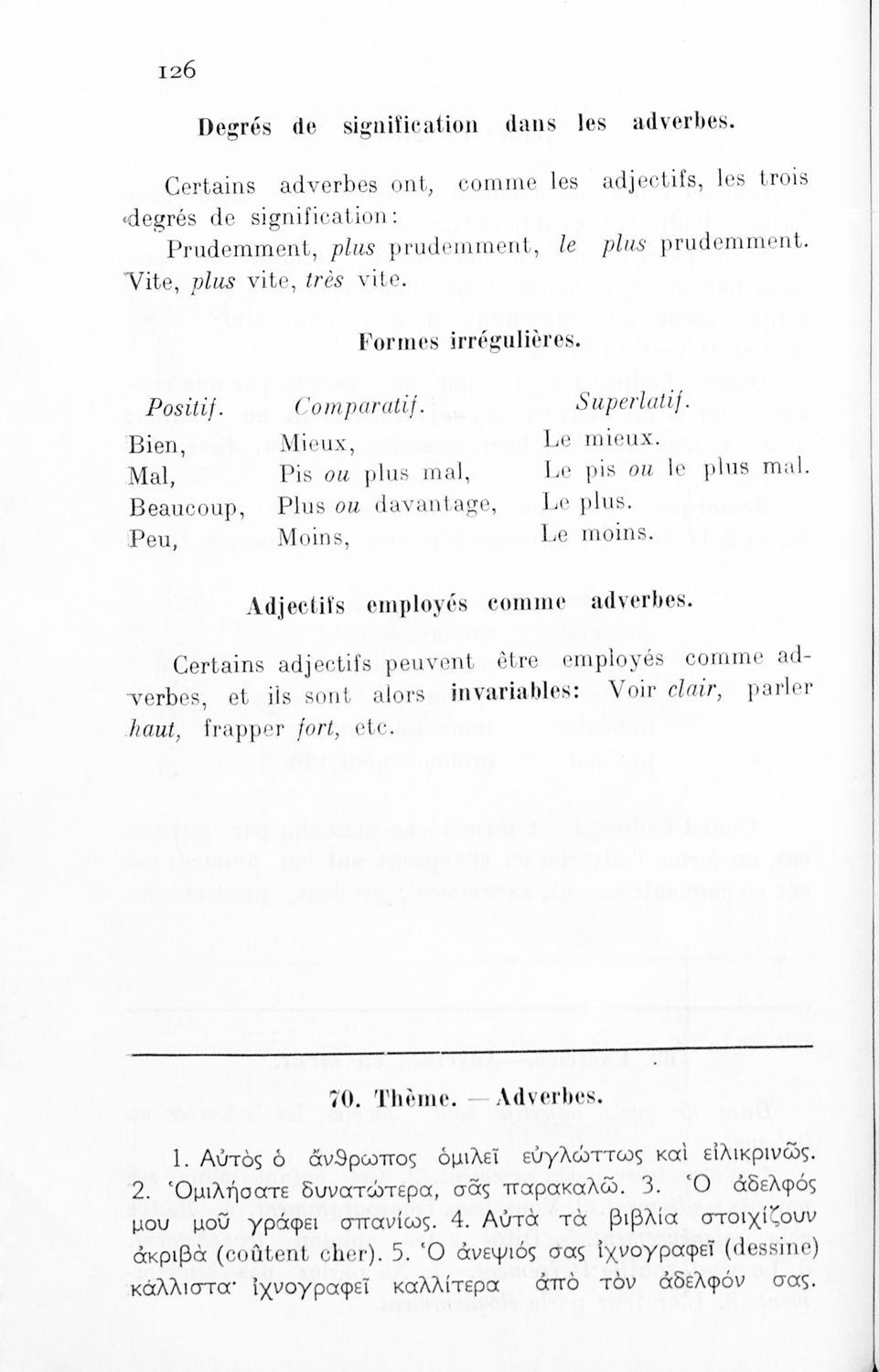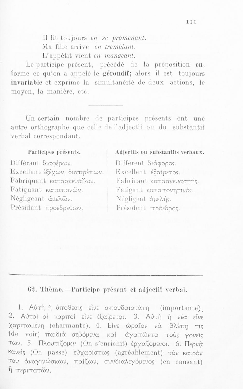 Σχολικό εγχειρίδιο Γαλλικών Γ΄ Γυμνασίου που περιλαμβάνει γραμματικούς και συντακτικούς κανόνες, κείμενα και τις μεταφράσεις τους στην καθαρεύουσα. Περιέχει και λεξιλόγιο.
