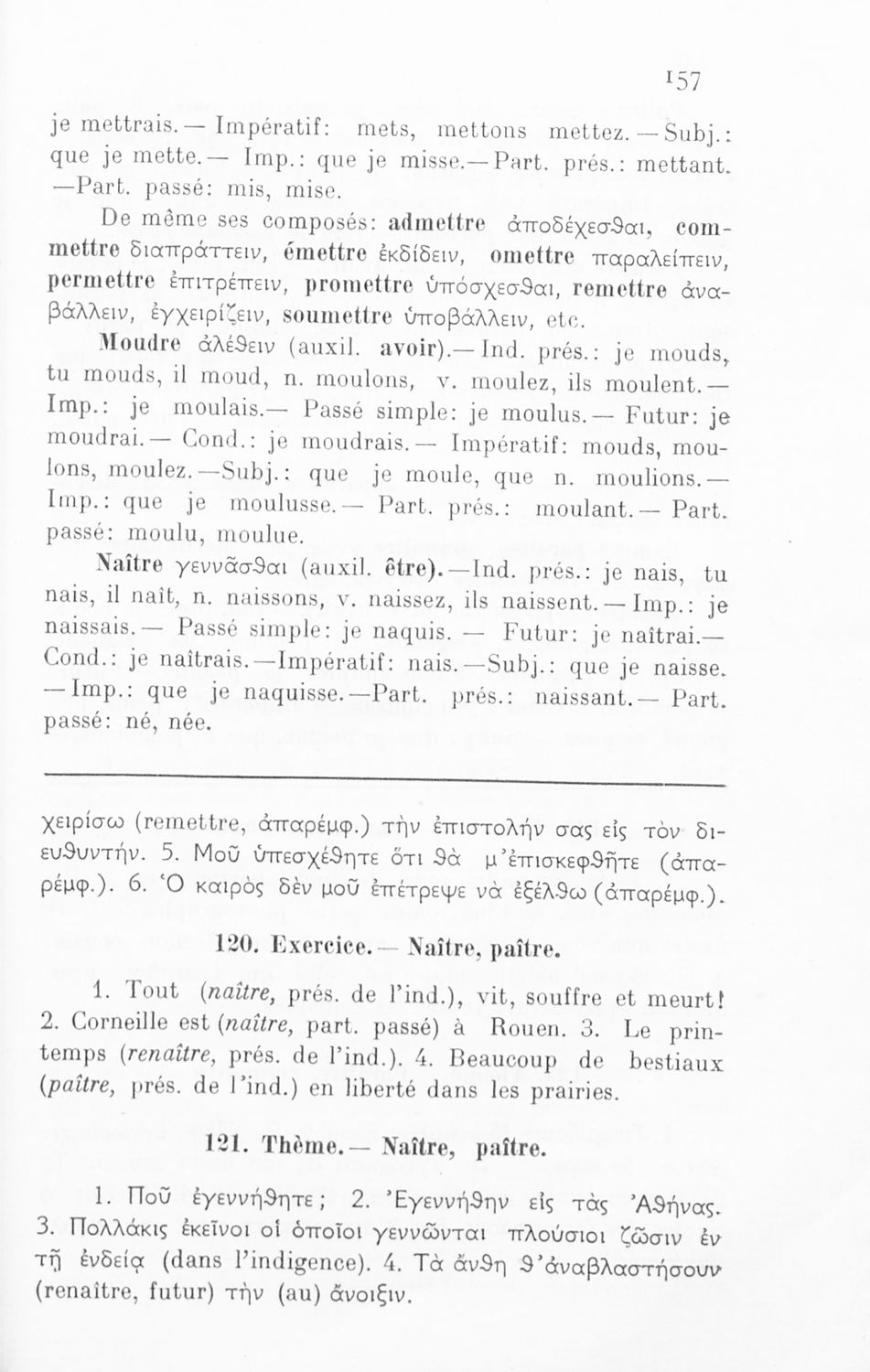 Σχολικό εγχειρίδιο Γαλλικών Γ΄ Γυμνασίου που περιλαμβάνει γραμματικούς και συντακτικούς κανόνες, κείμενα και τις μεταφράσεις τους στην καθαρεύουσα. Περιέχει και λεξιλόγιο.