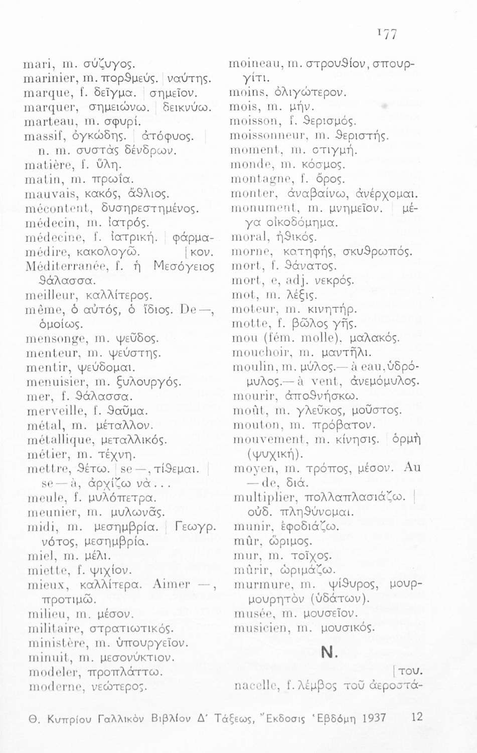 LDR 01579 2200217 4500 035 ## _a02-01284 040 ## _aΕλληνικό Λογοτεχνικό και Ιστορικό Αρχείο 041 ## _ael 100 ## _aΘεόδωρος Γ. Κύπριος 110 ## _a1937 ΚΥΠ ΓΑΛ 245 0# _aΓαλλικόν βιβλίον της Δ΄ τάξεως εγκεκριμένον υπό του Υπουργείου της Παιδείας διά την Δ΄ τάξιν των Γυμνασίων και τας αντιστοίχους τάξεις των λοιπών Σχολείων της Μέσης Εκπαιδεύσεως] 250 ## _a7η Έκδοση 260 ## _aΑθήνα _bΙωάννης Δ. Κολλάρος και ΣΙΑ, Βιβλιοπωλείο της "Εστίας" _c1937 300 ## _a206 _bΣκίτσα (ασπρόμαυρα) 520 ## _aΣχολικό εγχειρίδιο Γαλλικών Δ΄ Γυμνασίου που περιλαμβάνει κείμενα που αντλούν τα θέματά τους από την ύπαιθρο και την οικογενειακή και κοινωνική ζωή και γλωσσικές και ερμηνευτικές σημειώσεις. περιλαμβάνονται ασκήσεις με τις κλήσεις των ρημάτων και κατάλογος λεξιλογίου. 521 ## _aΔ' Γυμνασίου 522 ## _aΕλλάδα 546 ## _aΚαθαρεύουσα 563 ## _aΜαλακό Εξώφυλλο 583 ## _a41723/3-8-1933 650 #4 _aGrammaire _aLa ville _aLectures _aL΄ ete