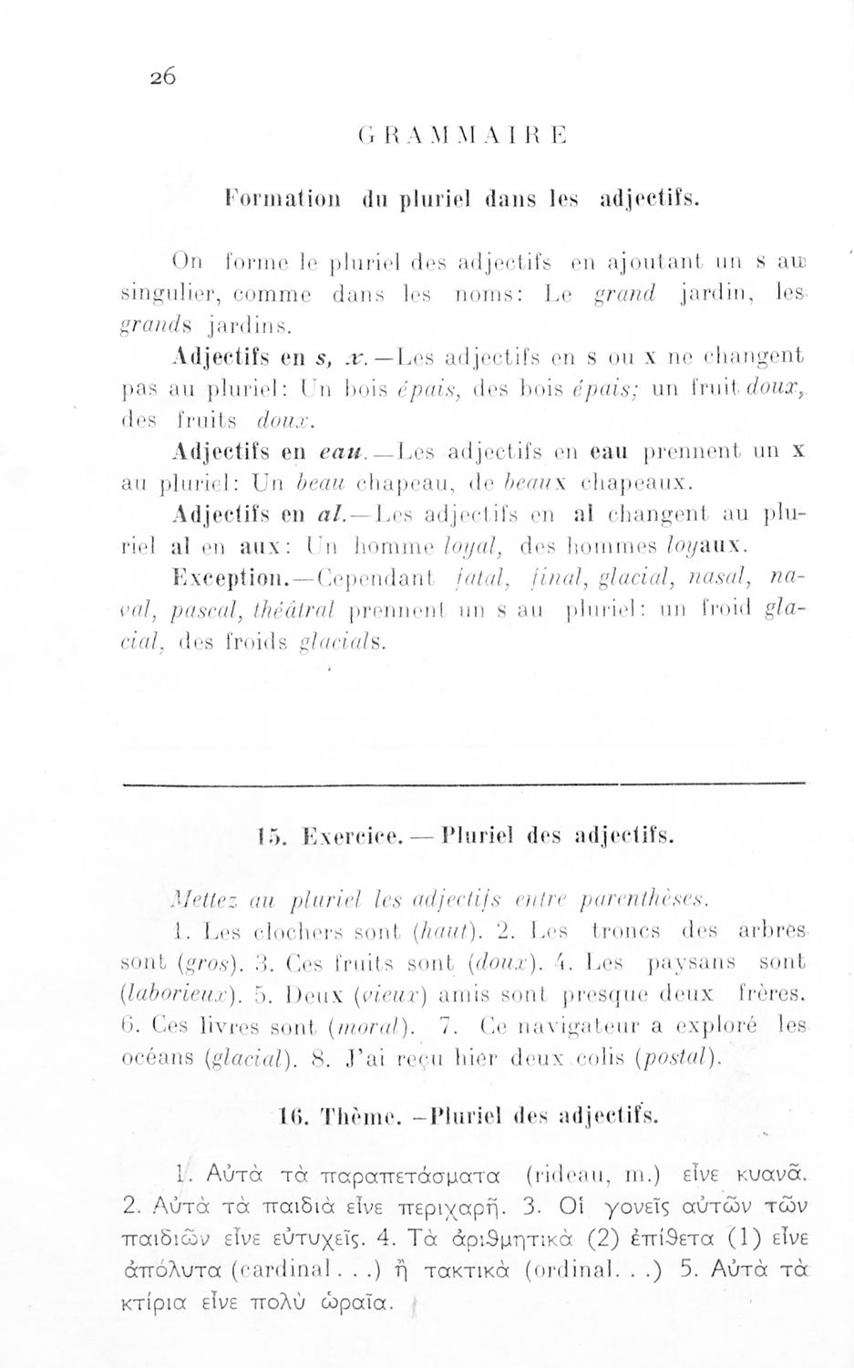 Σχολικό εγχειρίδιο Γαλλικών Γ΄ Γυμνασίου που περιλαμβάνει γραμματικούς και συντακτικούς κανόνες, κείμενα και τις μεταφράσεις τους στην καθαρεύουσα. Περιέχει και λεξιλόγιο.