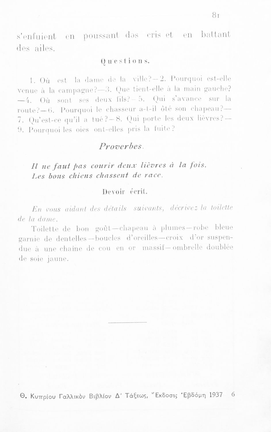 Γαλλικόν βιβλίον της Δ΄ τάξεως εγκεκριμένον υπό του Υπουργείου της Παιδείας διά την Δ΄ τάξιν των Γυμνασίων και τας αντιστοίχους τάξεις των λοιπών Σχολείων της Μέσης Εκπαιδεύσεως]